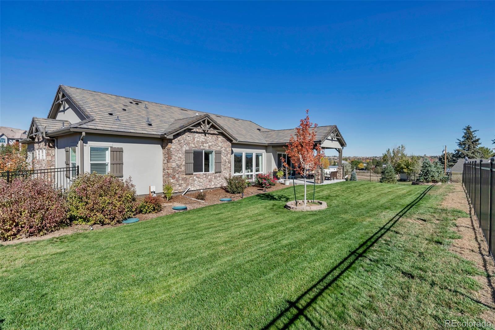 SUNDAY OPEN HOUSE CANCELLED Meticulously maintained ranch on a full 1-acre lot in the prestigious Estancia and located in Cherry Creek School District. This 4 bed / 3.5 bath home features vaulted ceilings, engineered hardwood floors, floor-to-ceiling windows, a gas fireplace, and an open, bright layout perfect for entertaining. The chef’s kitchen includes custom cabinetry, KitchenAid Professional appliances, Jenn Air 6-burner gas range, walk-in pantry, and newly added custom pull-out storage. Major upgrades (2024–2025): full exterior paint with 10 year warranty, black aluminum fence w/ 2 gates, extensive landscaping and trees, dual lighted driveway pedestals, REME HALO whole-house air purifier, crawl-space moisture barrier, added can lighting in primary suite, custom Jack-and-Jill sliding doors, Elfa closet systems, plus owned security cameras/sensors, and more. The main level includes a spacious primary suite with 5-piece bath + large walk-in closet (with Elfa Closet system), two additional bedrooms/office options, Jack-and-Jill bath, formal dining, great room, laundry, mudroom, and powder room. The 1,900+ sq ft finished basement offers a full wet bar, large family room, bedroom, full bath, bonus room, and storage. Beautiful outdoor living with a large patio and room to garden or play. Quiet, private location close to Southlands, DTC, dining, shopping, E-470, and DIA. One of only two homes in Estancia priced under $2M—don’t miss this exceptional property.