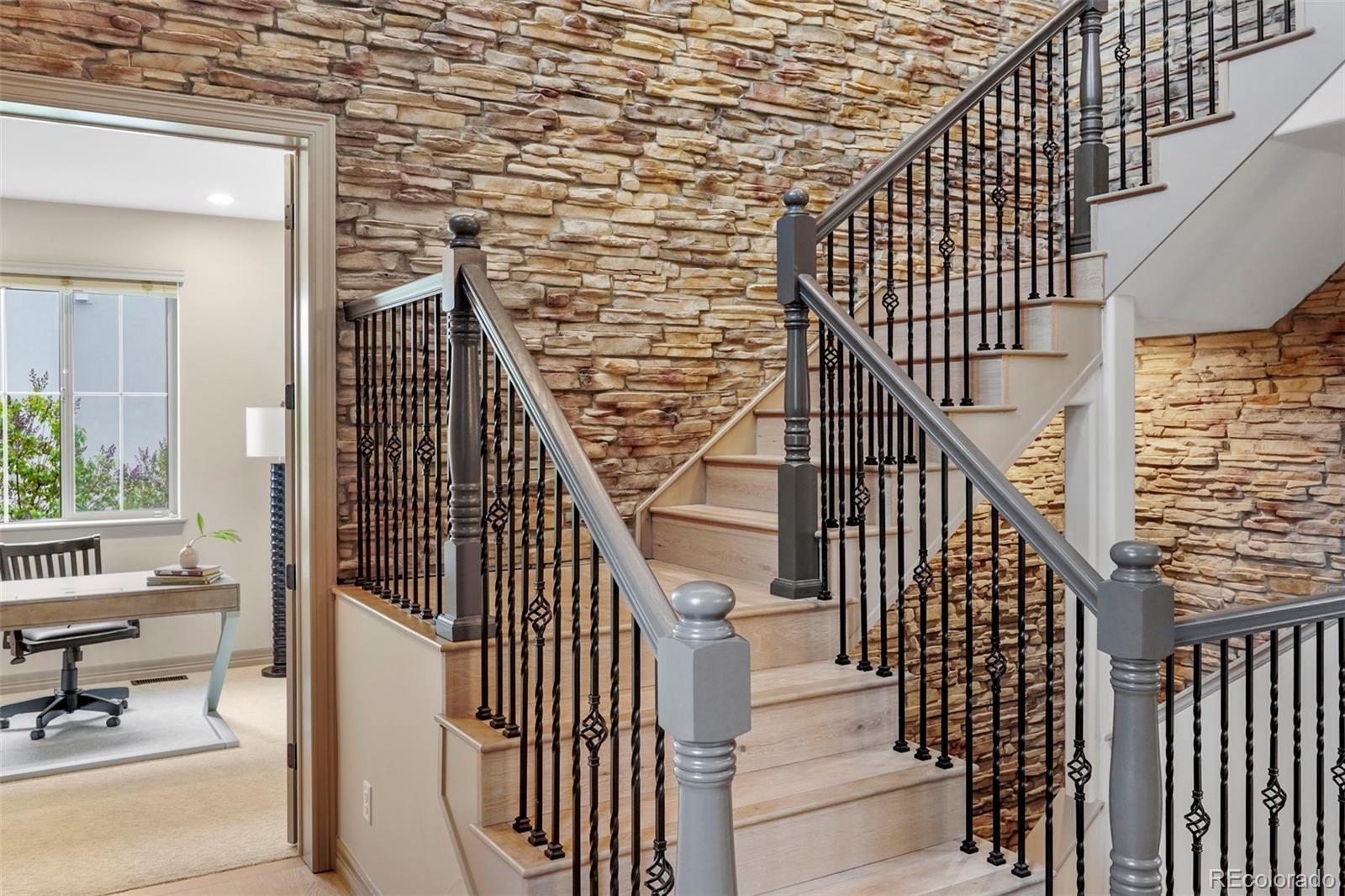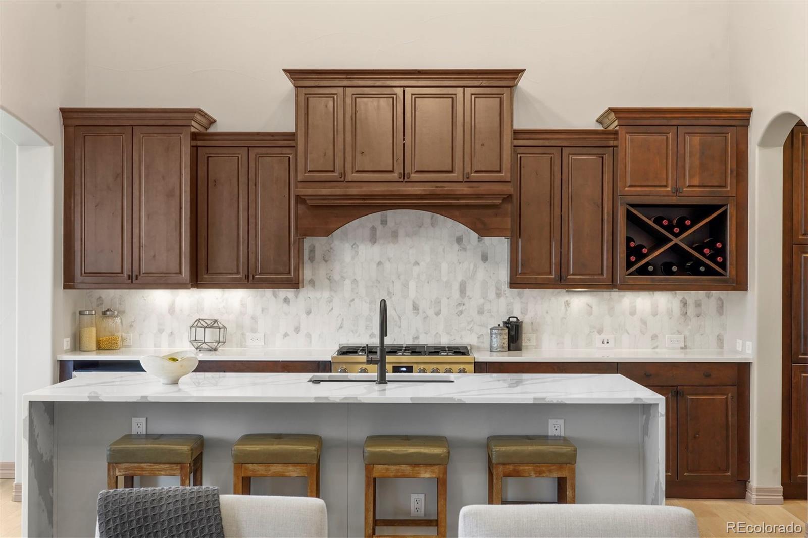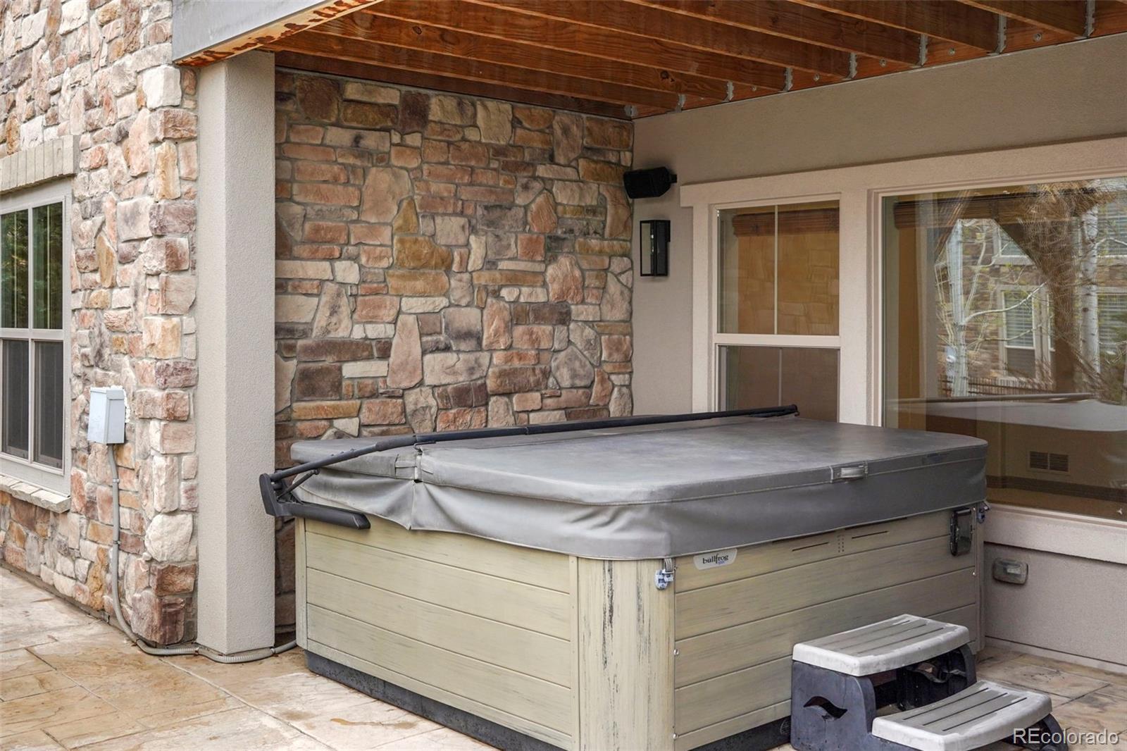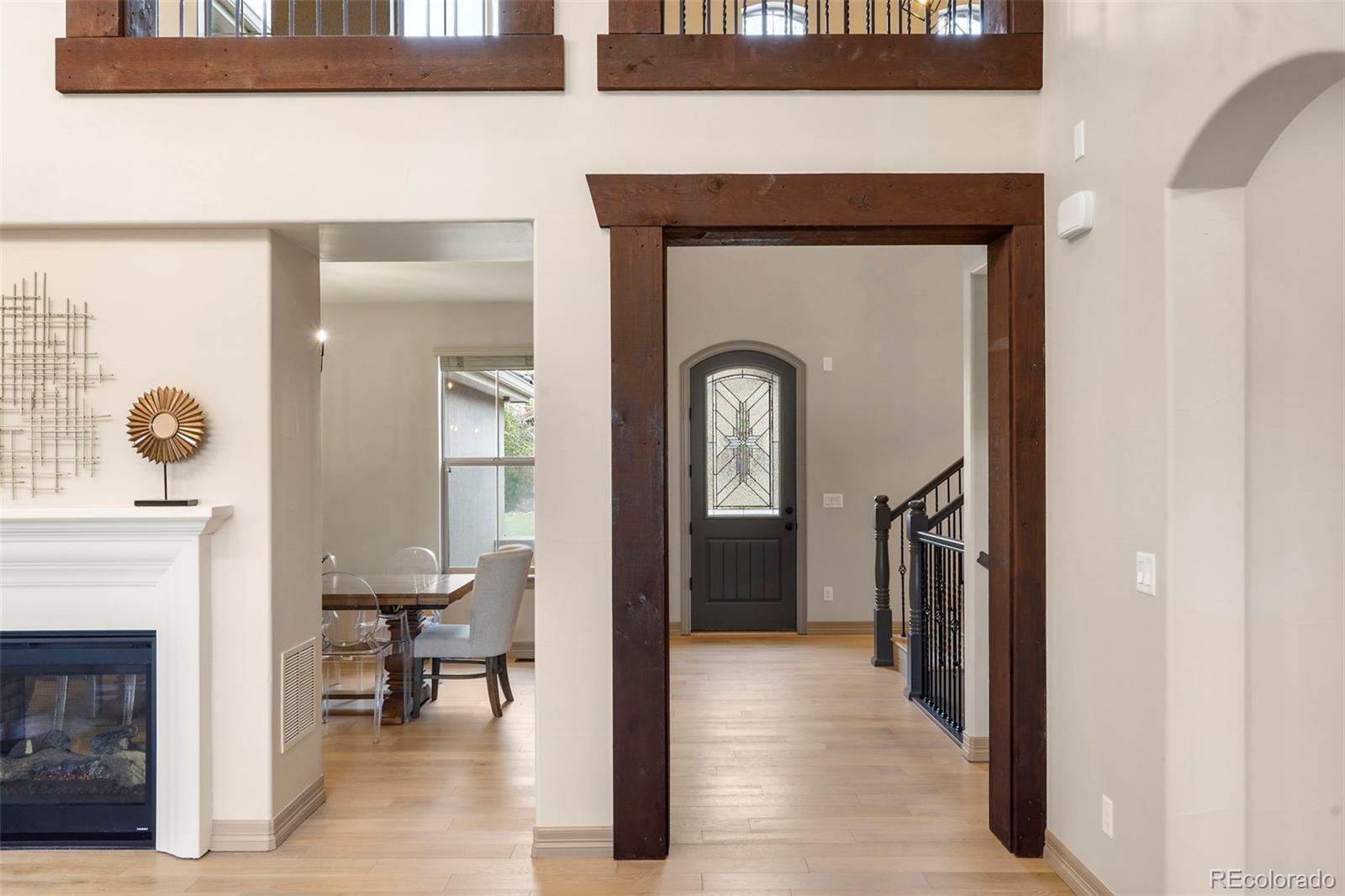 Experience the ultimate in Solterra living in this remodeled Infinity home. With a walkout basement, Grand Great Room, and high-end finishes, you'll feel like your living in a five-star resort. It is located on Solterra's best cul-de-sac - a quiet and private street with some of Solterra's finest homes framed by larger-than-life Red Rocks views. Enter the home through a courtyard and notice the attention to detail – new wide plank hardwood floors and a dramatic staircase surrounded by ledger stone. The home is built around a great room with soaring 19-foot ceilings adorned by hand-hewn timber beams and windows that kiss the room with natural light. This home is the perfect blend of rustic and modern. With custom woodwork, timeless updates, and plenty of natural light, you'll love entertaining guests in this space. The kitchen shows new Bosch appliances, a light grey kitchen island with waterfall Bianco Calacatta quartz, and a designer tile backsplash. Custom details include wine storage and a wine fridge. Updates include new hardwood floors, carpeting, quartz counters, new sinks and plumbing fixtures, and all new lights, including flush mount LED cans, exterior paint, interior paint, new hardware, and more. Finished walkout basement features a fitness room, wet bar, and fireplace. The backyard is an entertainer's delight with a built-in grill/bar, fireplace, tiki gas lamps, pergola, large patio, and hot tub. Nestled in a postcard-perfect world between urban Denver and the surrounding Green Mountains, Solterra offers residents a four-season wonderland for active living. This award-winning community is draped in breathtaking views and an inspired architectural vision that takes cues from the Tuscan countryside. From its spectacular natural surroundings to its centerpiece clubhouse, Solterra has left no detail overlooked.