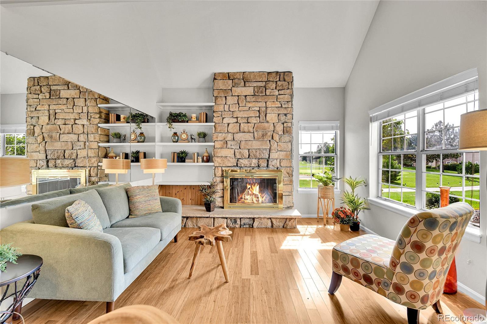 Location, location, location! Incredible Heather Ridge Golf Course lot with peak to peak mountain views! Absolutely charming, two story, low maintenance townhome with a main floor primary bedroom and full bathroom! Open, bright & spacious! Want to sip your morning coffee, as you take in the GORGEOUS Rocky Mountains, from the comfort of your kitchen table or from the outdoor patio?! Yes please!! Enjoy alfresco dining as you behold the magnificent sunsets in your private backyard! Spacious kitchen overlooks the great room and inviting stone fireplace! The great room features a vaulted ceiling, large windows, for lots of natural light, built-ins and an open concept to the kitchen. Upstairs, you will find an oversized bedroom that is full of light and two built-in dressers! Complete with an en suite bath, this truly is a second primary bedroom! Terrific cedar lined closet! Large oversized loft can easily be walled off for less than $3000 for a third bedroom in this awesome townhome!!! Detached garage and dedicated parking spot! Central to everything - I-225 corridor! Three minutes to awesome shopping and dining options! Cherry Creek school district! 20 minutes to DIA! 22 minutes to downtown Denver! Hurry, hurry, hurry! This is the place to call home! Lovingly maintained for over 30 years by current owners!