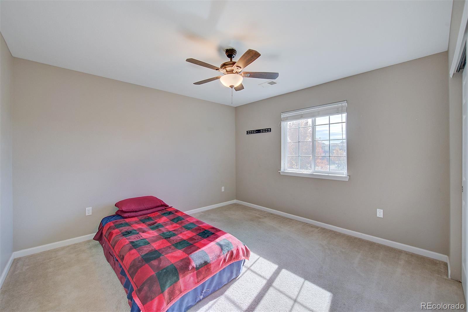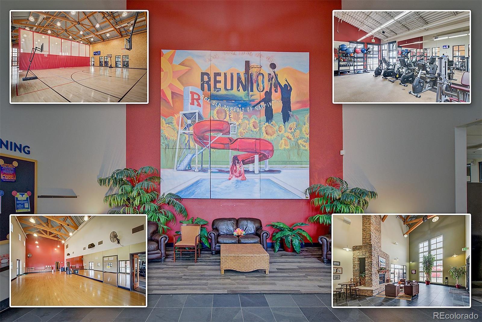 Welcome to your dream home in Reunion! This home offers enough space for everyone, featuring 5 bedrooms spread between 3 levels, 4 bathrooms, a main level living & family room, large loft on the 2nd story & additional family room in the finished basement. Everyone will be comfortable with the dual HVAC system, featuring two furnaces & central AC units. And don’t worry about running the HVAC, with the large solar system your electric bill will be minimal & if you payoff the assumable loan on the solar panels, your electric cost can be nearly nothing! You will love cooking in the gourmet kitchen featuring granite countertops, double in-cabinet ovens, gas cooktop & huge island opening to the dining & family rooms. The family room features a gas fireplace & access to the additional den/office space. Just off the dining room head out back to the low maintenance backyard, perfect for enjoying all of Colorado’s sunshine. The backyard features multiple covered sitting areas with stunning pergolas, artificial grass that will always be green & never require mowing or watering, & an in-ground trampoline! Back inside, the 2nd level has 3 spacious bedrooms, a full bathroom, laundry room, huge loft & the primary suite! The primary suite is spacious & features double walk-in closets, recessed ceiling & a 4-piece ensuite with double vanity, water closet & beautiful walk-in shower. The home is rounded off with a finished basement featuring a 2nd large family room, 3/4-bathroom, legal bedroom with egressed window & large mechanical/storage room. As if the house wasn’t offering enough, there’s more with the great master planned community, featuring a fitness center, clubhouse, community pool & multiple parks. This home is a short walk from Reunion Elementary & provides easy access to Tower Road, e-470, I76, HWY-85 & all the local restaurants, shopping & entertainment, making this home a prime location. Don’t wait, schedule your private showing today & turn this house, into your home!