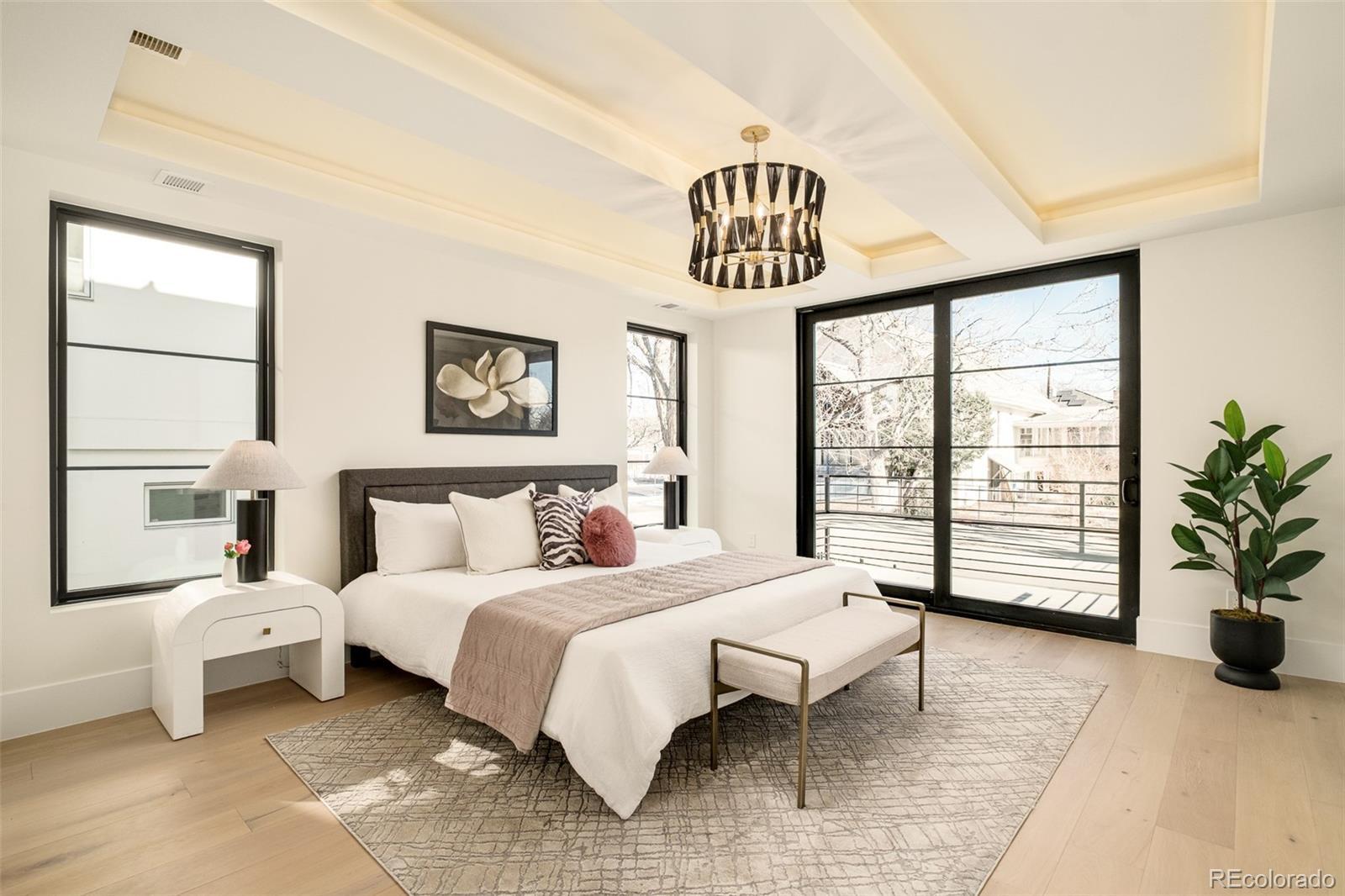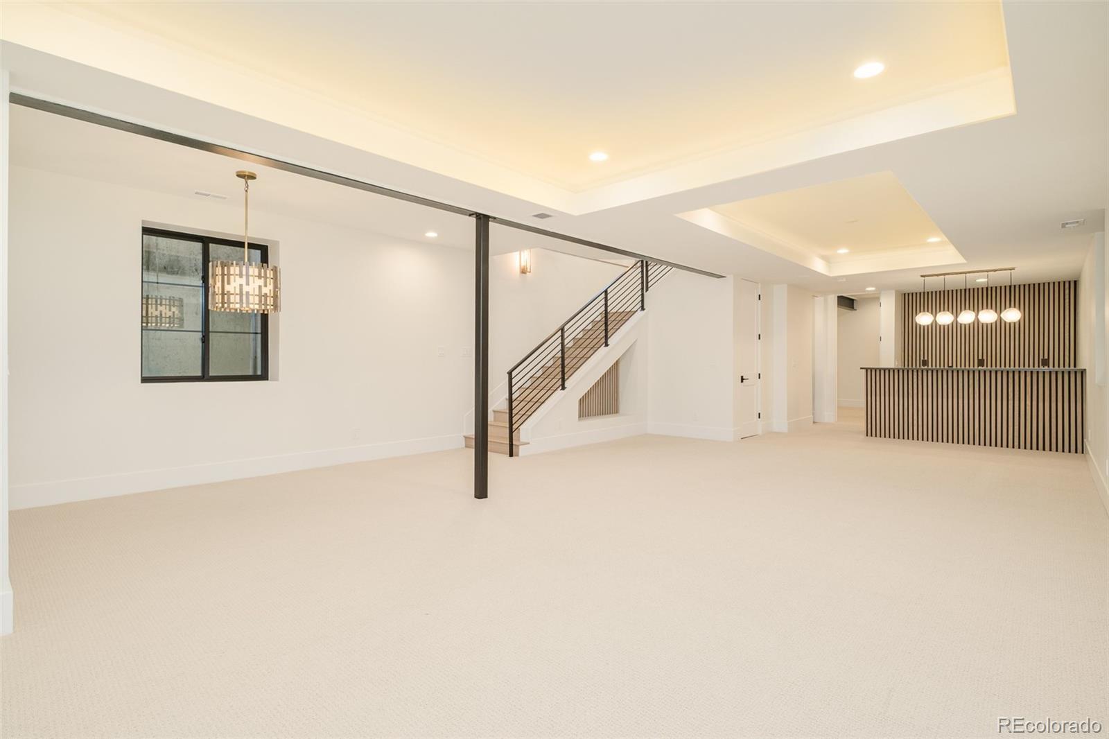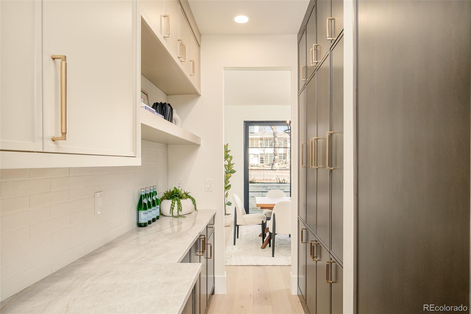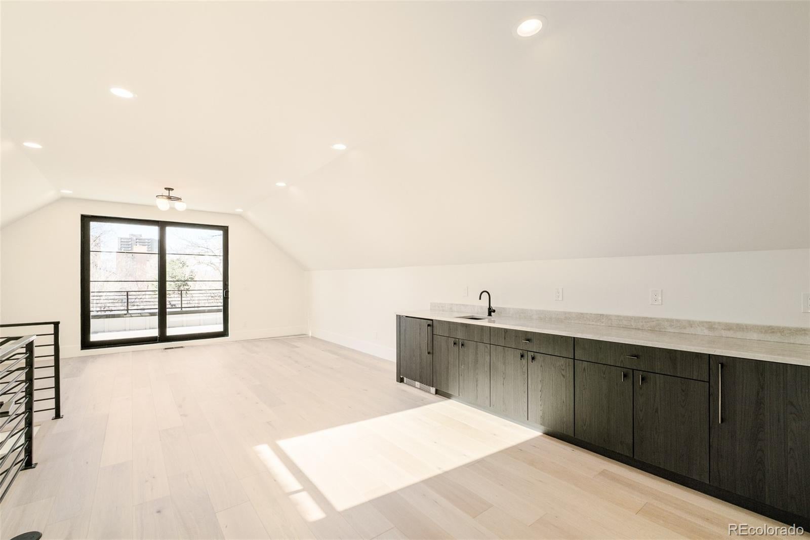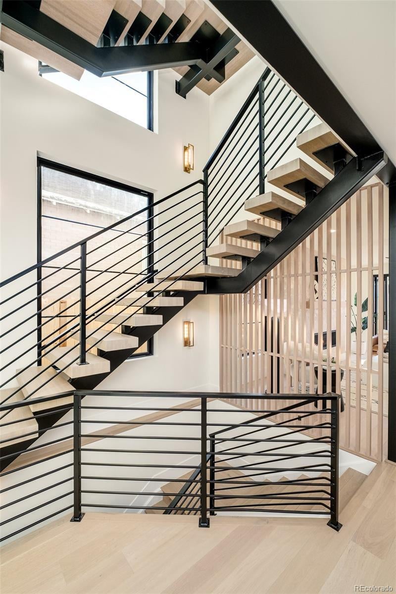 Striking modern architecture and timeless materiality converge in this newly constructed East Wash Park residence, thoughtfully designed across multiple light-filled levels. Intentional craftsmanship is evident at every turn, from the sculptural steel staircase to expansive walls of glass that flood the interiors with natural light, illuminating wide-plank hardwood floors and refined Venetian plaster accents. The main level is curated for effortless indoor–outdoor living, anchored by a linear gas fireplace and dramatic floor-to-ceiling glass that opens seamlessly to the private yard, blurring the line between interior and exterior. A chef’s kitchen serves as the heart of the home, featuring a waterfall Taj Mahal quartzite island, integrated Thermador refrigerator and freezer towers, statement gas range, custom cabinetry, and a fully appointed butler’s pantry with wine refrigeration, equal parts functional and design-forward. Upstairs, all bedrooms are ensuite, including a serene primary retreat with a private balcony, spa-inspired five-piece bath, and generous walk-in closet. The third level offers a skylit recreation lounge with wet bar and beverage center, an additional office or bedroom suite, and a rooftop deck ideal for entertaining, sunset gatherings, and mountain-view moments. The finished lower level expands the living experience with a full wet bar complete with open shelving, ice maker and beverage refrigeration, a media lounge, and a private guest suite. Throughout the home, curated lighting, custom millwork, and thoughtful storage solutions underscore a cohesive, elevated design sensibility. Located just one block from Wash Park, this residence delivers true lifestyle-driven living with immediate access to trails, green space, cafés, and neighborhood favorites, where architectural sophistication meets everyday ease