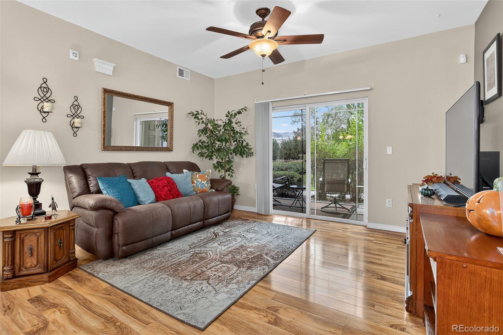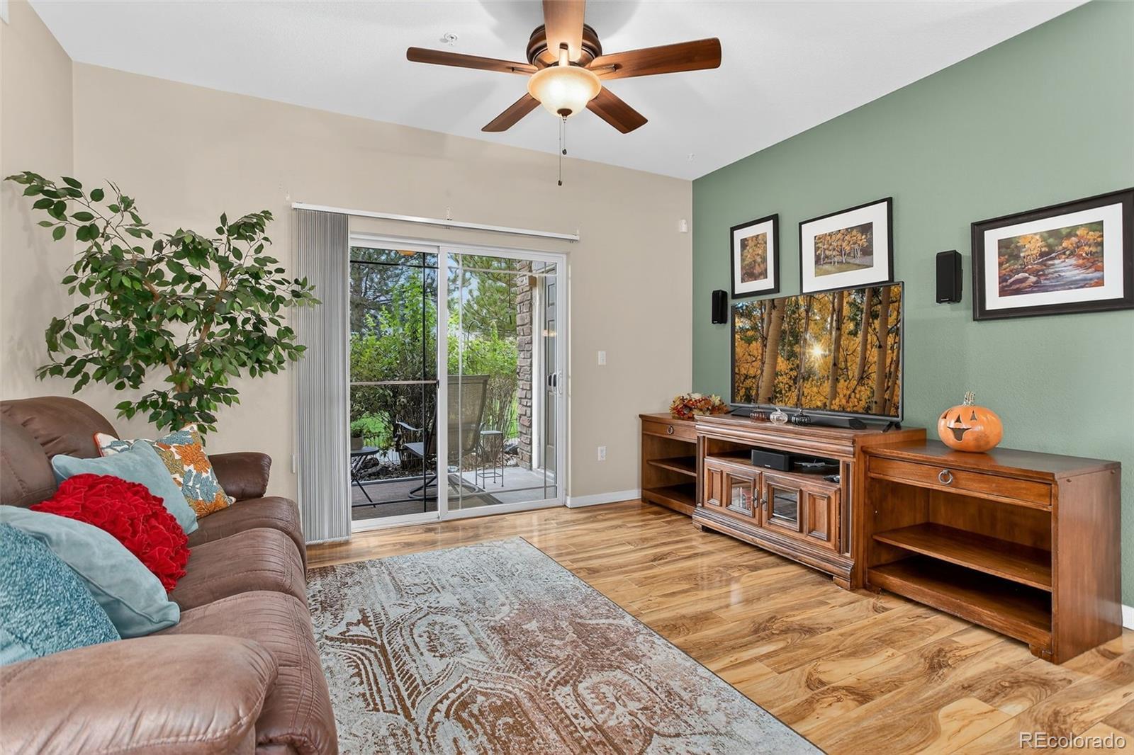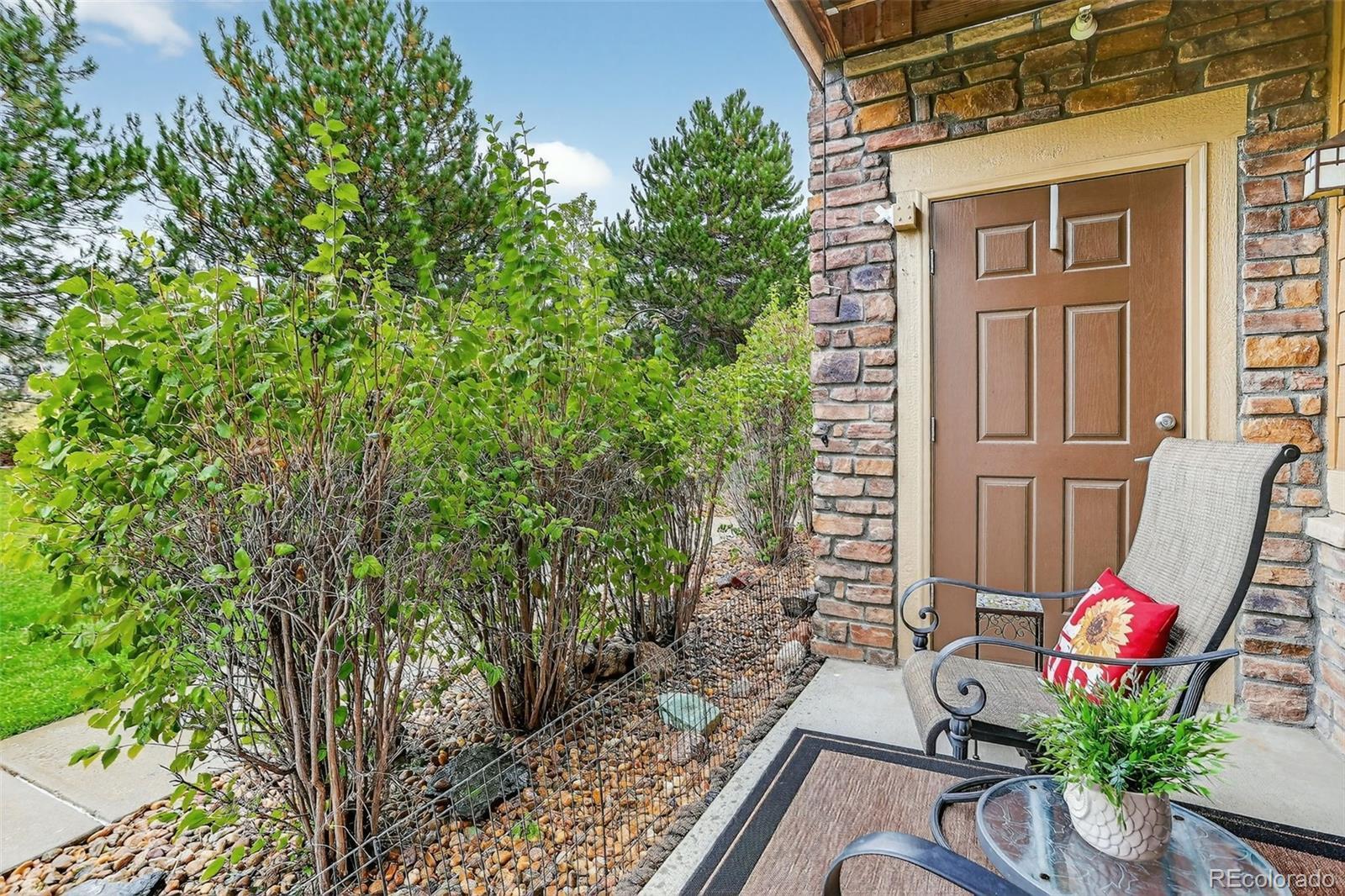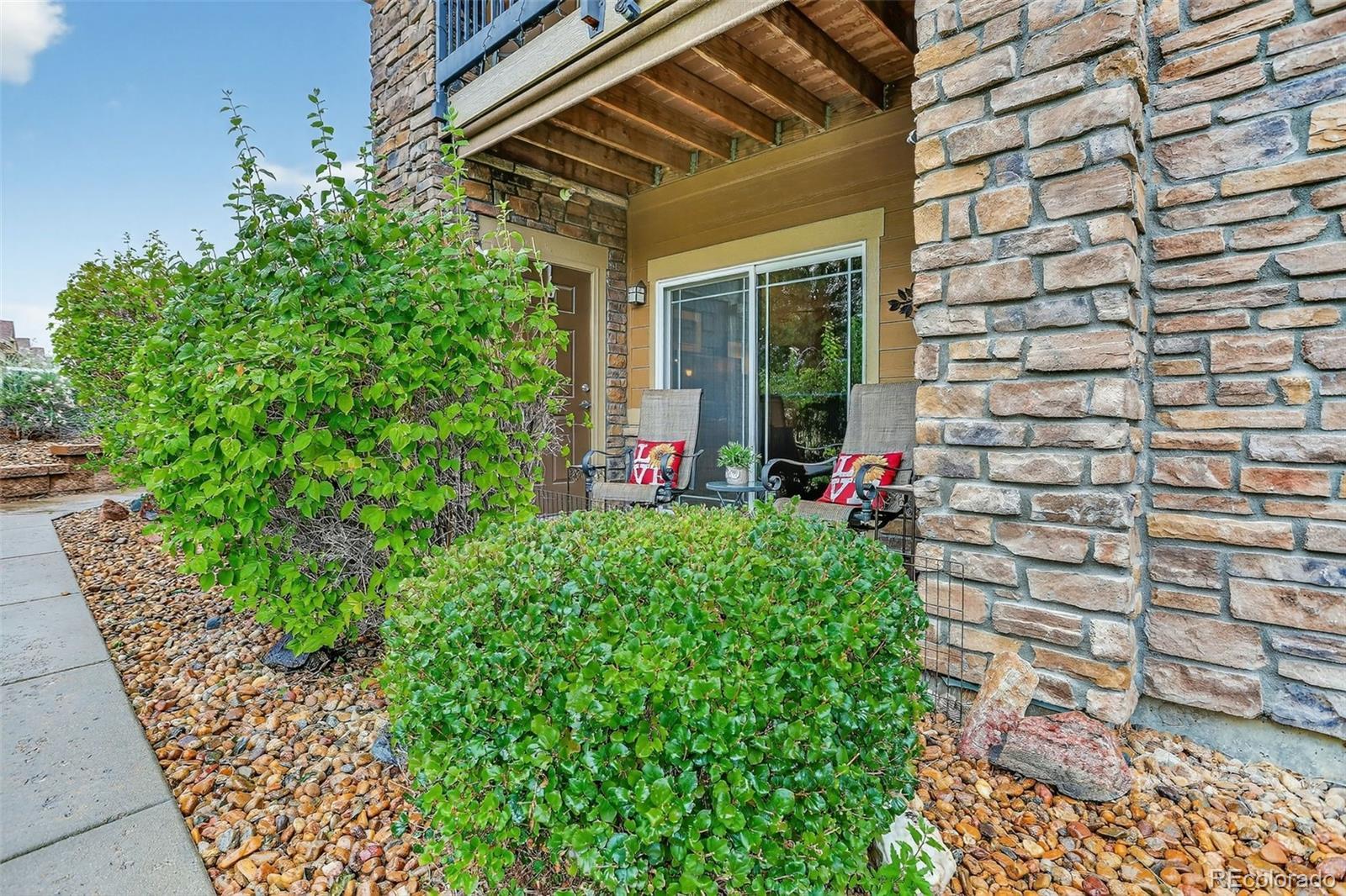 Welcome to this beautifully maintained 3-bedroom, 2-bathroom condo in the highly sought-after Chatfield Bluffs Condominiums. This rare ground-floor corner unit offers the ideal combination of comfort, privacy, and convenience — all with no stairs to navigate. Inside, you will find a spacious, open-concept layout designed for effortless everyday living and entertaining. The dedicated dining area flows seamlessly into the main living space, while beautiful flooring throughout adds warmth and style. The primary suite includes a private en suite bathroom, and a second full bath serves the additional bedrooms and guests. Step outside to your covered patio, where you can relax and take in peaceful courtyard views, complete with a sunshade for year-round enjoyment, as well as a secure storage space. Additional highlights include in-unit laundry and a detached garage, offering both convenience and peace of mind. Located just minutes from parks, trails, shopping, dining, and C-470, this home puts you close to everything Littleton has to offer — all within a quiet, well-maintained community. Do not miss this fantastic opportunity to own a move-in-ready home in one of the area's most desirable neighborhoods.