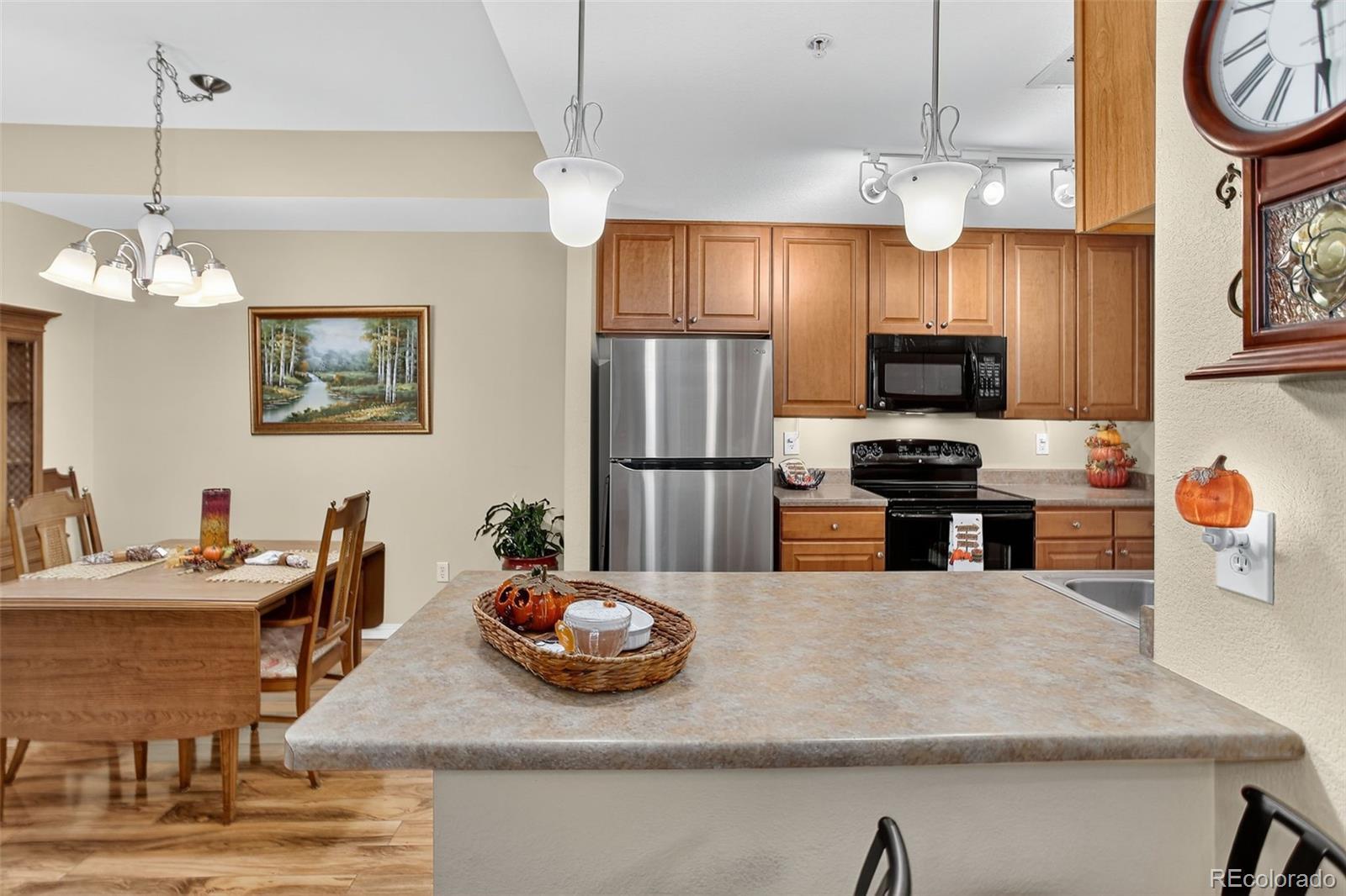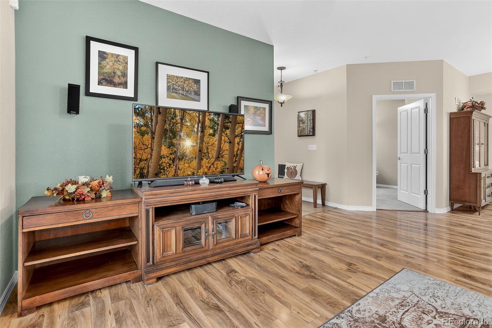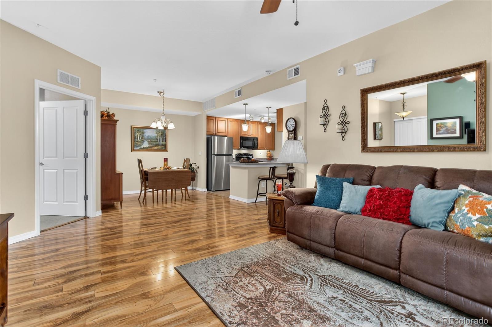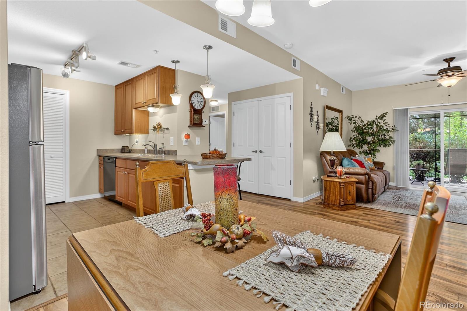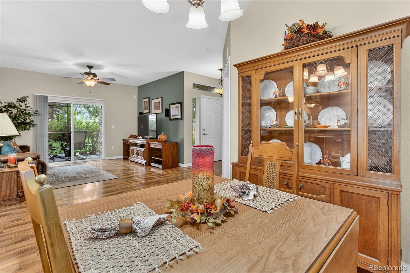 Welcome to this beautifully maintained 3-bedroom, 2-bathroom condo in the highly sought-after Chatfield Bluffs Condominiums. This rare ground-floor corner unit offers the ideal combination of comfort, privacy, and convenience — all with no stairs to navigate. Inside, you will find a spacious, open-concept layout designed for effortless everyday living and entertaining. The dedicated dining area flows seamlessly into the main living space, while beautiful flooring throughout adds warmth and style. The primary suite includes a private en suite bathroom, and a second full bath serves the additional bedrooms and guests. Step outside to your covered patio, where you can relax and take in peaceful courtyard views, complete with a sunshade for year-round enjoyment, as well as a secure storage space. Additional highlights include in-unit laundry and a detached garage, offering both convenience and peace of mind. Located just minutes from parks, trails, shopping, dining, and C-470, this home puts you close to everything Littleton has to offer — all within a quiet, well-maintained community. Do not miss this fantastic opportunity to own a move-in-ready home in one of the area's most desirable neighborhoods.