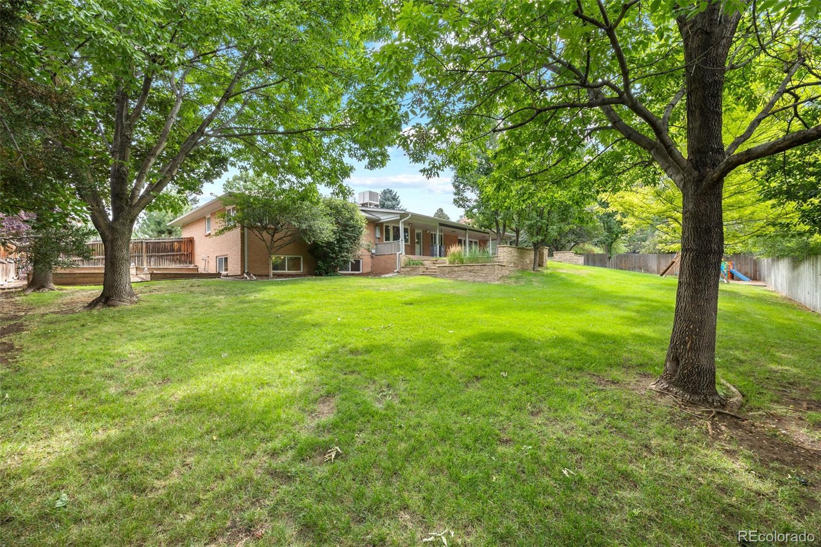 Don't miss this rare opportunity to own a prime property on a generous, FLAT 14,200 sq ft lot!!! The best-priced home in both Cherry Hills & Greenwood Village! Nestled in a desirable interior quiet location on the WEST side of Happy Canyon DRIVE, not to be confused by Happy Canyon STREET, this east-facing home enjoys abundant natural light throughout the day. Step inside to a thoughtfully designed floorplan starting with a welcoming entryway that opens into a spacious living room. Flow seamlessly into a well sized dining area-perfect for hosting friends & family. The cozy family room features floor-to-ceiling windows that frame views of the expansive, west-facing backyard with a Custom stone wall, raised veggie garden beds with sprinkler system & a large covered patio, ideal for outdoor entertaining & relaxing evenings. The kitchen is bright & functional, complete with a breakfast nook perfect for casual dining. Conveniently located just off the kitchen is a main-level laundry room, eliminating the need for hauling clothes up & down stairs. The main level also features 3 bedrooms & 2 bathrooms, including a spacious primary suite with its own ¾ en-suite bath & dual vanities. The second full bathroom has been tastefully updated with classic subway tile—great for guests/kids. Head downstairs to the garden-level basement with great natural light thanks to its above-ground western exposure. You'll find a conforming 4 bedroom, a third ¾ bath, a comfortable TV/rec. room, & flexible space for relaxing / working out, home office or studio. Located in the top-rated Cherry Creek School District, including Cherry Hills Village Elementary, West Middle School, & Cherry Creek High School. This is a fantastic opportunity to get into Cherry Hills Village at an unbeatable price. Don't wait—schedule your showing today before it's gone! !!-Please reach out to the seller's agent for more architectural plans to redo the home; one is currently in the pictures, but there are more-!!!