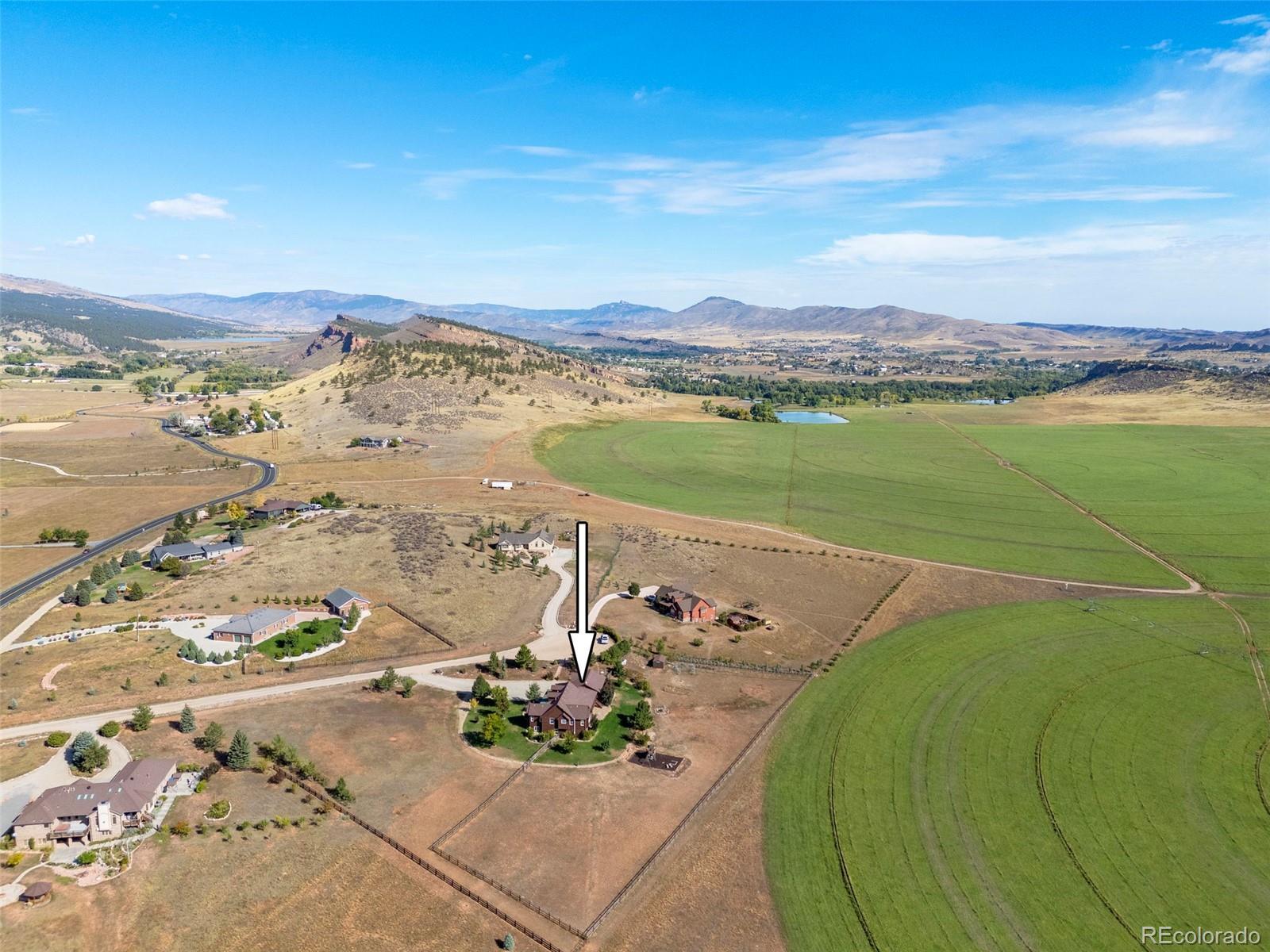 Discover a rare opportunity to own this beautifully maintained 3,643 sq ft ranch-style home in one of Loveland's most desirable west-side locations. Nestled on 3 acres and backing to hundreds of acres of protected conservation land, the property offers both privacy and spectacular views. From the wraparound front deck, enjoy breathtaking foothills vistas, while the rear covered deck and patio frame expansive farmland and open space. Wildlife is frequently seen in the area, with elk and other native species often passing through. Designed for comfortable main-level living, the home features 3 bedrooms and 3 bathrooms on the main level, vaulted ceilings, abundant natural light, and seamless indoor-outdoor flow. The walk-out lower level adds exceptional versatility with a spacious family room, large bedroom, an additional new bathroom, and a convenient mini-kitchen-ideal for guests or multi-generational living. In addition, the home includes an oversized 910 sq ft three-car garage, providing ample room for vehicles, storage, or a workshop. East- and west-facing decks capture both sunrises and sunsets, making every day a chance to enjoy Colorado's natural beauty. The location blends the tranquility of a country lane with unbeatable convenience-just 20 minutes from Downtown Loveland, 40 minutes from Estes Park, 50 minutes to the entrance of Rocky Mountain National Park, and one hour from Denver International Airport. Outdoor enthusiasts will also appreciate the proximity to Carter Lake, Flatiron Reservoir, Pinewood Reservoir, and the future Chimney Hollow Reservoir opening in 2027. This is a home and setting that must be experienced in person to truly appreciate. Properties on Heart J Trail seldom come to market-don't miss your chance to make this serene retreat your own.