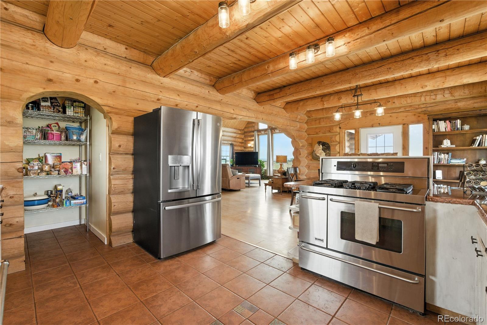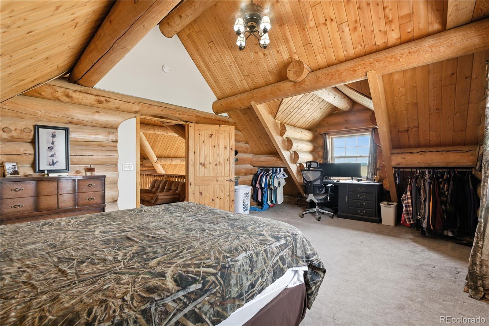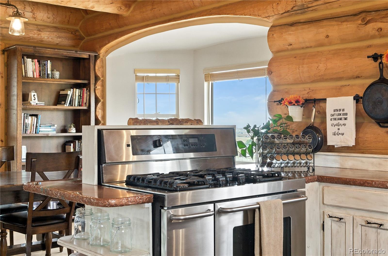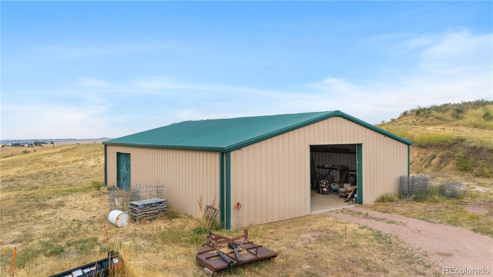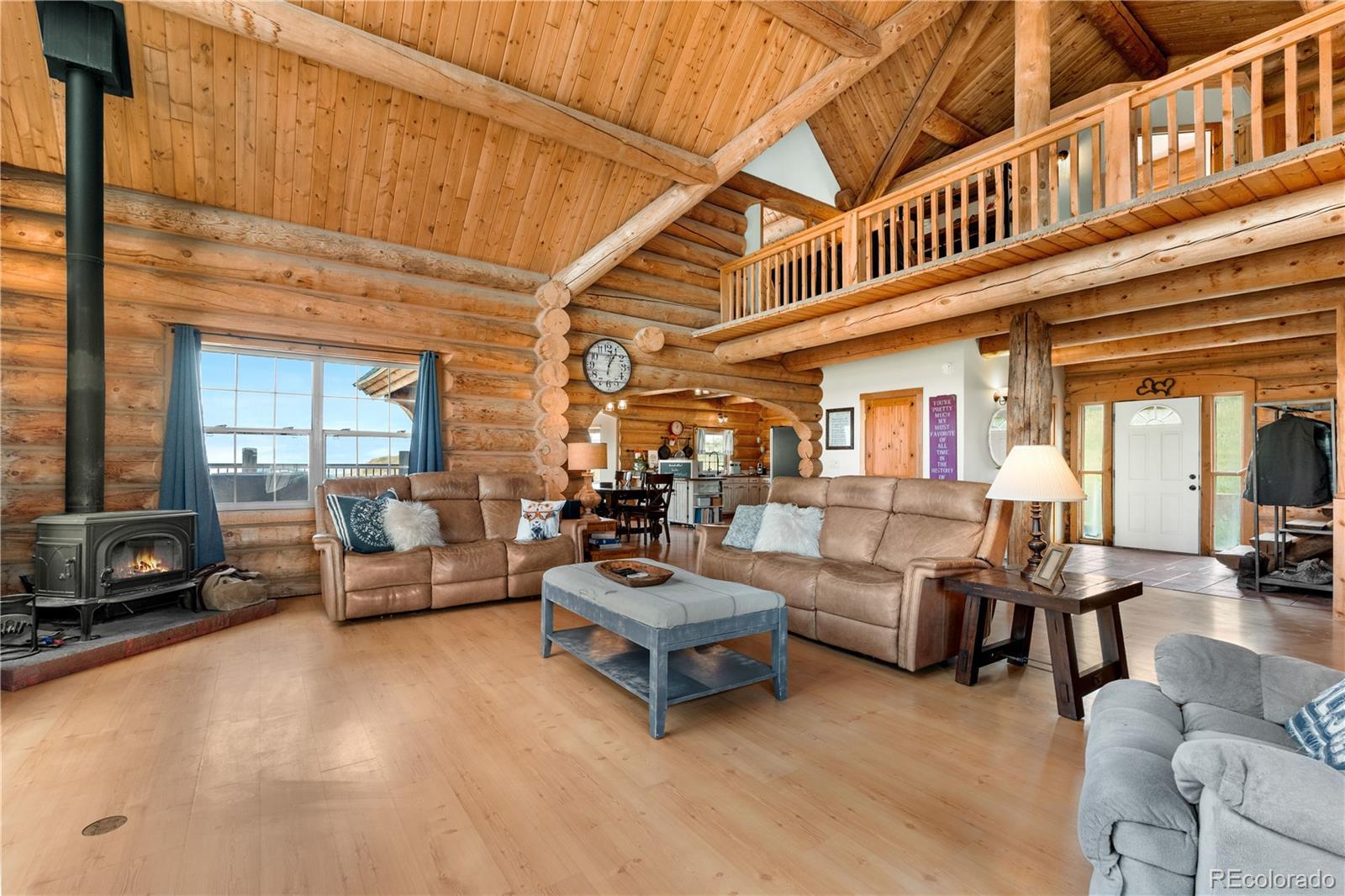 Escape to the wide open spaces of Elbert County with this one-of-a-kind log home retreat on over 35 fully fenced acres in Foxtail Farms. Tucked at the end of a quiet cul-de-sac, this three-bedroom, three-bathroom mountain contemporary offers scenic privacy, panoramic views, and the ultimate in rural living. The soaring great room showcases tongue-and-groove ceilings, hand-hewn logs, and a wall of windows that bathe the home in natural light. The open-concept main level features a spacious primary suite, wood-burning stove, and wraparound deck that invites morning coffee or sunset gatherings. Upstairs, you’ll find two additional bedrooms, a full bath, and a cozy loft overlooking the great room. The unfinished walkout basement provides ample room to expand or customize. This property is ready for your homesteading or ranching dreams, complete with deeded water rights, a private well, and four versatile outbuildings—including two loafing sheds, a stable, and large 2000 square-foot steel barn. Zoned residential with no HOA, the property is ideal for livestock, horses, goats, and more. Whether you’re seeking a peaceful getaway, a hobby farm, or a forever home, this rare opportunity delivers the best of Colorado country living—without compromising comfort or charm.