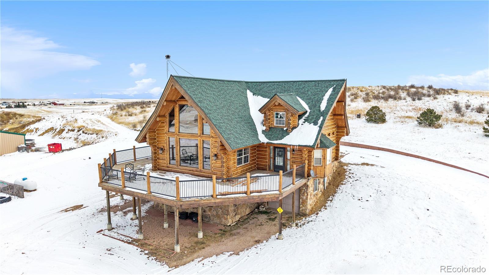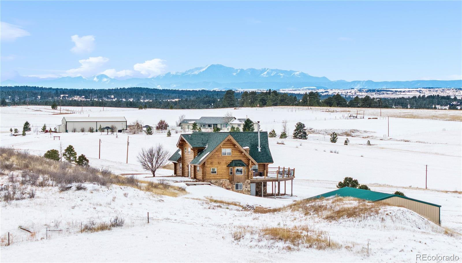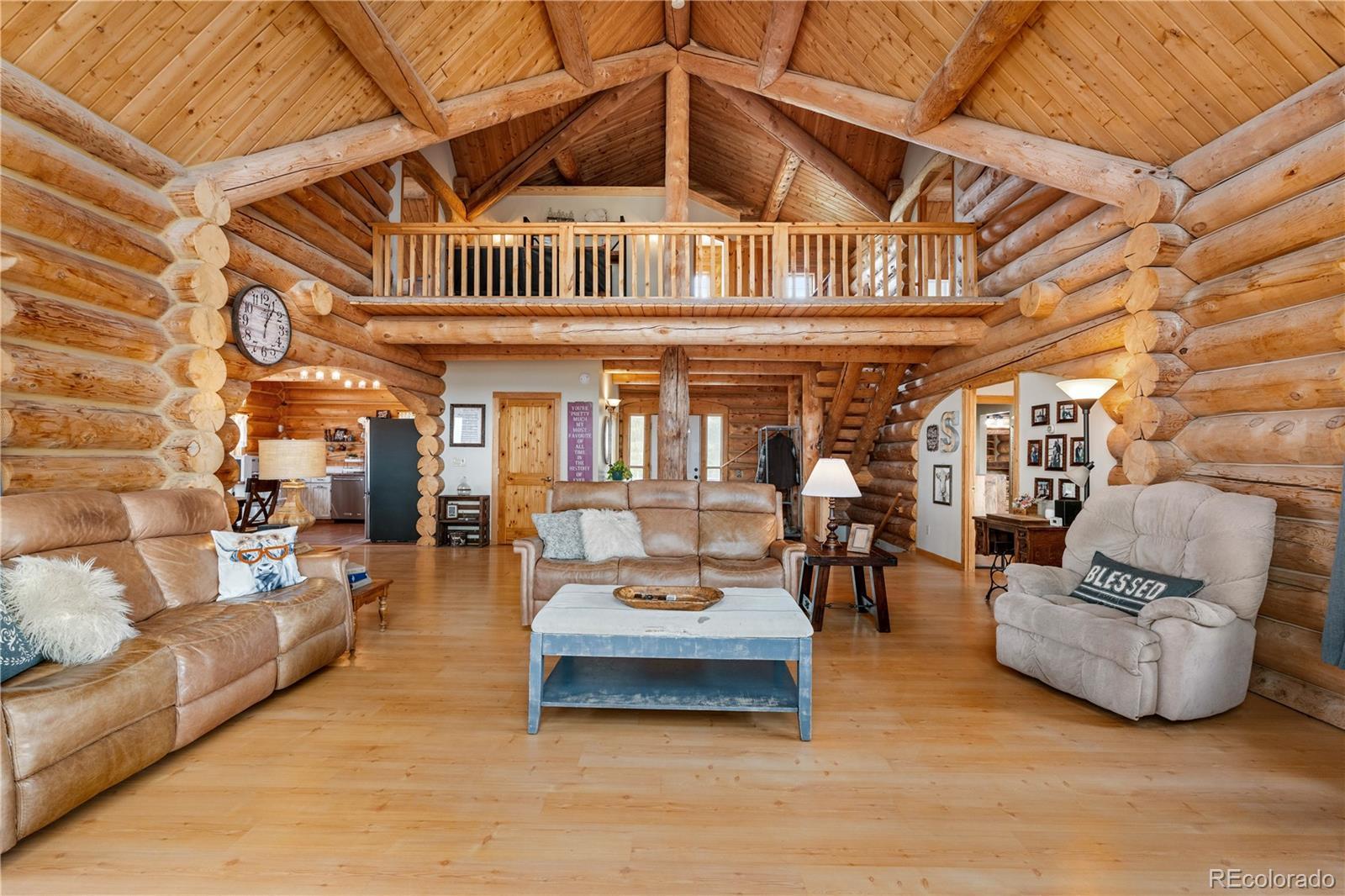 A rare opportunity to own a true Colorado retreat on over 35 fully fenced acres in Foxtail Farms. Located at the end of a quiet cul-de-sac, this mountain-contemporary log home offers scenic privacy, expansive mountain views, and exceptional flexibility for ranching, homesteading, or a peaceful full-time residence. The soaring great room features tongue-and-groove ceilings, hand-hewn logs, a wall of windows, and a wood-burning stove that anchors the space with warmth and character. The open main level includes a spacious primary suite and wraparound deck ideal for sunrise mornings and sunset gatherings. Upstairs offers two additional bedrooms, a full bath, and a cozy loft overlooking the great room. The unfinished walk-out basement provides room to expand or customize to your vision. The land is well-equipped with 7 acre feet of water, a private well that pumps 25 gal a minute, and four outbuildings including loafing sheds, a stable, and a large steel barn—perfect for horses, livestock, or equipment. No HOA and agricultural zoning allow true freedom. This is Colorado country living at its finest, with space, serenity, and endless potential.