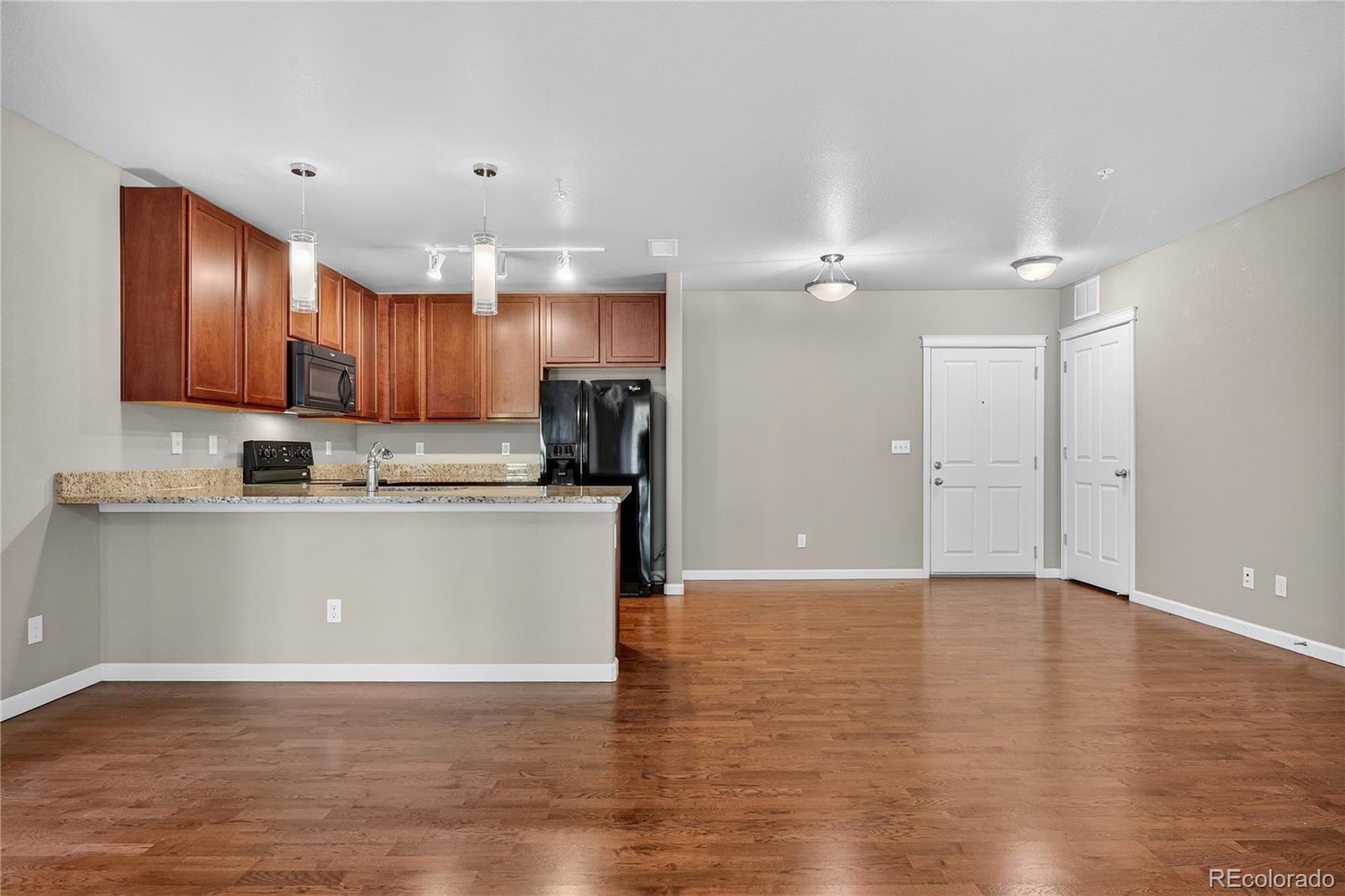Experience effortless, low-maintenance living in this bright and open Highlands Ranch condo, perfectly designed for comfort and convenience. Sunlight fills the open-concept layout, highlighting a spacious kitchen and breakfast nook with sleek granite countertops that make casual meals and entertaining a pleasure. The spacious living room is anchored by a cozy gas fireplace and opens to a large balcony, offering a relaxing space to enjoy fresh air or host friends. The primary suite provides a private retreat with a walk-in closet and ensuite bath, while a versatile second bedroom can serve as a guest room, home office, or hobby space. A full-size laundry room located just off the entry enhances daily convenience. Residents benefit from four recreation centers featuring pools, gyms, courts, and a variety of activities, as well as underground parking, secure storage, and comprehensive maintenance including snow removal, water, and trash service. The community is surrounded by miles of trails, scenic parks, and open spaces, offering endless opportunities for walking, biking, or enjoying the outdoors. With quick access to C-470, medical centers, ski resorts, shopping, and dining, this condo blends modern comfort with an active, vibrant lifestyle. From everyday ease to abundant recreational options, it’s a place designed to make every day enjoyable.