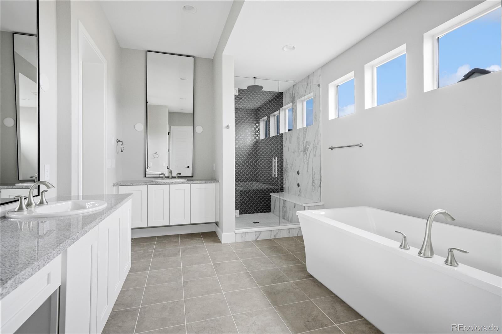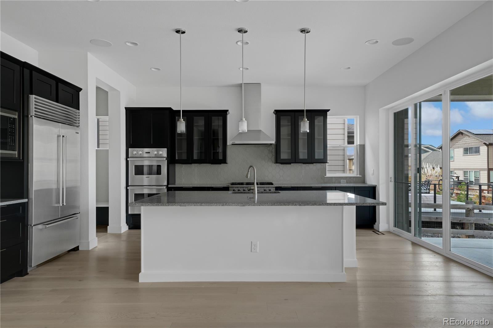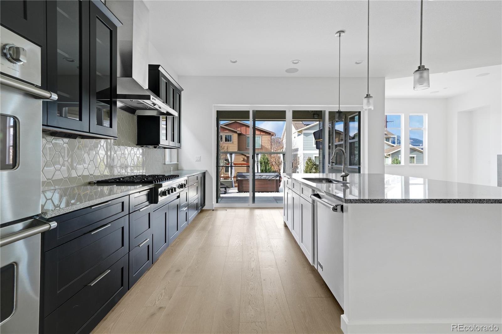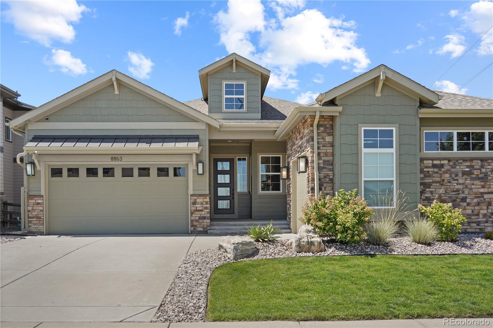 Discover an epic luxury residence in Leyden Rock! An exceptional 4-bed, 4-bath masterpiece built by Epic Homes, but later upgraded with designer finishes and thoughtful details which elevate every corner of this beautifully curated home. Step inside and feel the drama of soaring great room ceilings, gas fireplace, sun-filled spaces, and modernized wood floors that flow effortlessly throughout the main level. The gourmet kitchen is the heart of the home - an entertainer’s dream with an oversized granite island with plenty of seating, Sub-Zero built-in refrigerator, Viking double oven & 6 burner cooktop, an appliance lift & a separate eat-in space. A seamless blend of style and function. The main level offers unmatched convenience with a luxurious primary suite featuring floating vanities, exquisite 3 variation tile shower, a stand alone soaker tub & a spacious walk-in closet connected directly to the laundry room. A secondary main-floor junior suite provides privacy for guests, children or multigenerational living. Work from home in the dedicated office with quartz surfaces & a plethora of built-in cabinetry. Enjoy the practical comfort of a stylish half bath & generous mudroom. Slide open the expansive glass door to the covered outdoor living space, complete with mounted TV - ideal for game days. The beautifully designed backyard features a custom tile patio, hot tub, a gas stub-in for a future fire pit, & generous yard including an adjacent green space to the north for added privacy. The fully finished basement continues the story of luxury living with a stunning wet bar, Viking beverage fridge, extensive media room with large screen TV, surround sound, pool table & two additional bedrooms with egress windows separated by a custom 3/4 bathroom. Even the garages are elevated - a finished 2-car attached garage plus a separate 1-car garage perfect for a vehicle, workshop, gear, or home gym. If you love elevated finishes rather than builder grade, this home is for you!