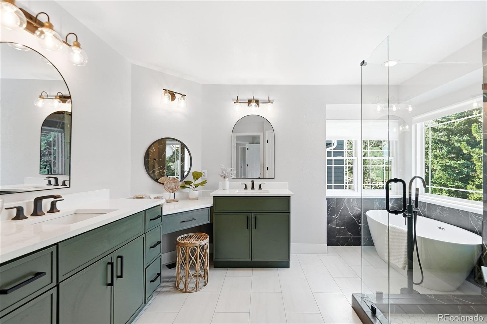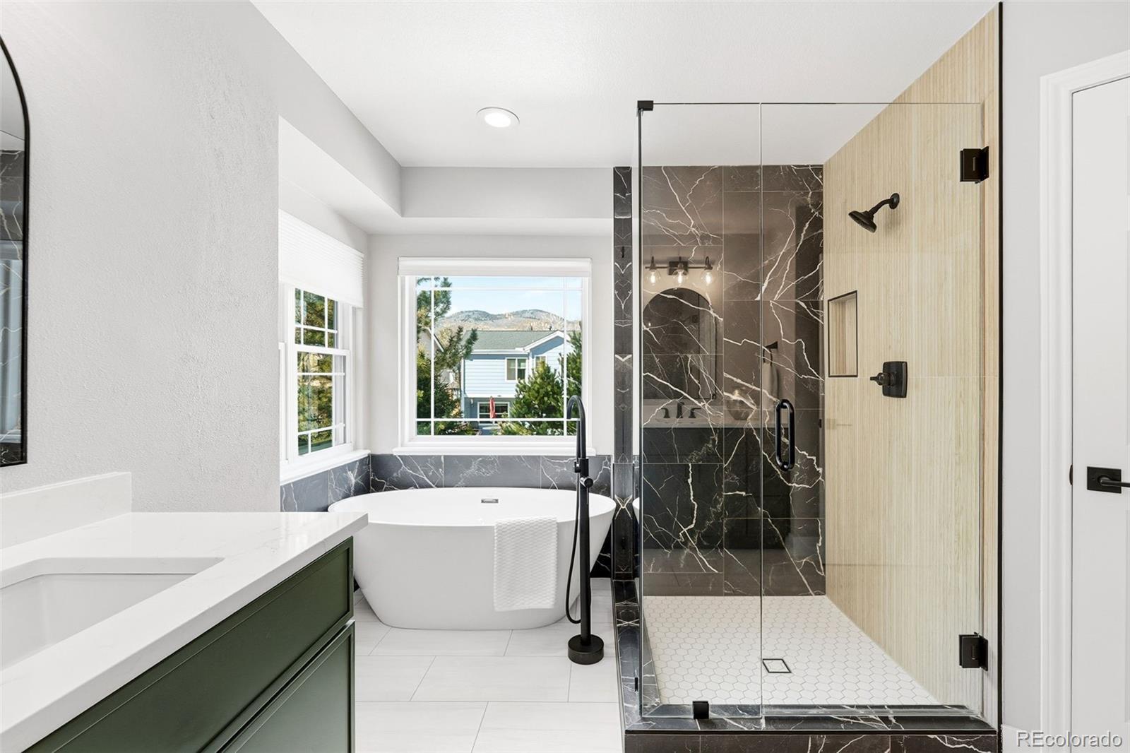 Nestled in the heart of Ken Caryl Valley, this stunning four bedroom, four bath home has been thoughtfully reimagined with extensive renovations throughout. Beautiful new floors flow through the main living spaces, complemented by fresh interior paint, new handrails, and designer lighting. At the center of the home lies an exceptional chef’s kitchen designed to impress, from the high-end Dacor range and oven to the Bosch dishwasher that makes cleanup a breeze. A generously sized island anchors the space, offering the perfect setting for entertaining, while new modern cabinetry and abundant storage strike a flawless balance between style and practicality. The kitchen opens to the family room, where a gas fireplace and plantation shutters create an inviting living space. The spacious primary suite is a serene retreat with vaulted ceilings and a spa inspired bathroom with a luxurious soaking tub, expansive shower, custom tile work, dual vanities, and refined finishes. Outdoor living beckons with a heated paver patio, where a gas fire pit and built-in heaters set the stage for year-round enjoyment. An outdoor kitchen with a built-in grill and mini refrigerator makes hosting effortless, whether for lively summer gatherings or intimate evenings beneath the stars. The finished basement is ready to be tailored to your lifestyle, featuring a rec room with a wet bar, ideal for a pool table or home theater, plus a bonus room perfect as a workout space or a craft room. Major systems have been updated, including a tankless water heater, furnace, and air conditioner, plus exterior paint in October 2025. This incredible neighborhood offers access to thousands of acres of private open space, 45+ miles of scenic trails, sweeping views, abundant wildlife, and community amenities including pools, tennis, pickleball and basketball courts, an equestrian center, and youth camps. This fully remodeled, move-in-ready home is a true showstopper... nothing left to do but make it yours.