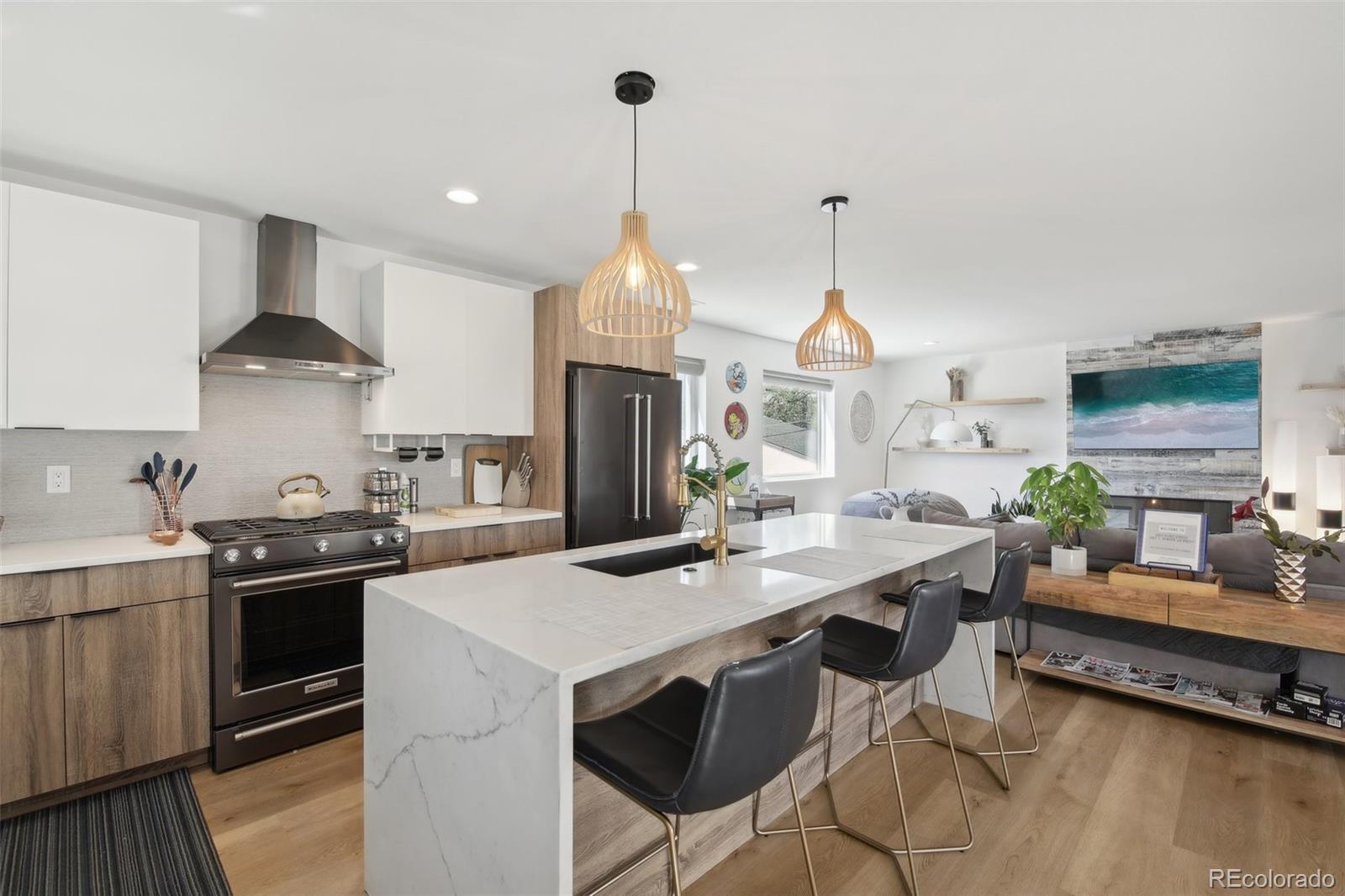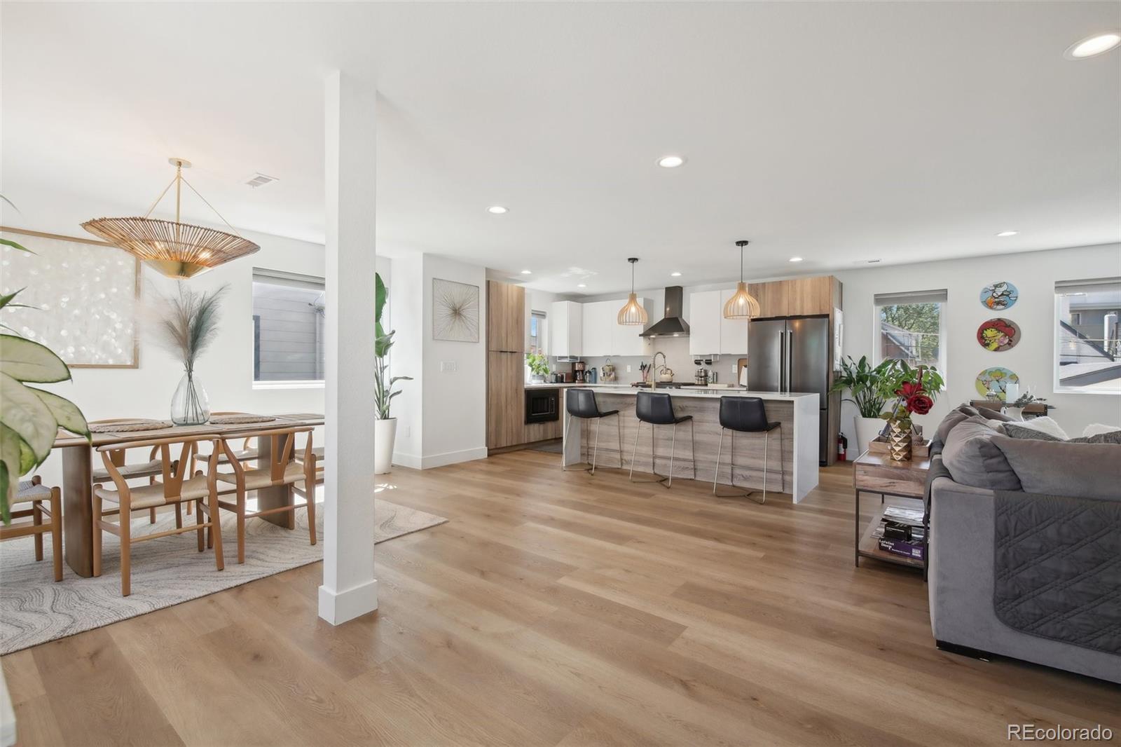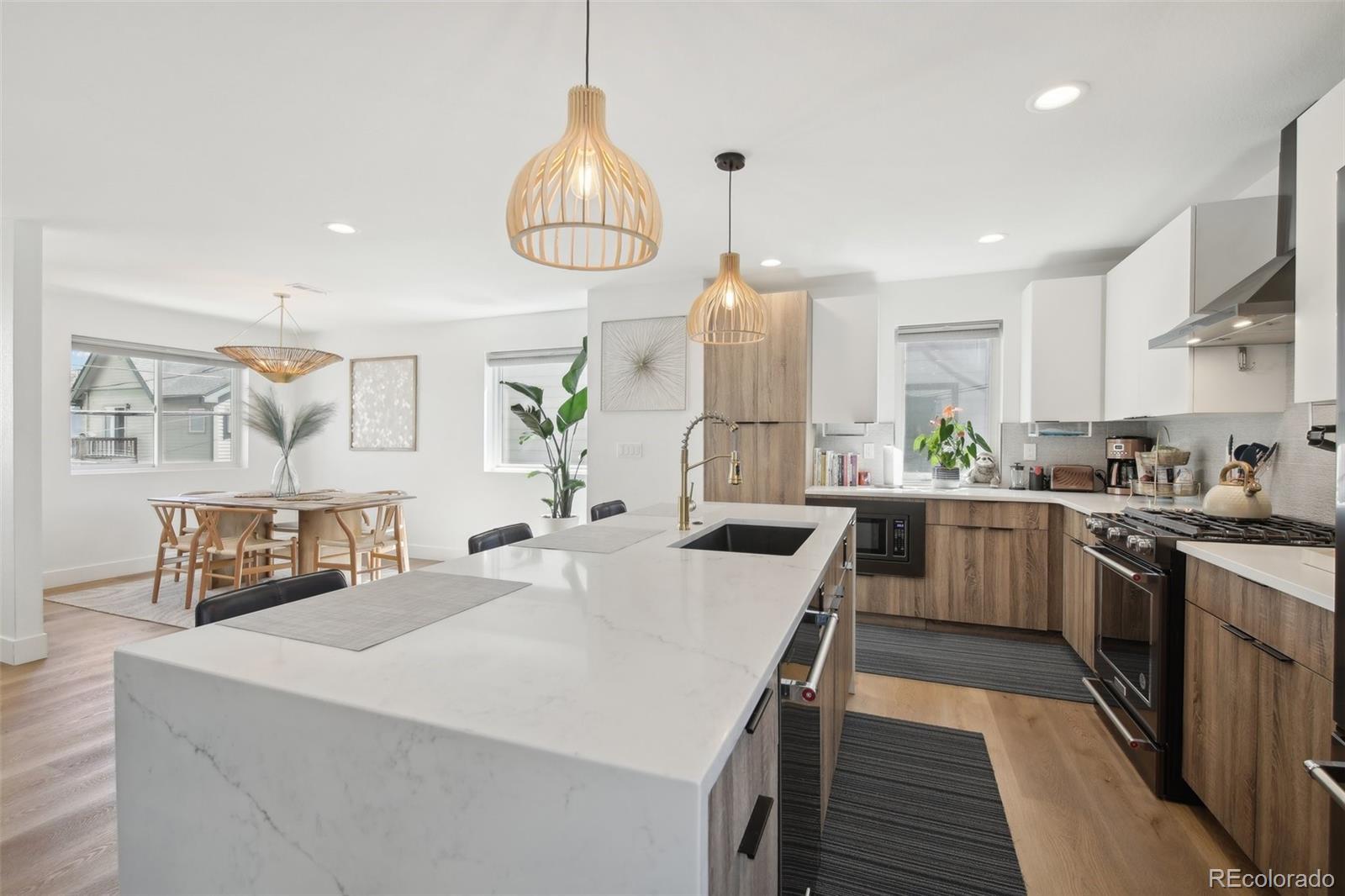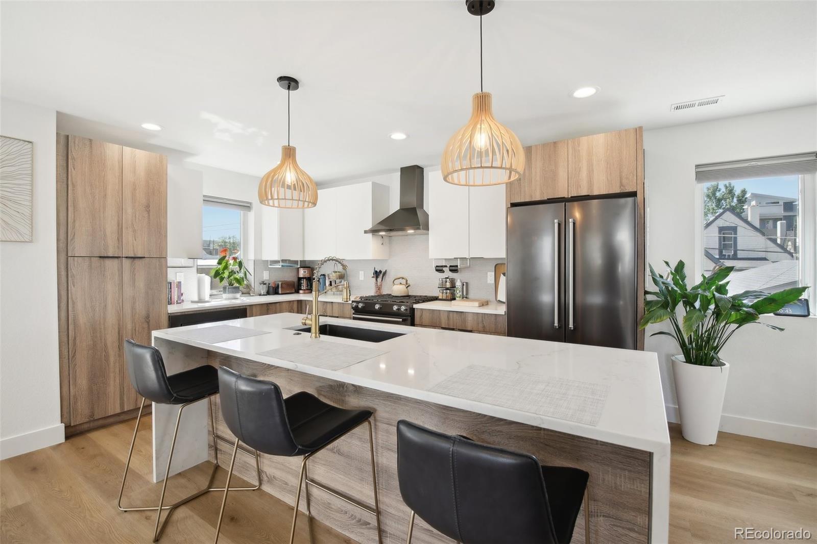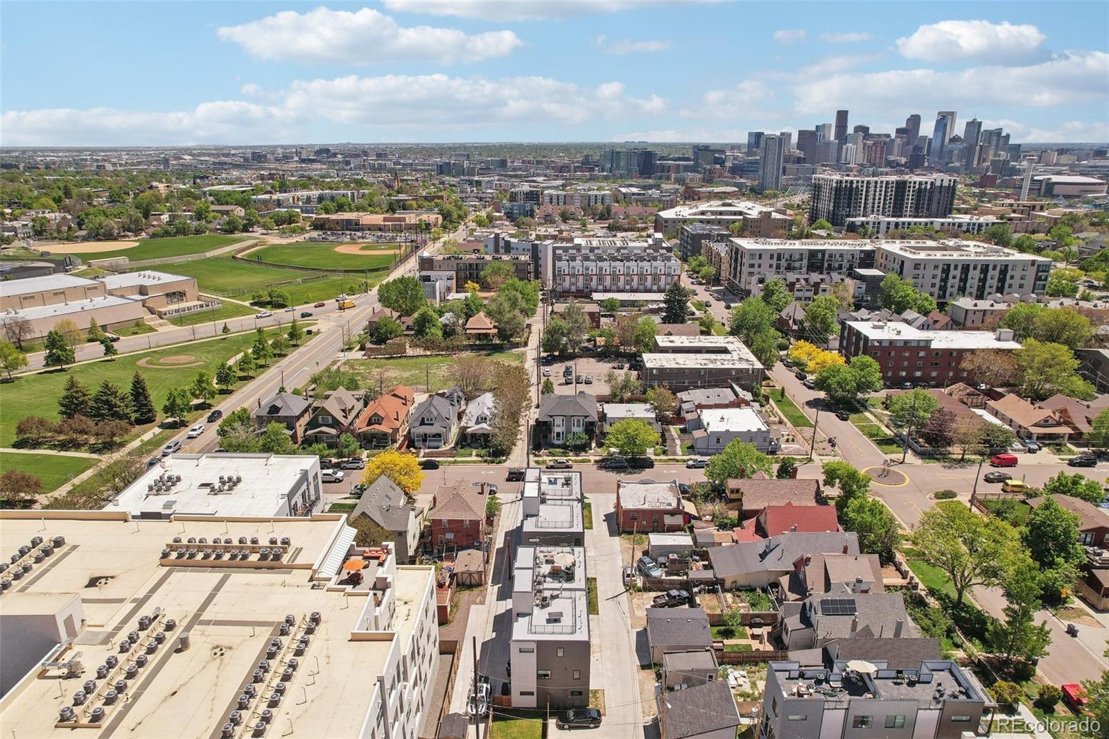 Jefferson Park Stunner! This sleek and stylish 3-year-old half duplex, tucked just off Eliot St, perfectly embodies the trendy, vibrant energy of the neighborhood. Move-in ready and effortlessly chic, this urban retreat invites you to start living your best Denver life from day one. (Furnishings negotiable!) Step inside to an open-concept great room where modern elegance meets Bohemian flair. Large windows flood the space with natural light, highlighting stylish accents and creating the perfect setting for both relaxation and entertaining. The gourmet kitchen is a dream for chefs and hosts alike, featuring KitchenAid Medallion appliances, quartz countertops, and a striking waterfall island—the ultimate hub for gatherings, casual meals, or culinary creativity. At the heart of this home is a rooftop oasis that will take your breath away—panoramic views of the Denver skyline and the Rockies set the stage for unforgettable gatherings or quiet evenings under the stars with a cocktail in hand. And when you’re ready to step out, Jefferson Park is your playground. With easy access to the buzz of LoHi, Sloan’s Lake, and the Highlands, you’re never far from trendy cafes, artisanal shops, and vibrant nightlife. This is more than a home—it’s a lifestyle. Schedule your showing today and claim your spot in one of Denver’s most sought-after neighborhoods!