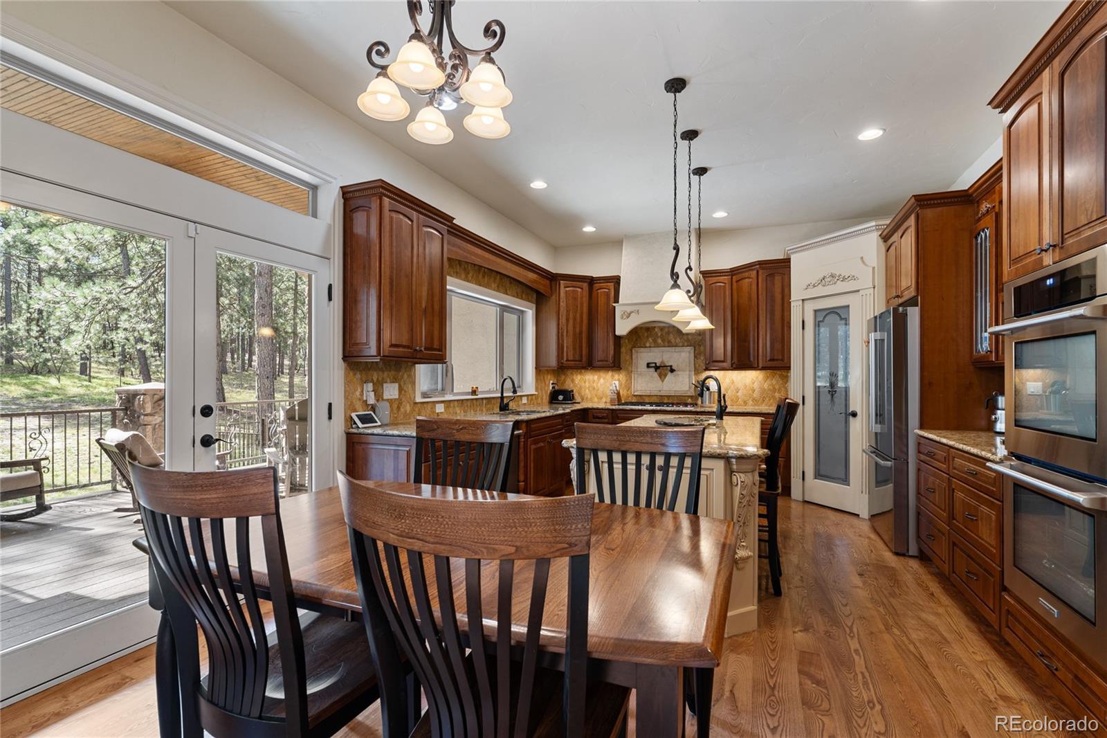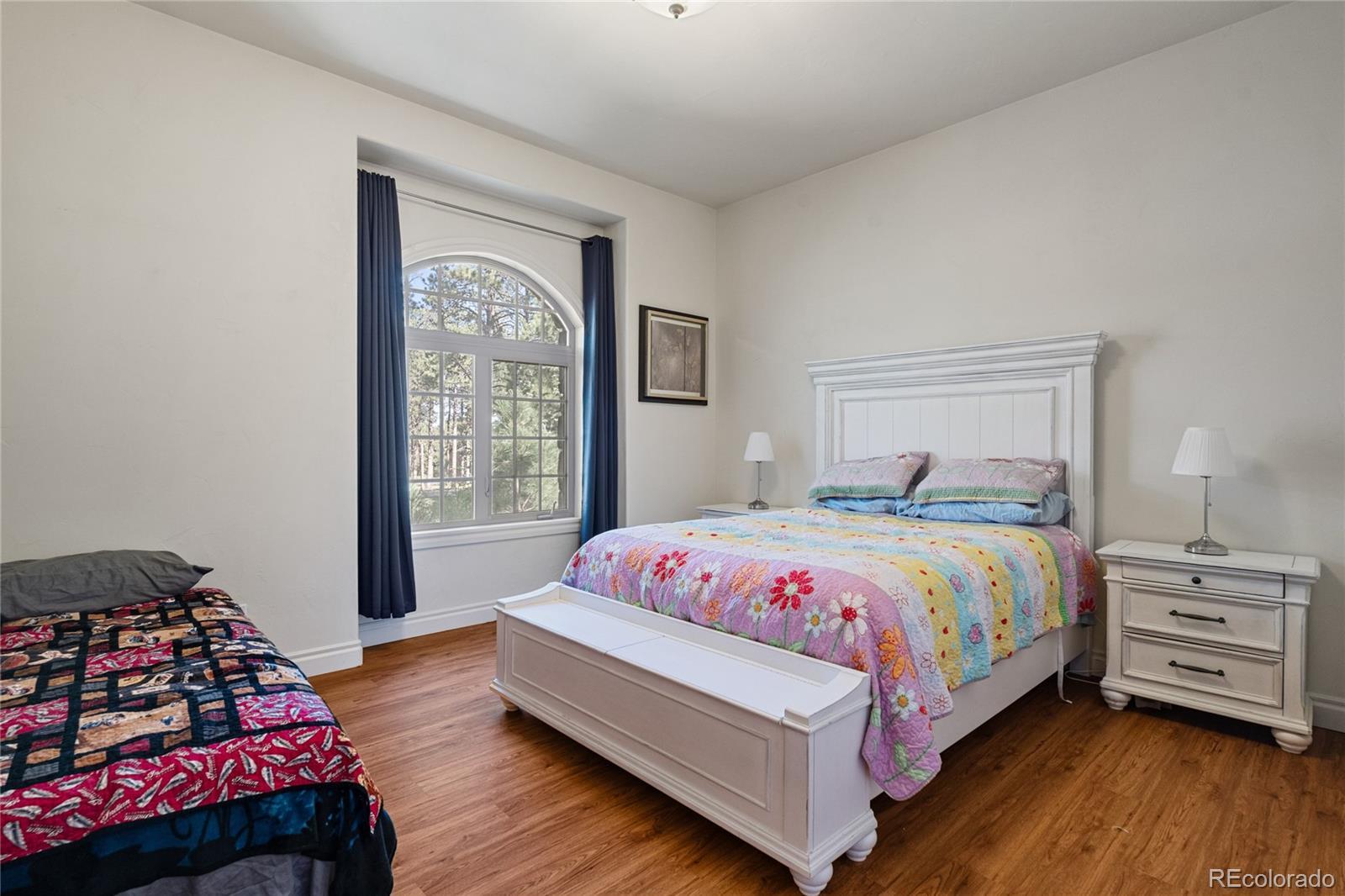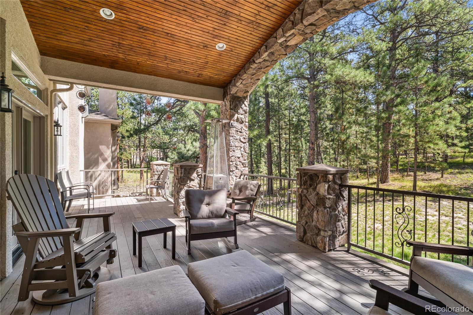 Welcome to the perfect blend of elegance, functionality, and multigenerational comfort. This meticulously upgraded home offers over-the-top features designed to make life easier, smarter, and more luxurious. Step inside to find crown molding throughout, 10+' ceilings, and a kitchen with newer Bosch appliances. Downstairs, there is a full kitchen which creates the ideal space for multigenerational living, private guest quarters, or a place to relax and unwind with full kitchen conveniences. Stay comfortable year-round with newer furnaces, central A/C, and a natural gas generator with surge protection—peace of mind at its finest. The roof, well pump, and water softener have all been recently replaced, ensuring major systems are updated and efficient. But the fun doesn’t stop there—head downstairs to your private golf simulator (included!) for year-round practice or entertaining friends and family. High-speed fiber optic internet makes remote work or streaming seamless, and the home is wired for today’s digital demands. Outside, enjoy peace and privacy of the pines and a covered deck for year round outdoor enjoyment. From the high-end finishes to the thoughtful layout and durable upgrades, this home checks all the boxes for Colorado living at its best.