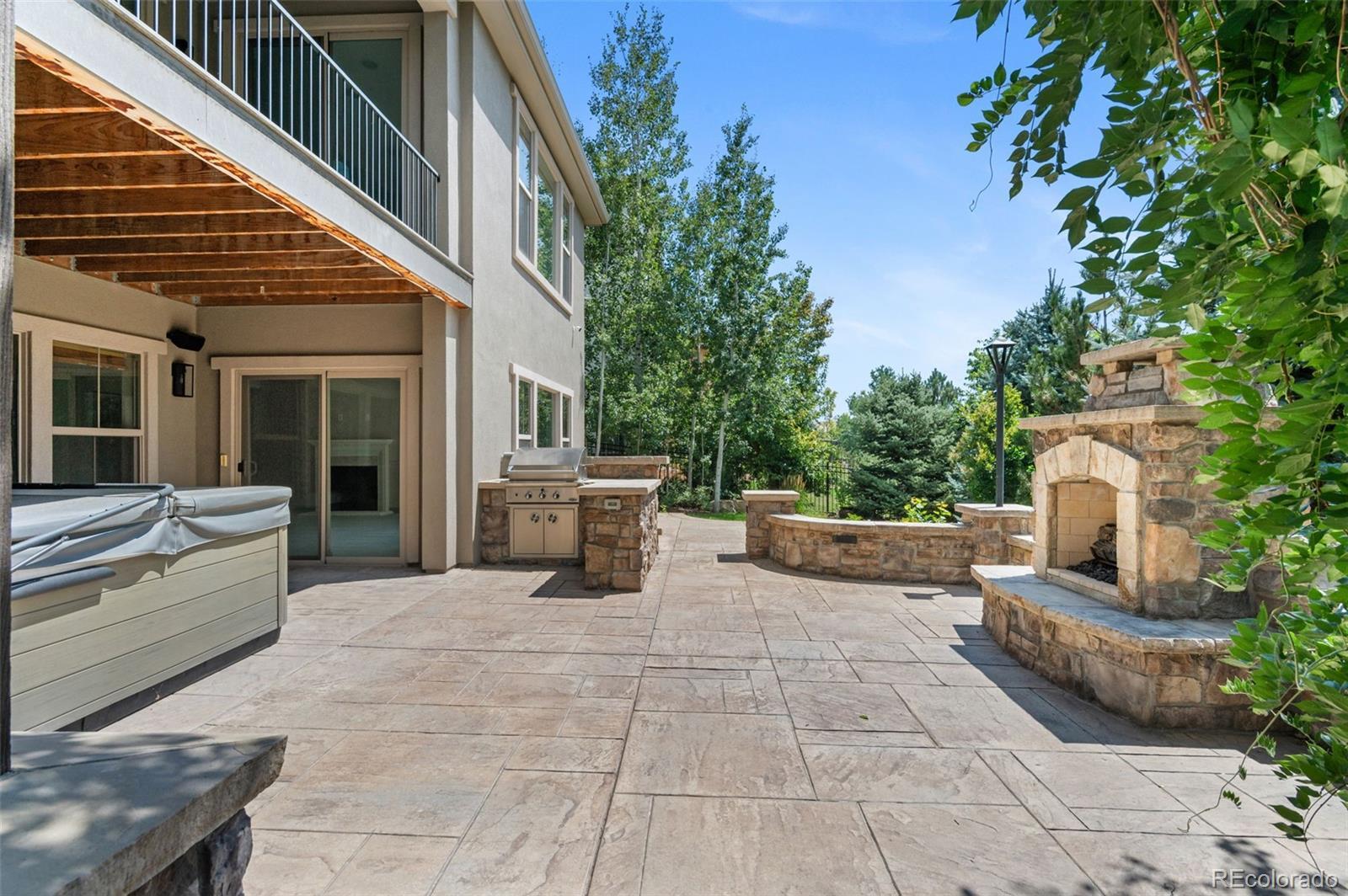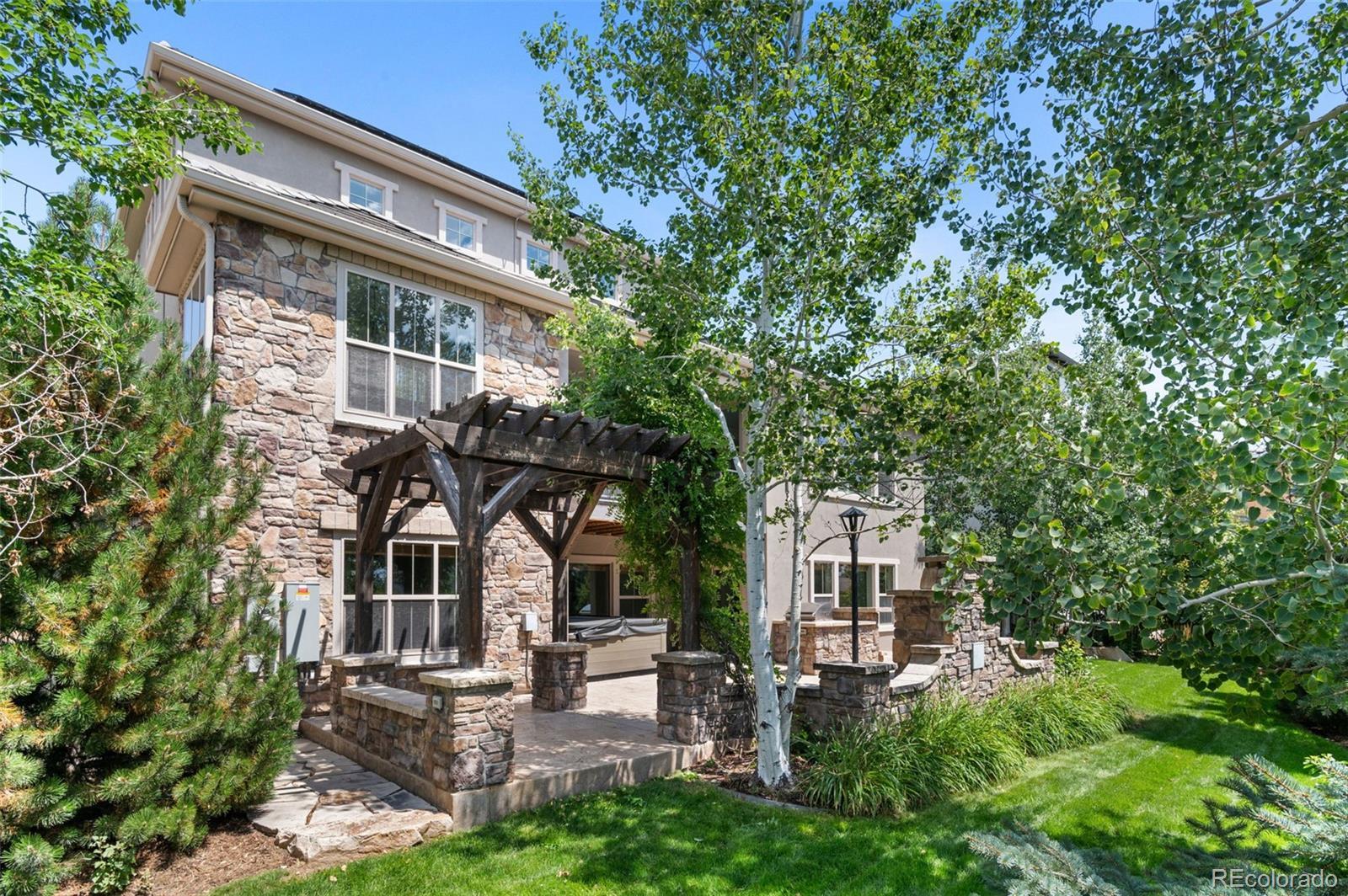 Experience the ultimate in Solterra living in this remodeled Infinity home. With a walkout basement, Grand Great Room, and high-end finishes, you'll feel like your living in a five-star resort. It is located on Solterra's best cul-de-sac - a quiet and private street with some of Solterra's finest homes framed by larger-than-life Red Rocks views. Enter the home through a courtyard and notice the attention to detail – new wide plank hardwood floors and a dramatic staircase surrounded by ledger stone. The home is built around a great room with soaring 19-foot ceilings adorned by hand-hewn timber beams and windows that kiss the room with natural light. This home is the perfect blend of rustic and modern. With custom woodwork, timeless updates, and plenty of natural light, you'll love entertaining guests in this space. The kitchen shows new Bosch appliances, a light grey kitchen island with waterfall Bianco Calacatta quartz, and a designer tile backsplash. Custom details include wine storage and a wine fridge. Updates include new hardwood floors, carpeting, quartz counters, new sinks and plumbing fixtures, and all new lights, including flush mount LED cans, exterior paint, interior paint, new hardware, and more. Finished walkout basement features a fitness room, wet bar, and fireplace. The backyard is an entertainer's delight with a built-in grill/bar, fireplace, tiki gas lamps, pergola, large patio, and hot tub. Nestled in a postcard-perfect world between urban Denver and the surrounding Green Mountains, Solterra offers residents a four-season wonderland for active living. This award-winning community is draped in breathtaking views and an inspired architectural vision that takes cues from the Tuscan countryside. From its spectacular natural surroundings to its centerpiece clubhouse, Solterra has left no detail overlooked.