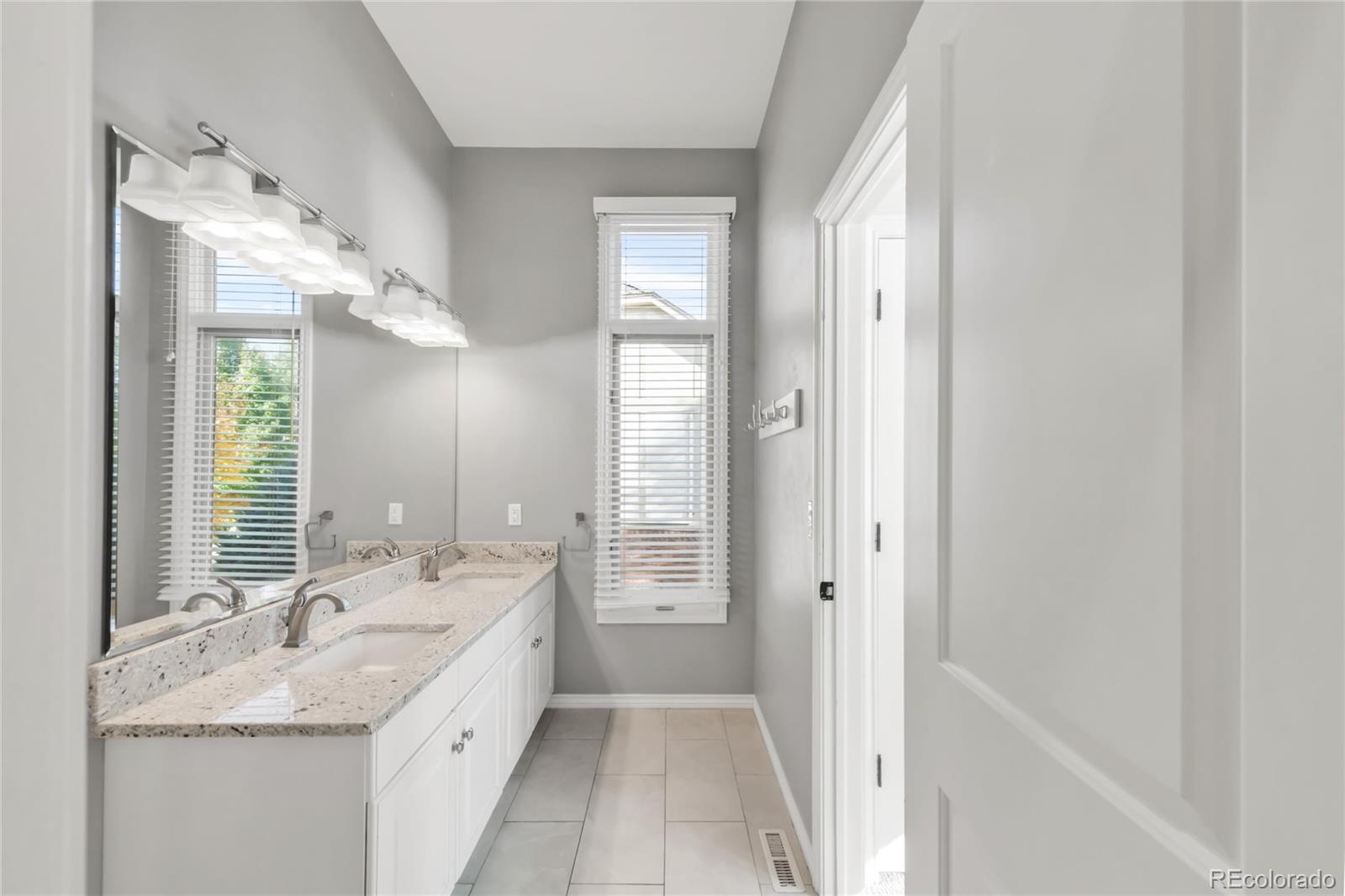 Move in ready! Every room in this Heritage Greens home has been updated! Gorgeous hardwood floors throughout the main level set the tone for this open floor plan. The massive kitchen boasts a beautiful 10ft island, incredible storage, and matching stainless steel Jenn-Air appliances. The dining room and family room flow from each ends of the kitchen area, creating an entertainer's dream! The perfect space for hosting guests. The main floor office/den is a warm and relaxing space and the mudroom is equipped with built-in cubbies. You will find four bedrooms on the 2nd level with a large primary bedroom featuring an ensuite 5-piece bath with heated flooring, laundry, and a very sizable walk-in closet! The 2nd upper bedroom is spacious, bright, and has an ensuite 3/4 bath. Bedrooms 3 & 4 share a Jack & Jill full bathroom. Bedroom 5, a 3/4 bath, and a spacious bonus room are found in the basement. A large storage area in the basement also has access to the garage for an easy in and out for anything you need! (think Costco supplies, holiday decorations...) The home has a welcoming backyard featuring plenty of room for both a sitting area and dining area. The Heritage Greens neighborhood incudes a pool, tennis courts, sand volleyball, a park, and backs to South Suburban Golf Course. The neighborhood committees host community events throughout the year - a perfect way to meet your neighbors. Award winning Littleton schools, easy access to park trails. Buyer to verify sqft