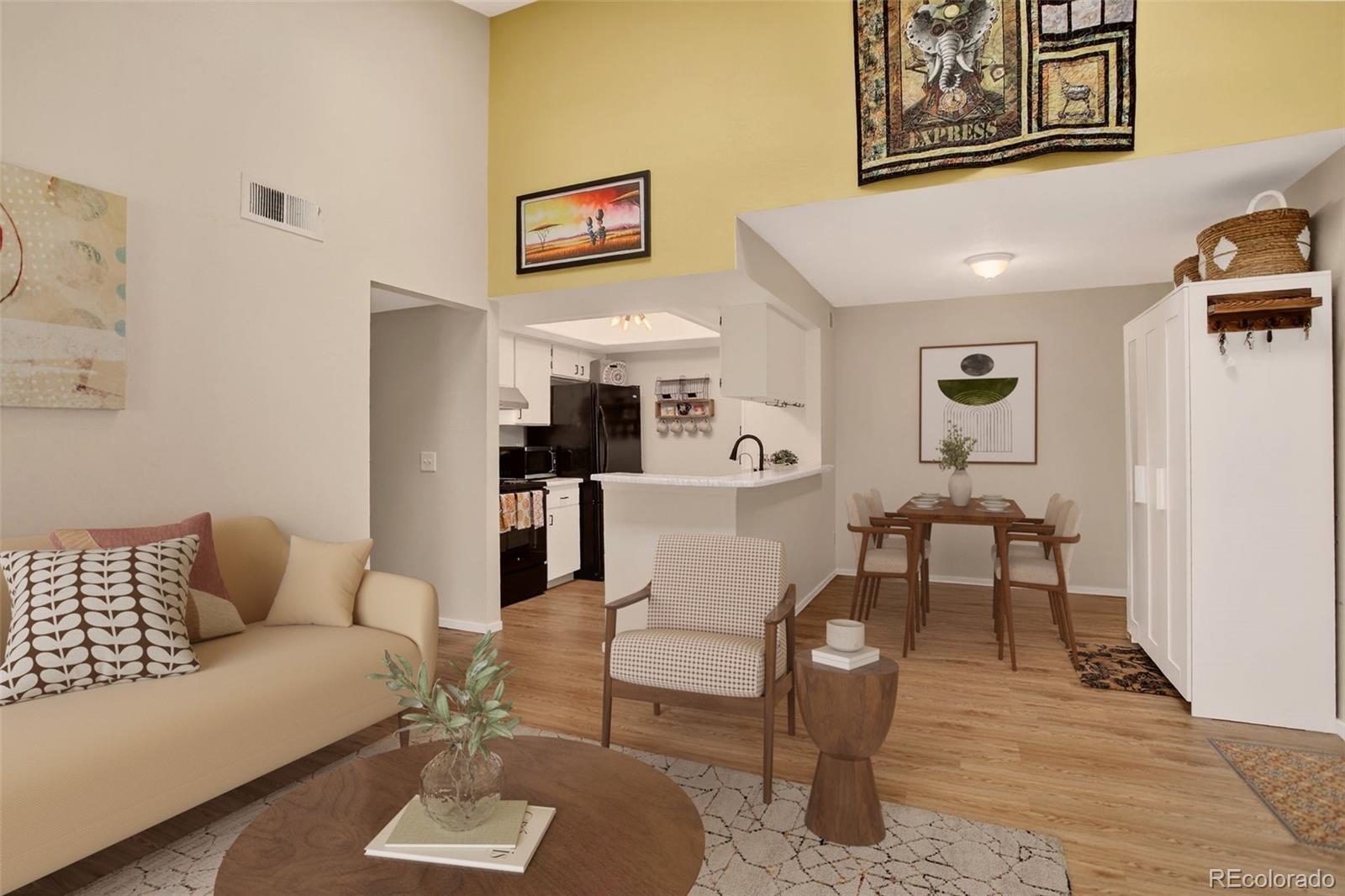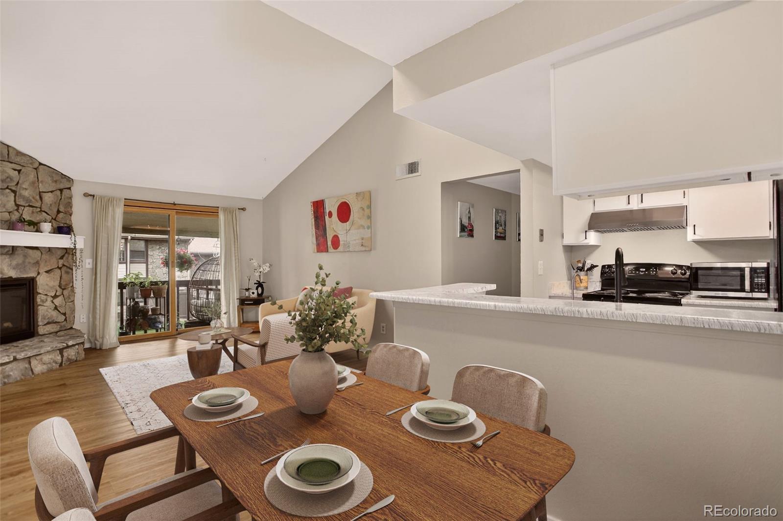 Welcome to this beautiful 2-bedroom, 1 1/4-bathroom condo in Arvada! **AMAZING INVESTMENT OPPORTUNITY- EASY TO RENT!** Bursting with character and natural light, this upper-level condo features soaring ceilings, skylights and a fireplace which create a cozy and inviting atmosphere. The open-concept kitchen includes updated appliances (including a new fridge and dishwasher) and a separate dining area great for entertaining. The spacious primary bedroom offers plenty of space to relax, along with an en-suite bathroom and large walk-in closet. A second bedroom opens more space to be used as a bedroom, office, or anything you need! The home includes a washer and dryer in the unit. Step outside to the private balcony—a true highlight—overlooking a peaceful courtyard with mature trees and well-maintained landscaping, perfect for your morning coffee or evening unwind. Just down the walkway you will find the large community pool that is refreshing for those warm sunny days. The condo is also ideally located near several walking and biking trails, giving you easy access to nature and outdoor activities. You're only a few blocks from Standley Lake. New Renewal by Anderson windows & patio door installed in 2022 with transferrable warranty. Brand new WATER HEATER installed October 2025. The seller is offering to cover 1 year of HOA dues for the buyer.