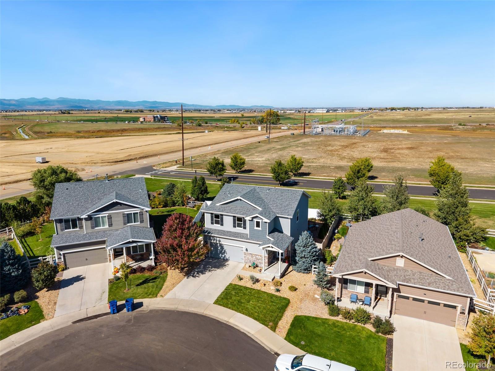 Mountain views and seeing daily hot air balloons - are just a few of the reasons to call 5707 West View Circle your home! This 4 bedroom, 3 bath home features newer flooring, modern updates and a low maintenance backyard! The main level has a large entryway with high ceilings, a powder room, two closets, and an open floor plan including the living room, dining area and kitchen! All your beverages will find their home in either the Samsung Bespoke fridge or the wine cooler! The upper level features 3 bedrooms, a bathroom, a laundry room AND a very large Primary Suite. The Primary Suite has mountain views, a soaker tub with a separate shower and a closet that is the size of a room (10' x 10')! The back yard is larger than most and is ready for either entertaining or relaxing. Landscaping is easy with native grasses, a few trees and turf! The patio is custom concrete and large enough for seating areas and includes a fire pit! Wanting a little more fun? A built-in trampoline is perfect for jumping as high as the mountains in the background! This is the only home in the community with a privacy fence - but your neighbors are the kind that say "hi"! Legacy Park is a small community of homes just 1.4 miles east of I25, and right in between Denver and Fort Collins. Dacono, Frederick and Firestone - the "Tri-Town" area grew around the historical coal mining industry and are part of the growing Front Range Urban Corridor. Growing is right - this area is booming with new development + improvements! Come see why this house should be your next home!