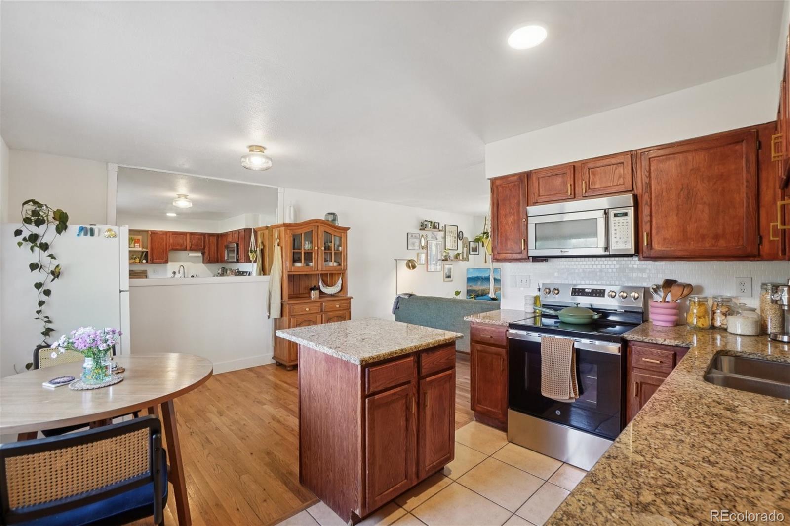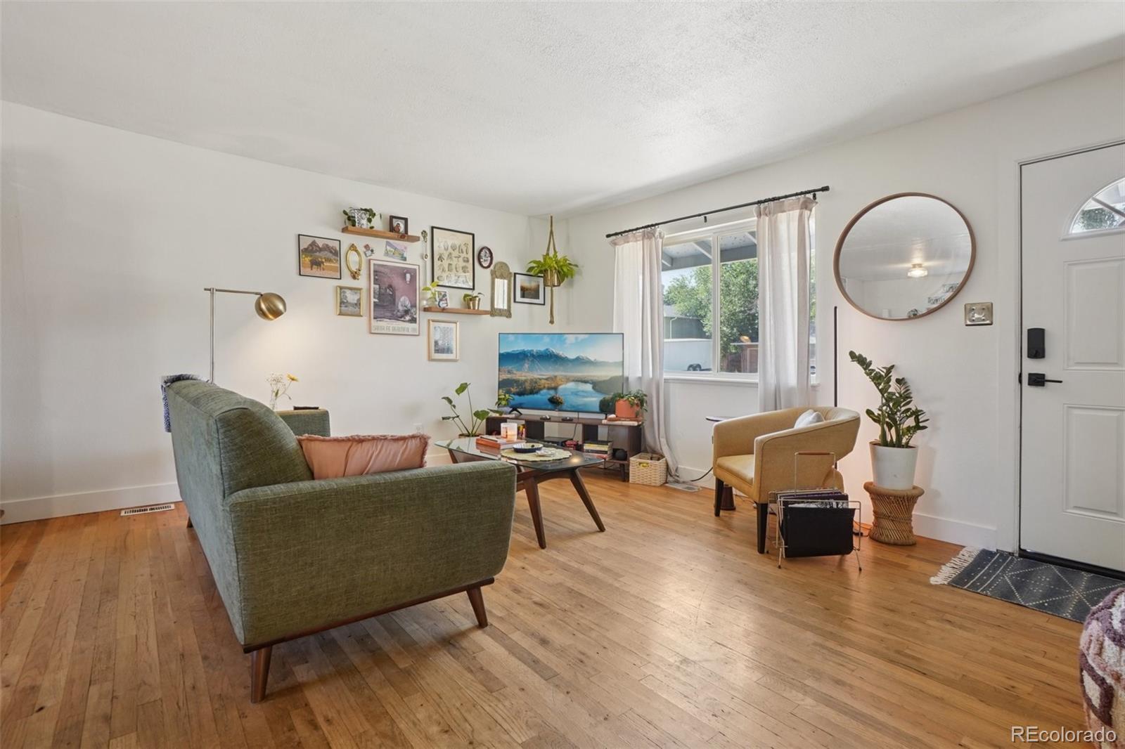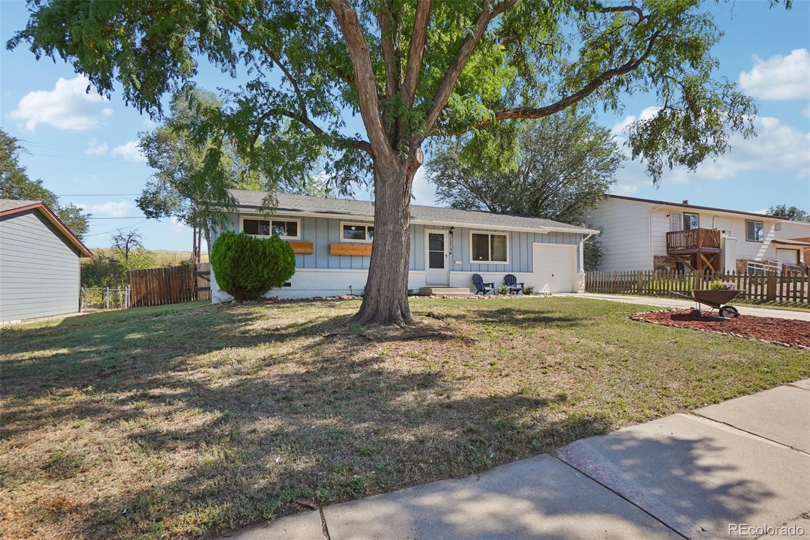 Welcome to this lovely ranch style home in a convenient location just minutes from I-25, shopping, parks and restaurants. The home boasts 3 bedrooms, 2 bathrooms and a 1 car attached garage with a spacious backyard. When you enter the home you'll notice the naturally lit living room with wood flooring that runs throughout the home. The living room flows into the open concept kitchen and dining room which comes equipped with an island, dual sink, granite countertops and updated appliances. Beyond the kitchen is a laundry/mudroom leading to the spacious backyard. Down the hall we have the cozy primary bedroom with an en suite 3/4 bath. Next to the primary bedroom is bedroom 2 and 3 which either one can double as an office space if needed. Near bedroom 2 and 3 is a conveniently located full bathroom. Come check this home out today!