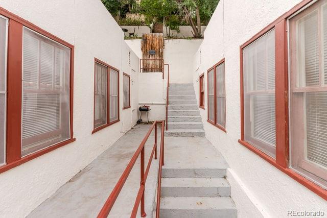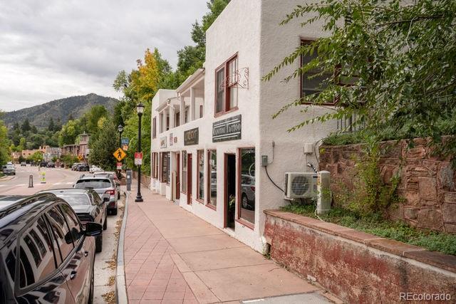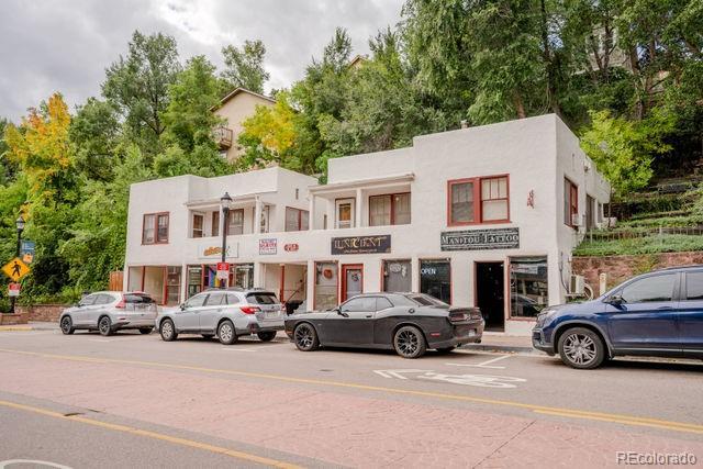Opportunity to own a mixed-use building in the heart of Manitou Springs! This mid-century modern building has 4 commercial units on the ground level and 4 one-bedroom units on the upper level. This property could be both an investment and owner-occupied property. As an owner-occupied property, there is easy access to downtown Manitou Springs, Soda Springs Park across the street and numerous hiking trails that are within walking distance. Two of the 1-bedroom residential units could be combined to create a larger owner unit if desired. There is adequate on street parking in the Residential Parking Permit (RPP) area that runs along Ruxton Ave. There are 4 parking spaces in front of the property that are available for retail customers from 9 am to 6 pm daily. There is additional land behind the building that is terraced. This area could be used for future building or outside area for owner or residents. There is a small un-rented space on the first floor that the owners have used as an office. This could be converted to a laundry room for the tenants.