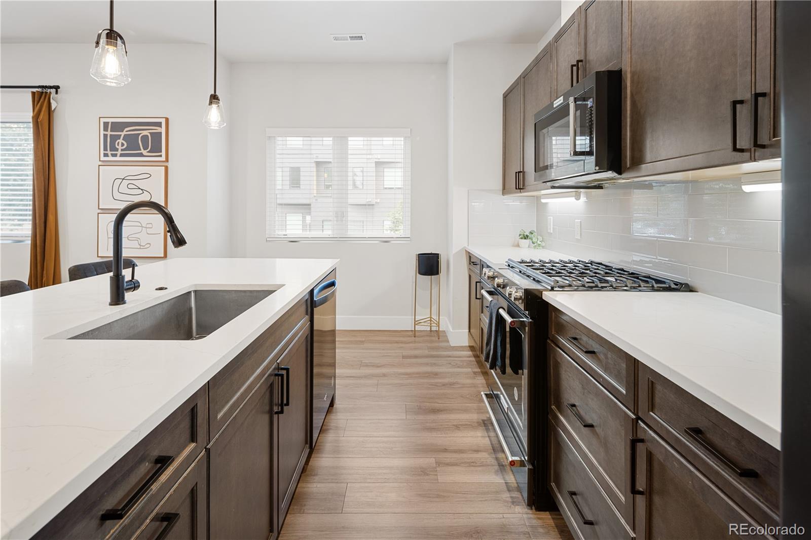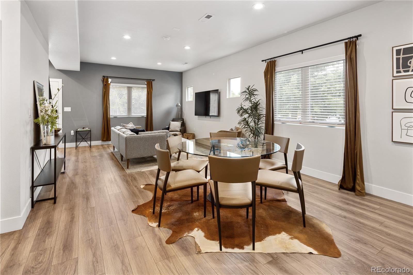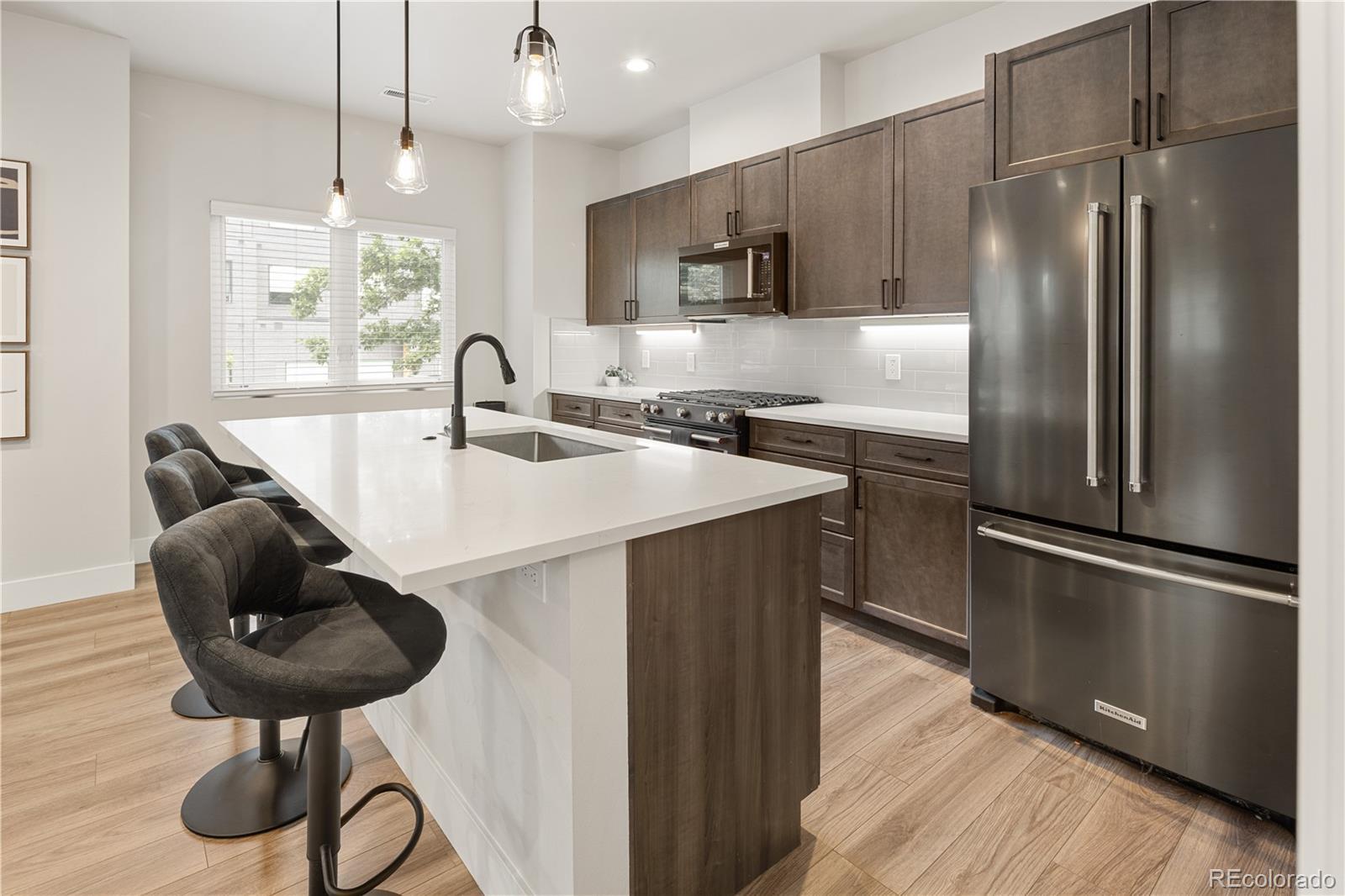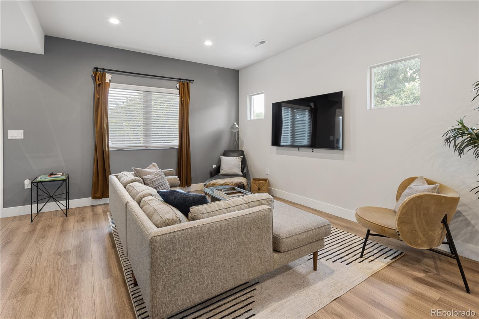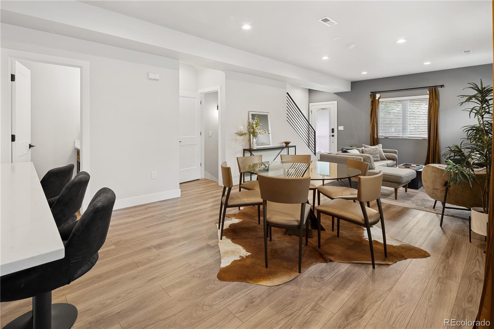 This beautiful 3-bedroom, 4-bathroom home, offers the perfect blend of style, comfort, and functionality. Situated in the popular Sunnyside neighborhood, this property has countless features designed for modern living. • Open Floor Plan: The open-concept layout welcomes you with natural light and flows seamlessly from the living room to the dining area and kitchen, ideal for entertaining. • Functional Kitchen: The efficient kitchen is designed for optimal workflow, featuring sleek quartz countertops, modern glass tile backsplash, high end KitchenAid stainless-steel appliances and woodgrain, soft-close cabinets for all your culinary needs. Plus, a large island perfect for meal prep and casual dining. • PRIVATE LOCK-OFF BASEMENT: Enjoy the flexibility of a fully equipped basement apartment with a separate entrance, Washer/Dryer hookup and ROUGHED-IN KITCHENETTE plumbing, ideal for guests or even as a rental income opportunity. • Large Side Yard: Step outside to the expansive side yard, offering ample space for outdoor activities, gardening, and relaxation. • Wrap-Around Front Porch: The inviting wrap-around porch adds to the curb appeal and provides a relaxing space to enjoy the outdoors while sipping your morning coffee. Additional Features: Large 2-car detached garage with ample storage, Smart features including Yale keypad, Nest thermostat and 1 gig hardwire fiber internet. Close proximity to local schools, parks, eateries and shopping in Sunnyside and the surrounding areas of LoHi & Fox St. Station. This is the perfect combination of indoor and outdoor living for both entertaining and relaxation.