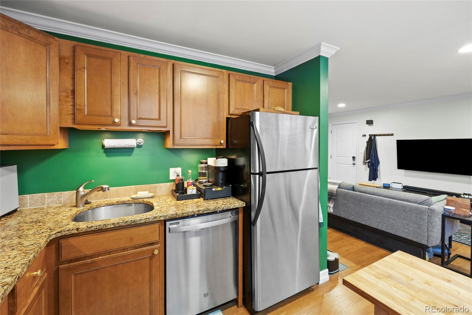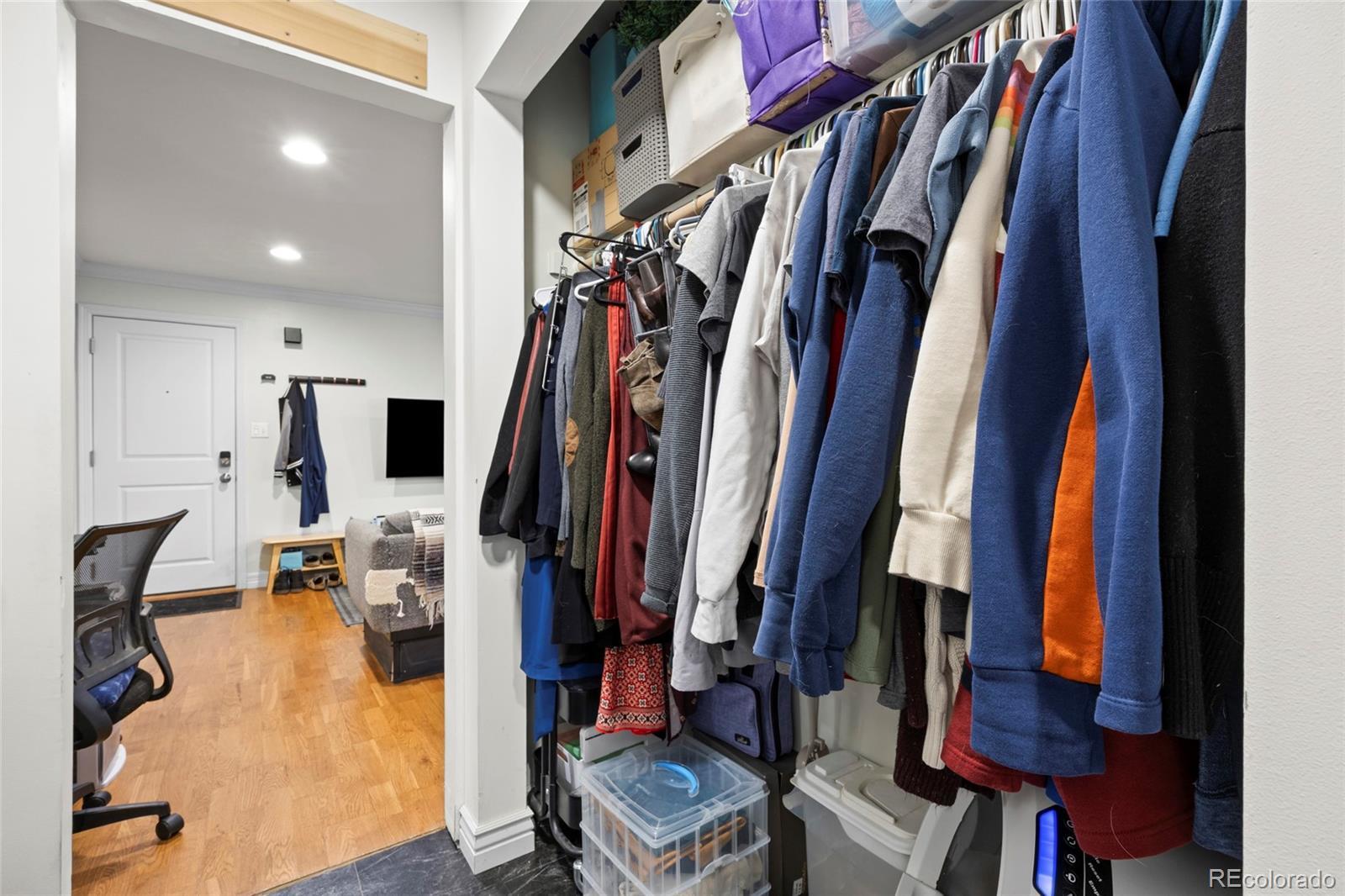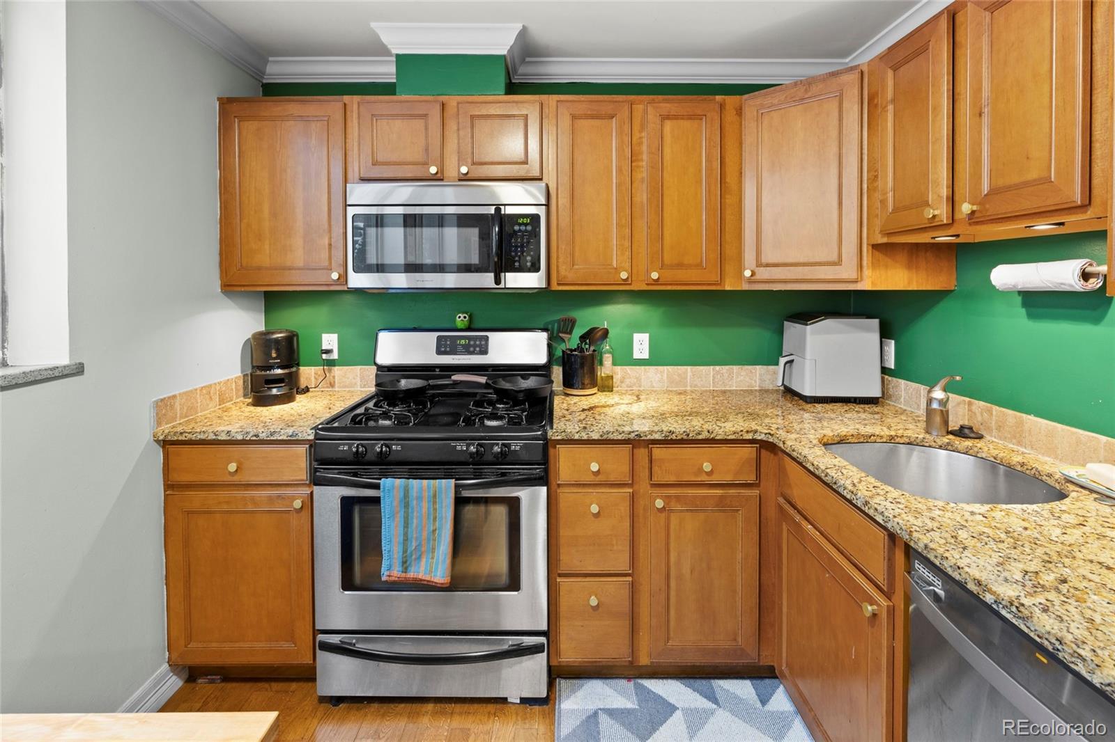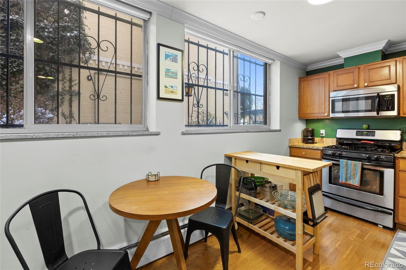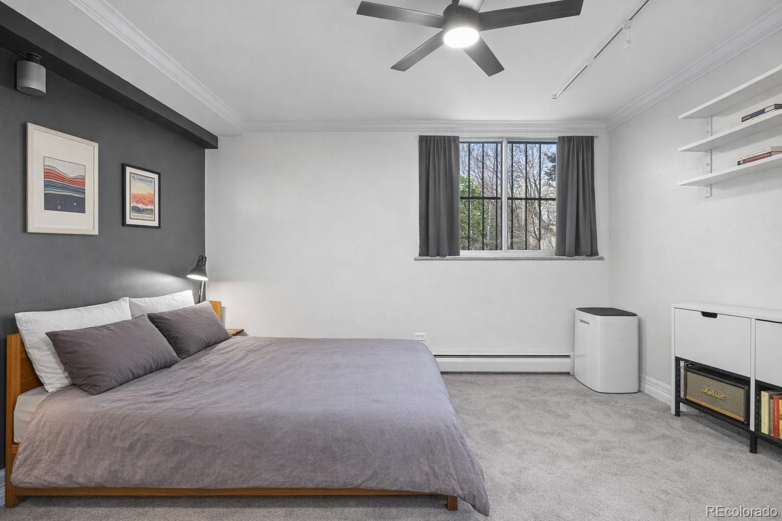 This beautifully maintained condominium offers the perfect blend of charm, convenience, and value in one of Denver's most desirable neighborhoods. Step inside to discover an open floor plan bathed in natural light from south-facing windows that showcase warm wood floors throughout. The thoughtfully designed kitchen features stainless steel appliances, a gas range, and elegant crown molding - ideal for both everyday cooking and entertaining. Step into the completely remodeled bathroom, updated with fresh fixtures and modern finishes. Conveniences include an IN UNIT WASHER AND DRYER, wall AC unit, and custom closet built-ins that maximize storage. The unit comes with a DEEDED PARKING SPACE (#5) and additional storage unit - rare amenities at this price point. Located on a peaceful tree-lined street just one block from Cheesman Park, you'll enjoy easy access to green space, walking paths, and the vibrant local community. The building's shared outdoor patio with gas grill provides the perfect setting for summer gatherings. This move-in ready home offers exceptional value in a prime location with easy access to downtown dining, shopping, and entertainment. Schedule your showing today - this gem won't last long! The neighborhood’s charm includes cafes - Liks Ice Cream Shop and Wyman’s Pizza & Bar - boutique shopping, art galleries, and Denver’s best dining, all within walking distance - and you’re minutes from the Denver Zoo, Downtown Denver, world-class museums, and convenient transit options right out the door.
