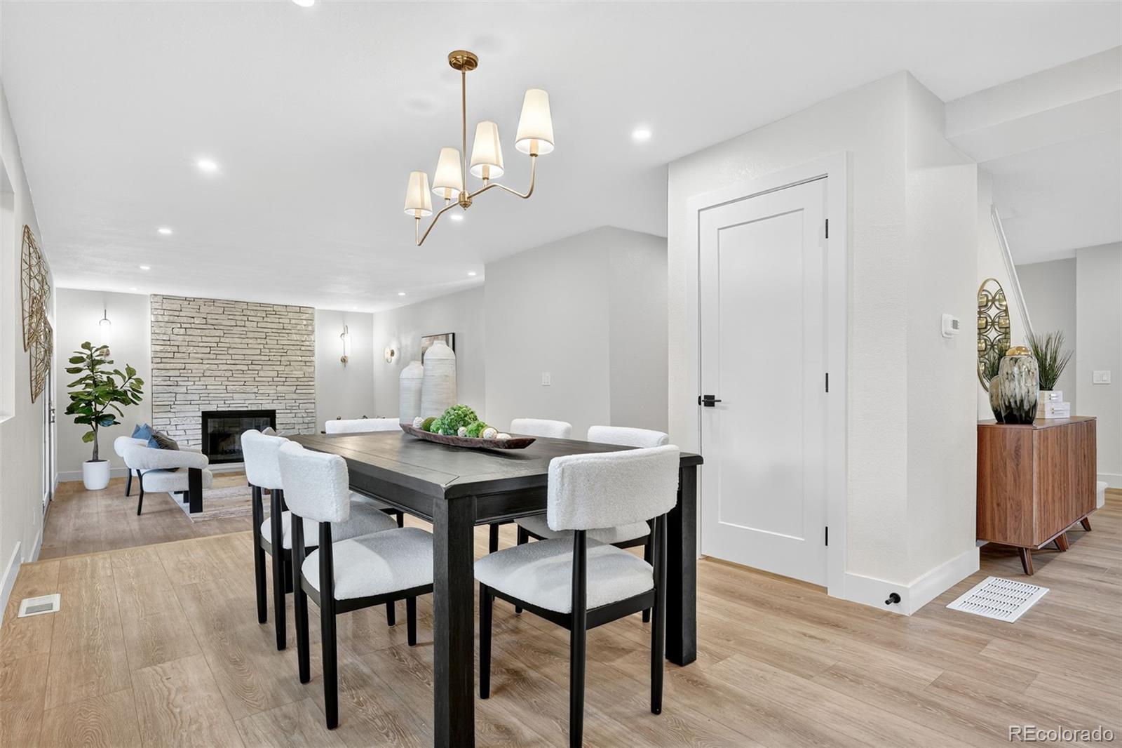 Welcome to this fully remodeled luxury home in the highly sought-after Sundance Hills community. This 5-bedroom, 4-bathroom residence has been meticulously updated from top to bottom with high-end finishes and a modern, open-concept floor plan designed for both everyday living and effortless entertaining. The heart of the home is a gourmet kitchen featuring custom cabinetry, premium appliances, pot filler, full-height designer backsplash, and a large center island. The kitchen opens to the formal living room and family room, complete with a cozy fireplace and 8-foot sliding glass doors that flood the space with natural light and lead to a beautifully landscaped backyard. Retreat to the private primary suite, where you'll find a spa-like ensuite bathroom that rivals a luxury hotel—with a deep soaking tub, oversized shower, dual vanities, and sleek gold-toned fixtures. The suite also includes a private deck and large walk-in closet. A finished basement adds major versatility with a spacious rec room/game room, second dining area with wine fridge and bar fridge, a full bathroom, and an additional bedroom—ideal for guests or multigenerational living. Community amenities such as a six-lane competition pool, diving pool, tennis courts, sand volleyball, and playground are available through additional membership. Located in the top-rated Cherry Creek School District and just minutes from Cherry Creek Reservoir and DTC for premier dining, shopping, and outdoor adventures. Style. Comfort. Location. It’s all here