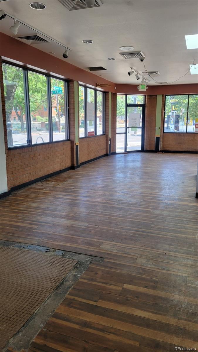 Large end cap on the corner of 9th and Corona. Approx 2000 sq ft main floor plus unfinished basement of equal size. Listing agent has not measured. Very large basement can be used for storage or as work space and has a bathroom and window. Unit has its own gas forced air furnace, a/c, and water heater. Security gate at back entrance. Currently 1 Bathroom on the main floor. Owner will add a second bathroom prior to occupancy. Across from busy King Soopers and Ace Hardware. High density neighborhood with very high volume of car and foot traffic. Gas and electric are metered and billed to unit, Water is billed by landlord. Proportionate share of property taxes billed by landlord yearly. Unit has tile, concrete, and laminate flooring. Large windows on 9th Ave and Corona. Great space could be a gym, antique mall, office suites with storage, laundromat, thrift shop, bike shop, so many possibilities.