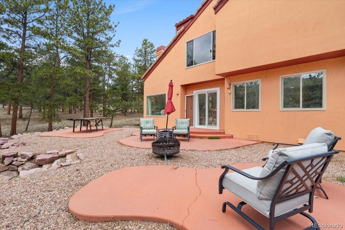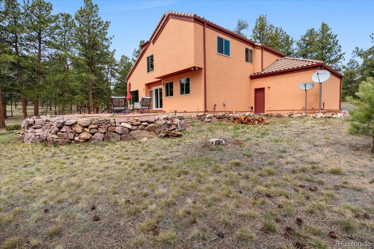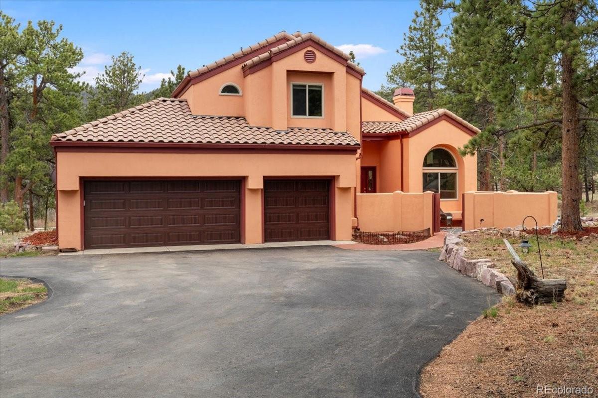 Welcome to your own sweet mountain oasis 1 hour from the Springs. This well-maintained home has a beautiful front enclosed patio and sits on 1.8 acres with two separate lots. The neighboring lots to the west are also available for purchase. That is almost 4 acres of privacy. This low maintenance stucco home has a tiled roof, concrete patios in the front and back and room to roam. Upon walking into the house, you are greeted by a vaulted ceiling and a quaint living room with a cozy fireplace. The sun shines in through the back of the house, offering southern exposure. There are 3 beds upstairs with 2 baths to include a jetted tub and free-standing shower. The views out back are wide open. The sitting areas offer the perfect place to enjoy the quietness and offer a place to unwind from it all. With access to the National Forest there is plenty to do. The landscape offers mountain views, rock outcroppings and open space. The property has been groomed for fire safety. The driveway is paved, and the garage doors are new. The windows, furnace and hot water heater are all new within the past 5 years. Don't forget grandpas favorite fishing hole. Eleven Mile is only 3 miles away. This is the perfect place to park the boat, RV or side by sides. The roads are all county maintained and offer an easy commute in and out. Divide is 25 minutes away and Woodland Park is another 15. Don't miss this fabulous opportunity to own a mountain property for full or part time use.