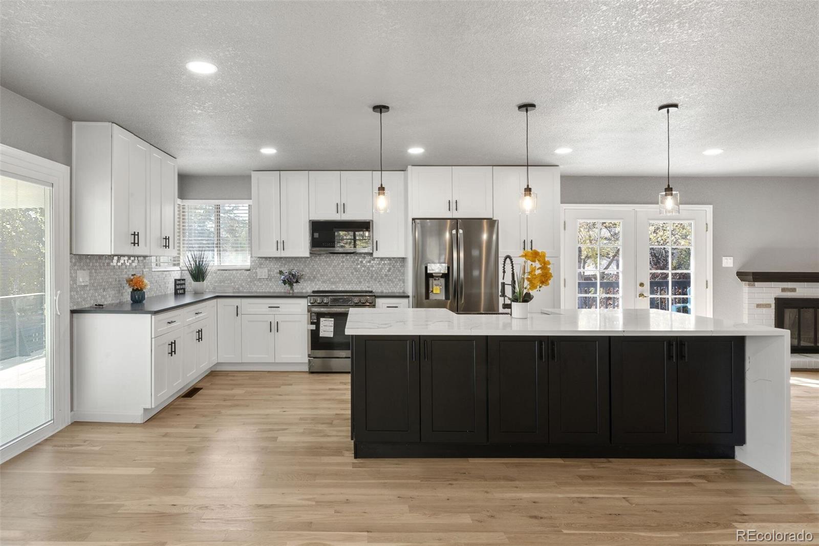Copy/paste for Matterport Tour: https://rem.ax/47gWVEH . WOW! is what you'll say as you walk in. You'll notice the new open floor plan and all the new finishes. New paint throughout, a completely new and re-imagined kitchen with large island, new cabinets, new appliances, new recessed and pendulum lighting and beautiful natural stone counters. New texture on the walls throughout the home. The new, enlarged primary bedroom has a spa-like primary bath and large walk-in closet. New main bath with a jetted tub. New sliding door off the kitchen leading to a wrap around deck. French doors leading to the additional deck off the dining room with a fireplace for those intimate diners or entertaining friends and family. Gleaming refinished solid wood floors. Downstairs you'll find 2 additional non-conforming bedrooms, (w/o egress windows), and another spa-like bathroom. Lighted mirrors, all new lighting throughout, and freshly landscaped front yard. This one is move in ready and has all the bells and whistles you're looking for.