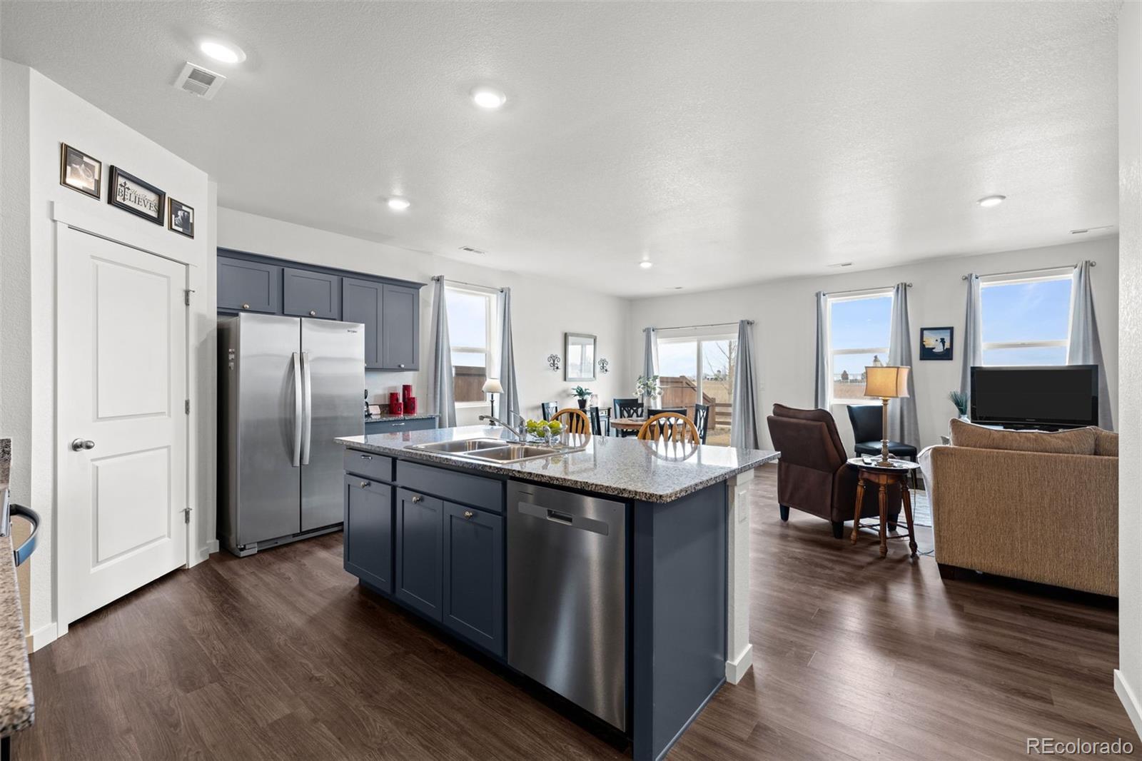 WELCOME HOME to your move-in ready beautiful 3 bedroom, 2 bath ranch located in the cozy community of Fossil Creek Ranch. As you enter through the covered porch you'll find two bedrooms and a full bath on your left, perfect for family or guests to have some privacy away from the main living area. Vinyl plank flooring leads to your open concept floor plan boasting a beautiful kitchen complete with stainless steel appliances, granite counter tops, a large kitchen island and walk-in pantry. Sliding glass doors in the dining area invite you to spend time outdoors where the backyard backs to a walking trail and open space. An abundance of windows brings the sunshine in to the entire living space. The primary bedroom includes an ensuite 3/4 bath and spacious walk-in closet. Shopping, dining and recreation areas are in close proximity with easy access to the I-25 corridor. Note: Tankless water heater and Builder provided passive radon mitigation system with outlet in attic. ***There is no HOA, however the East Fossil Creek Metropolitan District No. 2 (EFCMD2) does collect $33.33/monthly as an operations fee. There are CCR's for the EFCMD2 with some restrictions/covenants.***