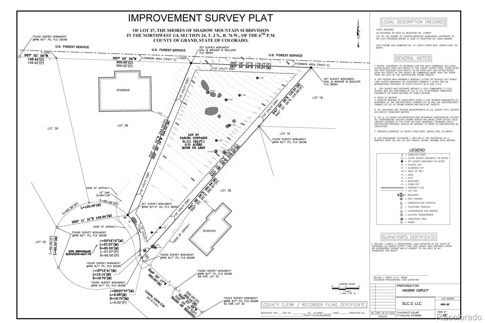 Borders Arapaho National Recreation Area Lands with all underground utilities, on a paved cul-de-sac! Main photo is View from just uphill from the Land. Walk to the top of your own hill to enjoy magnificent lake views. Seller's favorite part of owning here has been walking to the fishing canal. You are also a few blocks from hiking trails along the Colorado River and to the boat launch at the south end of Shadow Mountain Lake. Paved roads, the water tap paid and public sewer and natural gas in the road makes it easy! Topo survey is attached. This site lends itself to building over a garage for a lower level walkout. R301303 #51 GCR 6621 Shores of Shadow Mountain: Lot 37 $199,000