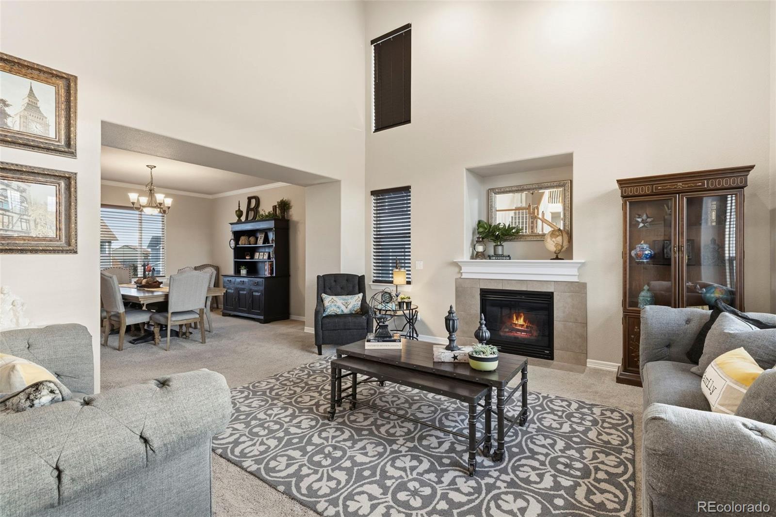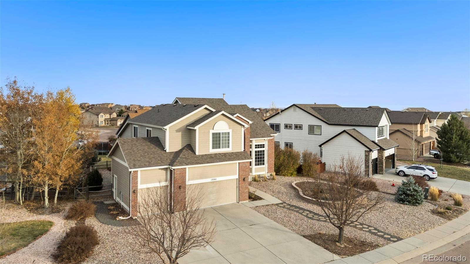 Spacious Meridian Ranch Two-Story with 5 Bedrooms, 3 Baths and 3-Car Garage! Welcome home to this beautiful and expansive two-story traditional home in Meridian Ranch offering over 4,600 total square feet, including a 3,000+ sq ft finished living area and a garden-level unfinished basement for future expansion. Designed for comfort and function, this home features five bedrooms and three full baths, including a main-level bedroom and bath—perfect for guests, home office space or multi-generational living. The grand entry opens to a formal living and dining room with soaring ceilings and a sweeping staircase. The large kitchen boasts an island with breakfast bar seating, a pantry, and an eat-in nook that flows into the spacious family room with built-ins, a cozy fireplace with new tile surround, and an 82” TV included. The main-level laundry with sink adds convenience. Upstairs, the primary suite impresses with its size, featuring a walk-in closet and a five-piece ensuite with soaking tub, separate shower, and dual vanities. Three additional bedrooms, an upper loft with storage, and another full bath with double sinks complete the upper level. Set on a nearly quarter-acre level lot, the fenced and landscaped yard offers plenty of space to relax or play. Recent updates include a new roof, new Anderson front door and rear sliding doors, Eco-B smart thermostat, and a Ring alarm system with doorbell and garage camera. Newer Washer and dryer are included. Central Vac for easy clean and Central Air to stay cool in the summer. Don't miss the 3-car garage and level driveway - plus Pikes Peak views from the front of the home. Enjoy all that Meridian Ranch has to offer—golf, parks, playgrounds, a recreation center, and easy access to shopping, dining, and both Peterson and Schriever Air Force Bases. This home combines size, updates, and community amenities for the perfect Colorado lifestyle!