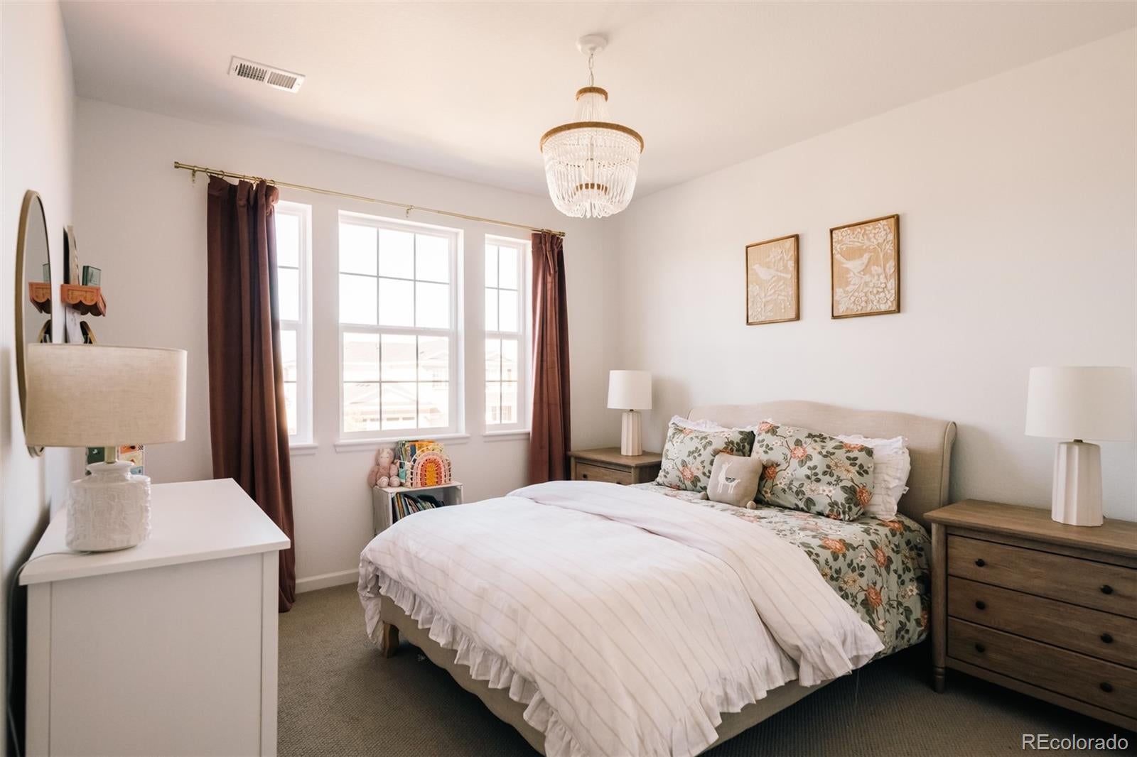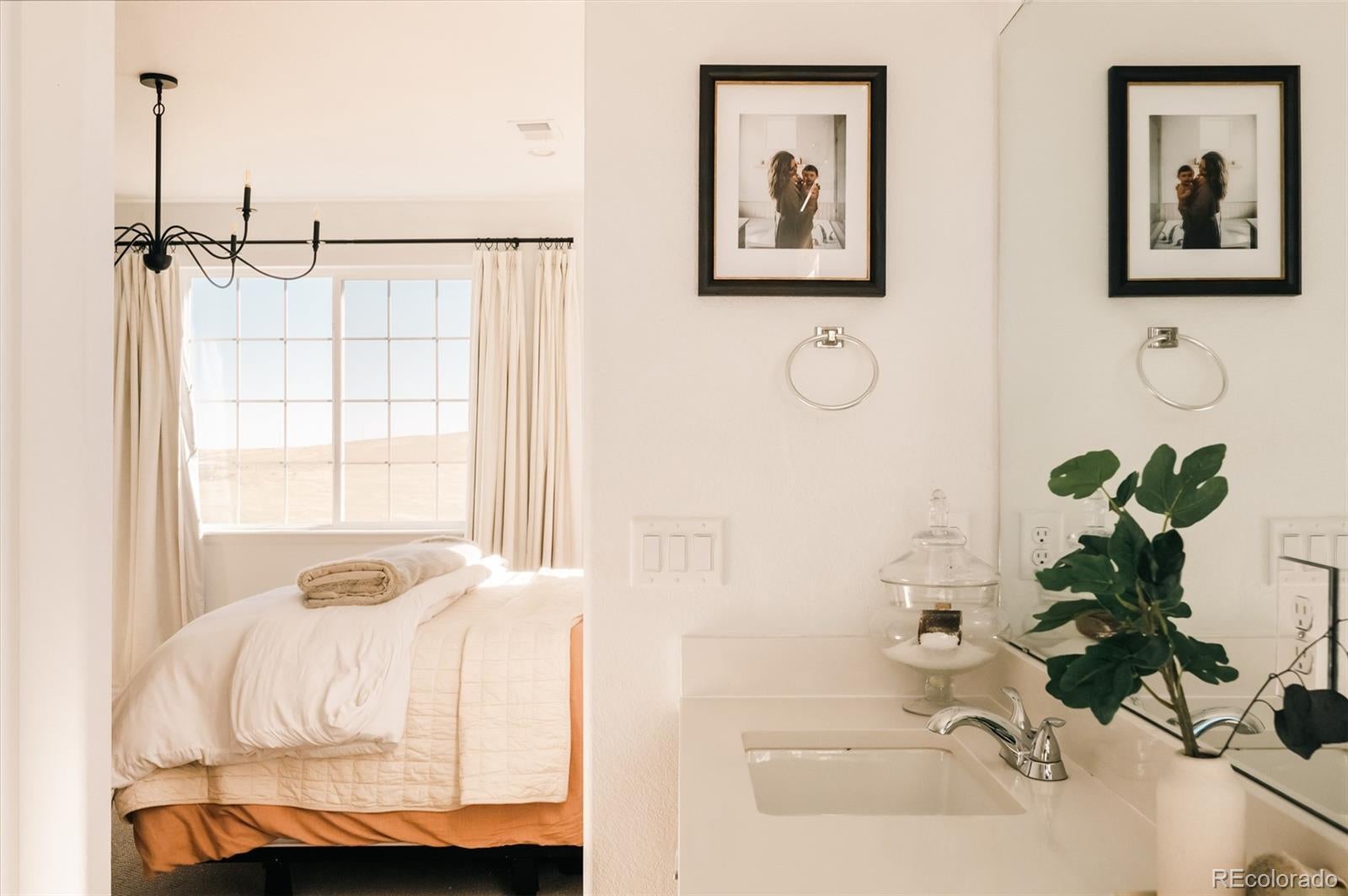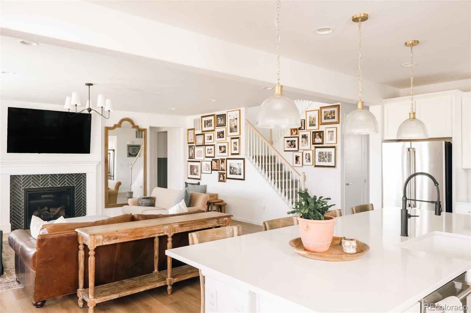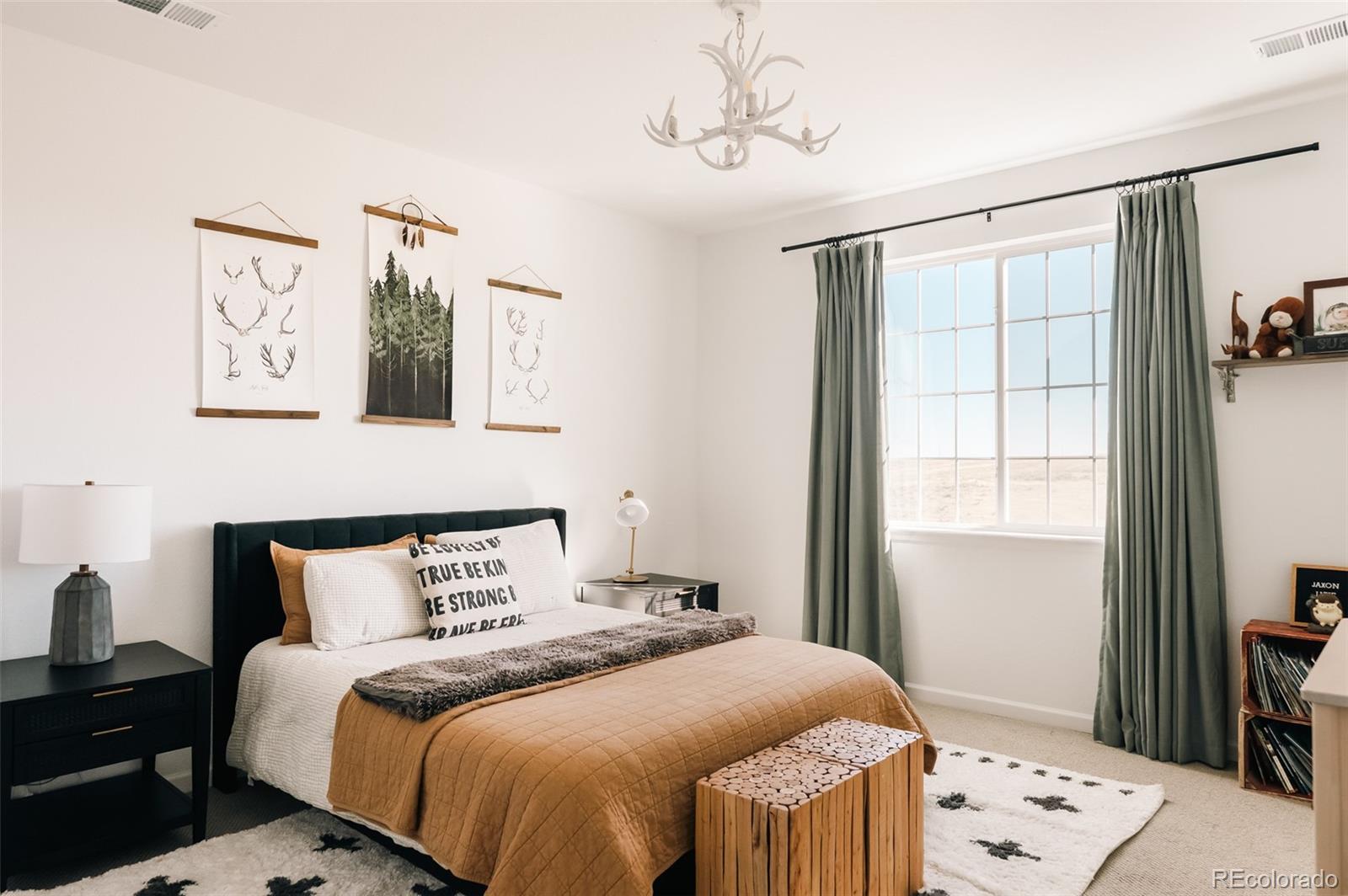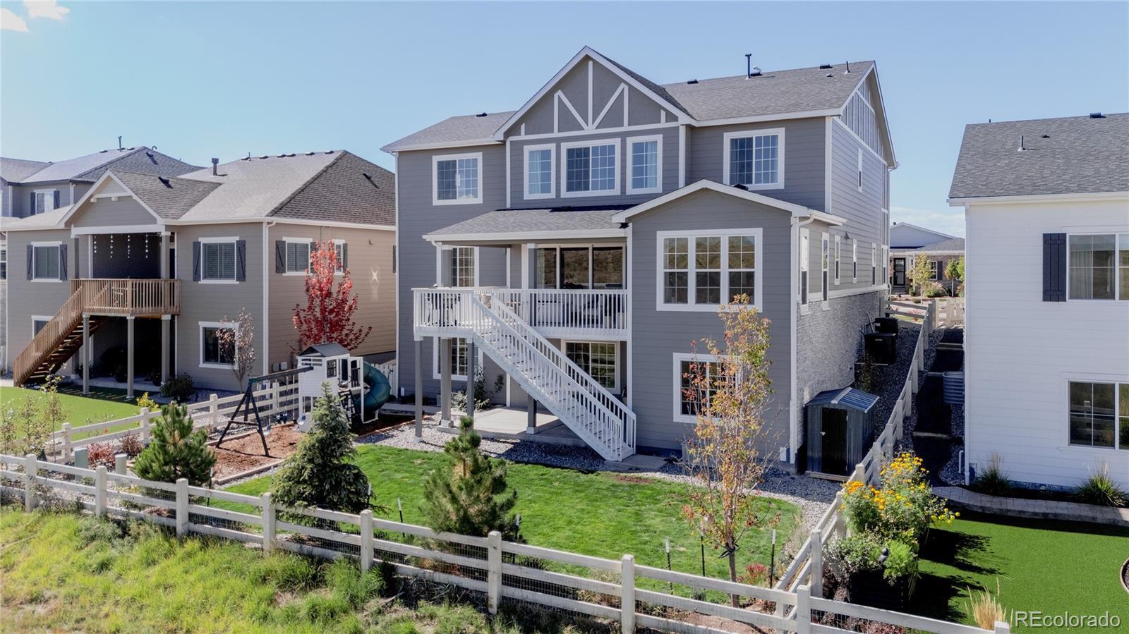 Backing to open space and steps from the Aurora Reservoir, this incredibly popular Dillon model featuring 6 bedrooms, 5 baths and a finished walkout basement is now available in the highly desired Southshore neighborhood in SE Aurora. Built with countless design upgrades, this home opens to a dedicated dining room with upgraded lighting, wide plank luxury vinyl flooring and smartly implemented butler's pantry with beverage fridge. The main living space of the home dramatically opens to vast views of pastures with frequent wildlife visitors including cows and pronghorn grazing behind the home. The kitchen offers upgraded GE Café appliances including an oversized gas range, quartz countertops, large center island with dramatic pendant lighting and gorgeous dine in sunroom with Reservoir views. The living room features upgraded 12 ft pocket sliding glass doors that open to the covered patio and upgraded gas fireplace with dramatic black herringbone tile surround. The main floor offers a guest bedroom with 3/4 bath that could also be used as home office and oversized mudroom with drop zone and laundry. Upstairs, the Primary Suite is privately removed off the large loft with pasture views and five piece bath with quartz countertops, frameless glass shower and walk in closet. Three additional bedrooms are located upstairs, one of which offers an ensuite bath while the other two share a secondary bath with dual sinks and tub/shower combo. The finished walkout basement offers a secondary living space (TV included w/theatre sound system!) and bonus room that would be perfect for a second home office, gaming room or home gym. An additional bedroom and 3/4 bath is also located in the basement. Southshore is a very special community in SE Aurora as it is the only neighborhood that offers multiple community pools, two clubhouses each with private resident gyms, a community dog park, miles of trails, parks and is in walking distance to schools in the Cherry Creek School District!