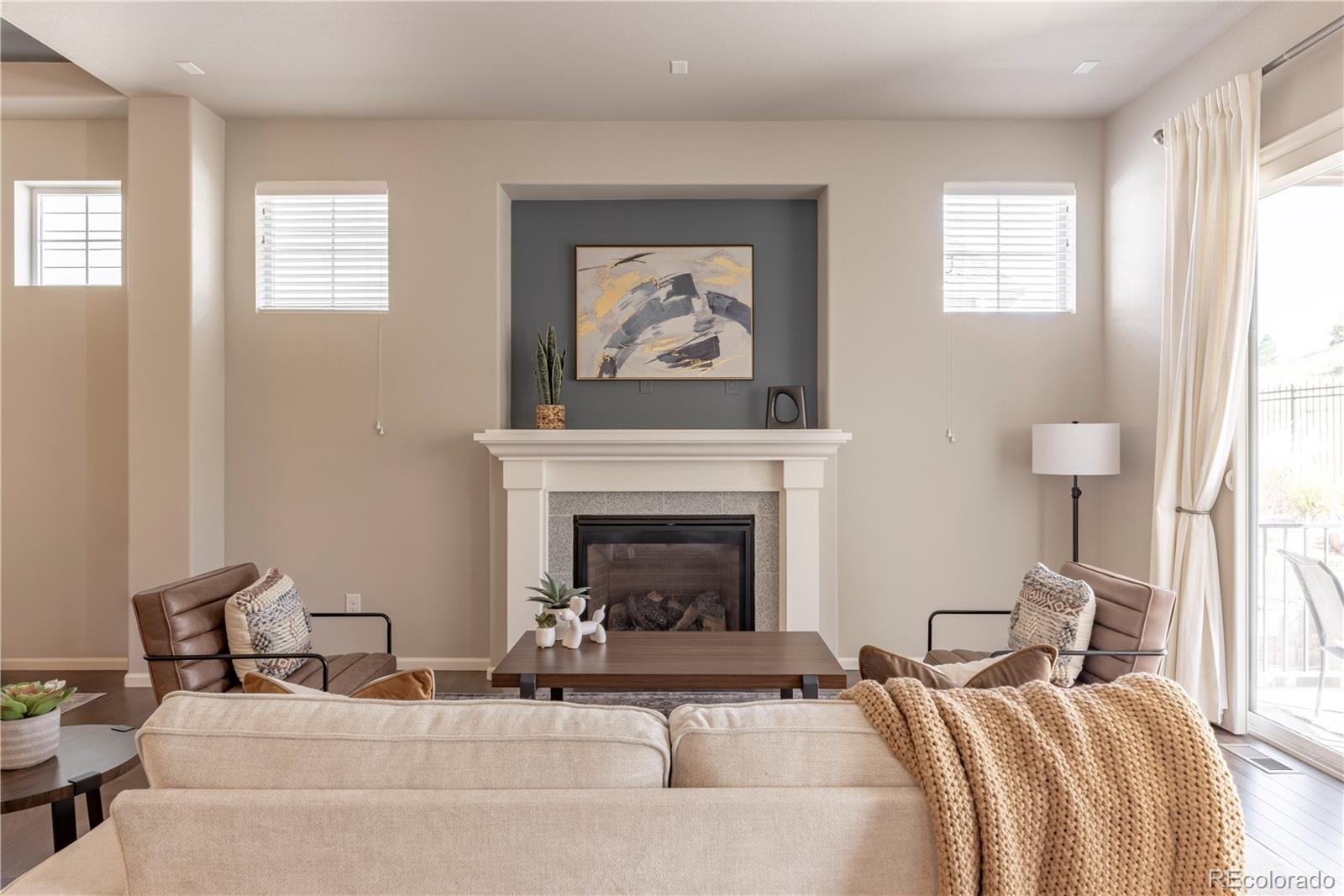 Highly desirable main floor living in this ranch style home, located on a cul de sac and backing to a greenbelt and walking path. Welcome to New Haven at The Meadows, a low maintenance community where the HOA takes care of your front lawn and landscaping, as well as snow removal of your driveway and sidewalk. The open floor plan features high ceilings, 8 foot doors, wood floors, and lots of natural light! The Primary Suite has an oversized bathroom with dual sinks, quartz counters, large shower, and huge walk in closet that leads to the oversized laundry room. A modern sliding door hosts the other 2 bedrooms and full bathroom, providing privacy and separation. The kitchen has an oversized island, quartz counters, stainless appliances, upgraded cabinets with glass doors, large pantry, tile backsplash, and a 5 burner gas cooktop. The family room has a fireplace, mantel and access to the patio, while the adjacent dining room has a coffered ceiling. Completing the main floor is an office or sun-room with a wall of windows; mud room with bench; laundry room with utility sink and cabinets, and with direct access into the Primary Suite closet; powder room with quartz counters; and foyer/entry. 2 car attached garage, covered front porch, covered back patio, low maintenance fenced, private backyard. Large unfinished basement, furnace with whole house humidifier, stubbed for future bathroom. Newer roof. Also part of the Meadows HOA -- access to the Grange and Taft House pools, plus trash and recycling pickup. Walking distance to the Meadows town center, regional hospital, shops, restaurants and more. Easy access to I-25, Downtown Castle Rock, Denver and Colorado Springs. Close to parks, trails and schools -- in nationally recognized Douglas County School District. Low maintenance living, a must see!