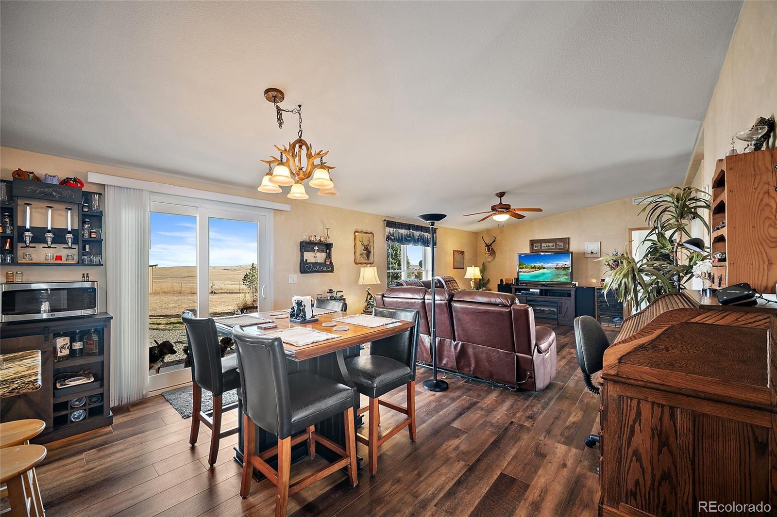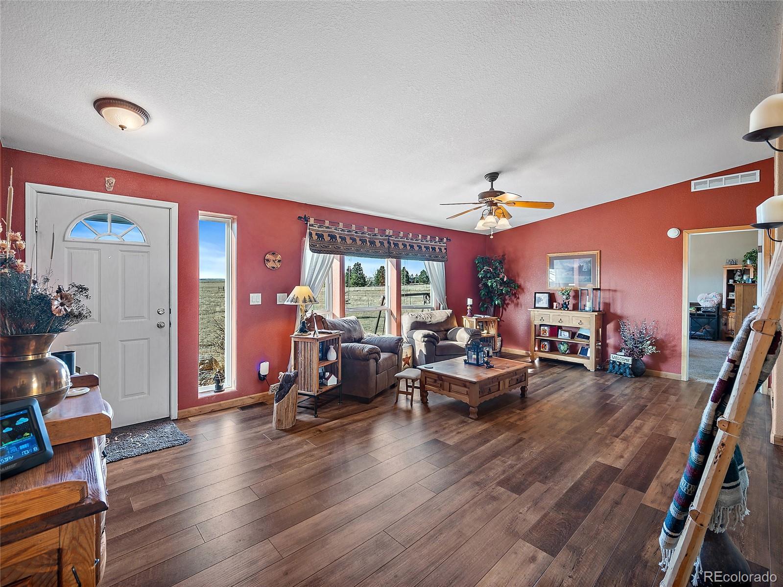 Experience the perfect blend of country living and modern convenience just east of Colorado Springs! This well maintained 4-bedroom, 3-bathroom home sits on large acreage, with expansive unobstructed mountain views that create a stunning backdrop from sunrise to sunset. Located just off a main paved road, this property offers easy access to town while still providing the peace, privacy, and open space of rural living. Step inside to find a warm, inviting layout with plenty of natural light, open concept, great room, living room, remodeled, kitchen, and spa, like master bathroom. The exterior is equally impressive, featuring attractive landscaping, a fully fenced backyard, and ample room to relax, entertain, or enjoy Colorado’s iconic scenery. Car enthusiasts, hobbyists, and RV owners will love the attached 4-car garage, plus covered RV parking, a rare and highly desirable amenity. Whether you’re looking for room to roam, plenty of room for the horses, space for your toys, or simply a quiet place to unwind, this home offers comfort, space, and Colorado living.