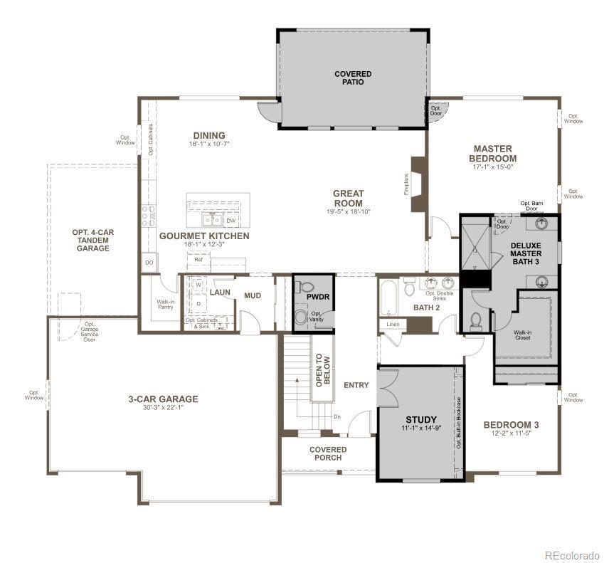 **!!AVAILABLE NOW/MOVE IN READY!!**SPECIAL FINANCING AVAILABLE**LAST MELODY IN CRYSTAL VALLEY**This Melody is waiting to impress with the convenience of its ranch-style layout along with designer finishes throughout. The main floor offers a study and a generous secondary bedroom with a shared bath. The open layout leads you to the back of the home where a beautiful gourmet kitchen awaits and features a quartz center island, walk-in pantry and stainless steel appliances. Beyond, the open dining room flows into the welcoming great room with a fireplace and doors that open into the large covered patio. The nearby primary suite showcases a spacious walk-in closet and a private deluxe bath. A convenient laundry and mud room complete the main level. If that wasn’t enough, this exceptional home includes a finished basement that boasts a wide-open, versatile rec room with a stunning wet bar along with two basement bedrooms that have walk-in closets and a shared bath.