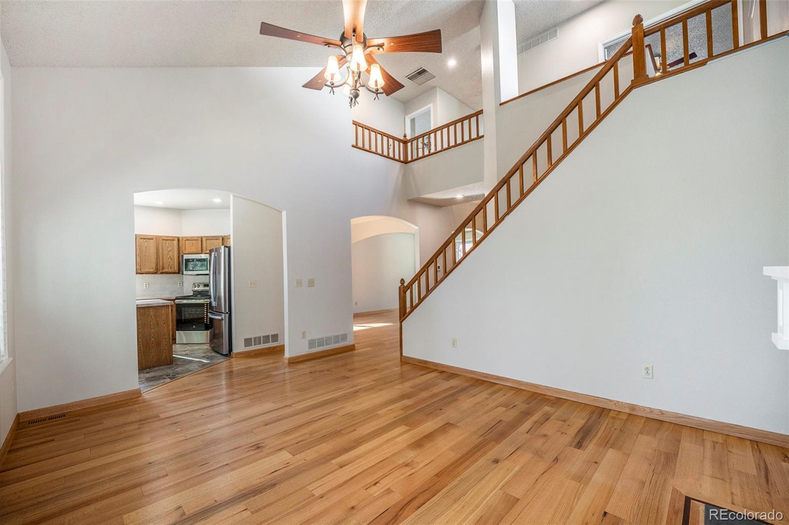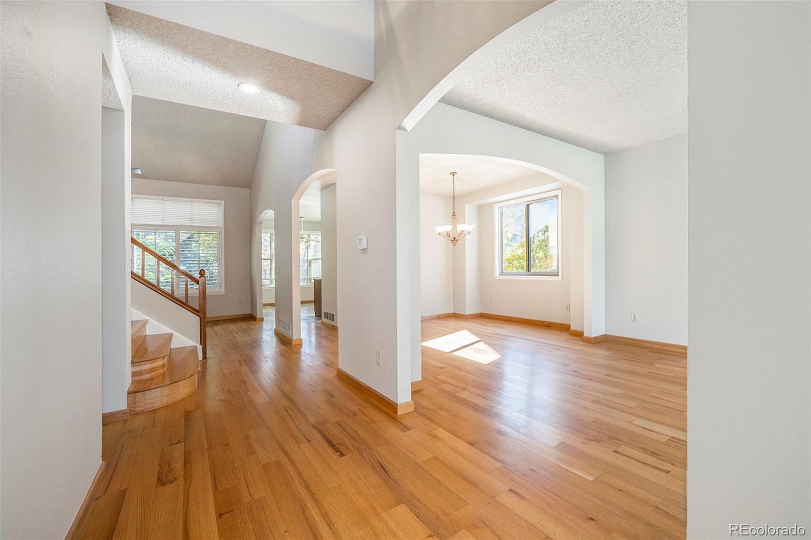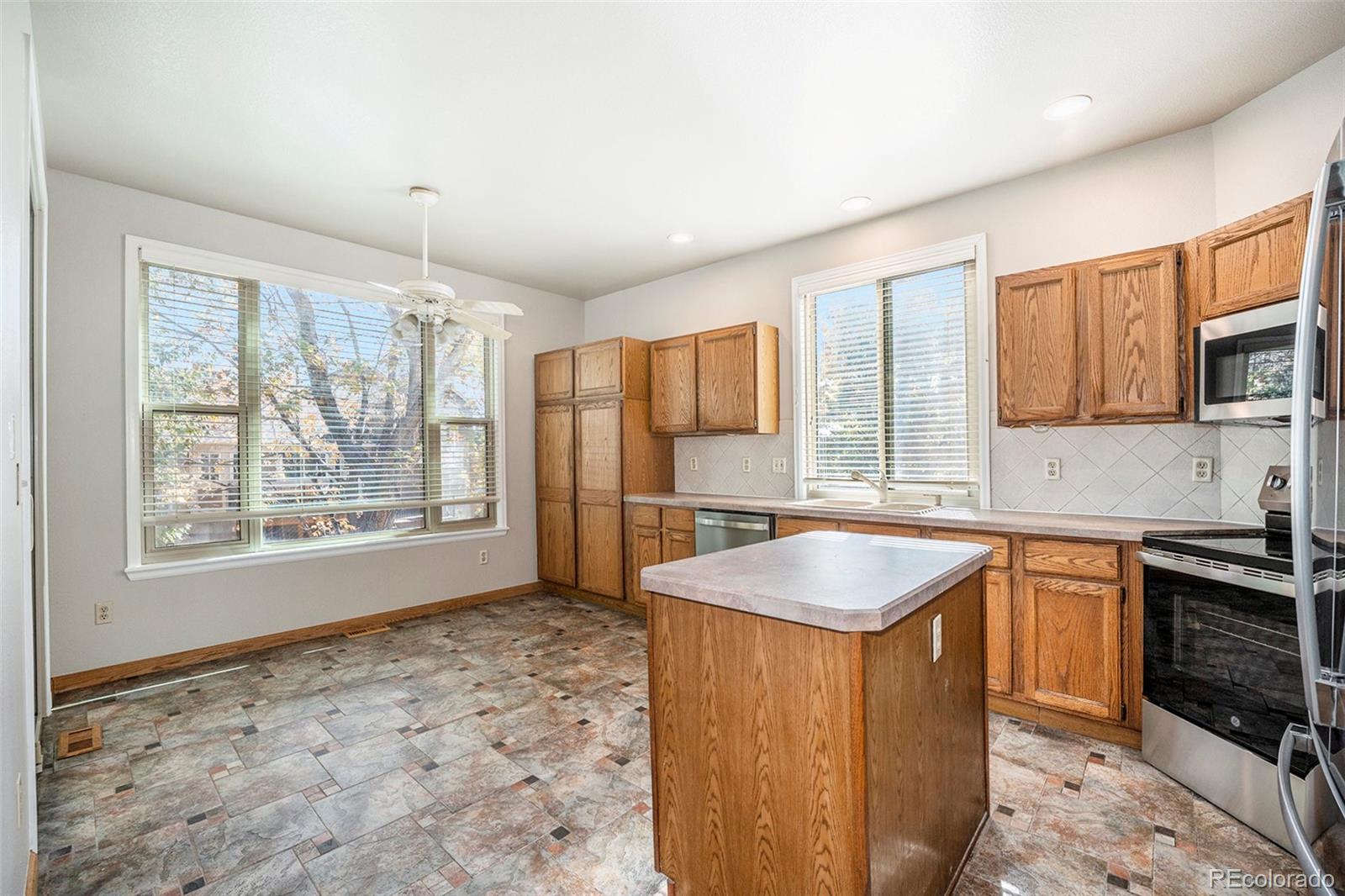 Welcome to this charming 5-bedroom, 3-bathroom home in the highly desired Green Mountain neighborhood. Step inside to find all-new interior paint, new carpet, and brand-new stainless steel appliances, giving the home a fresh and move-in-ready feel. The open floor plan is filled with natural light and features hardwood floors throughout the main level. A main-floor bedroom and remodeled ¾ bath offer ideal flexibility for guests or a home office. The spacious great room off the kitchen boasts vaulted ceilings and a cozy gas fireplace, creating a warm and inviting atmosphere. Convenient main-floor laundry adds everyday ease. Upstairs, you’ll find two large bedrooms connected by an updated Jack-and-Jill bathroom, plus a primary suite with a walk-in closet and a five-piece bath for the perfect private retreat. The finished basement provides additional living space with a family room, fourth bedroom, and utility/storage area. Step outside to your private backyard, featuring a large deck, mature trees, and plenty of space for year-round entertaining or relaxing. Two car garage plus an extended side driveway for more space. Just minutes from Green Mountain, outdoor adventure is right at your doorstep. Explore all the nearby trails or spend the day at Bear Creek Lake Park—a 2,600-acre outdoor paradise for paddle boarding, camping, horseback riding, and more. Check out the video link; https://listings.nextdoorphotos.com/vd/218594531