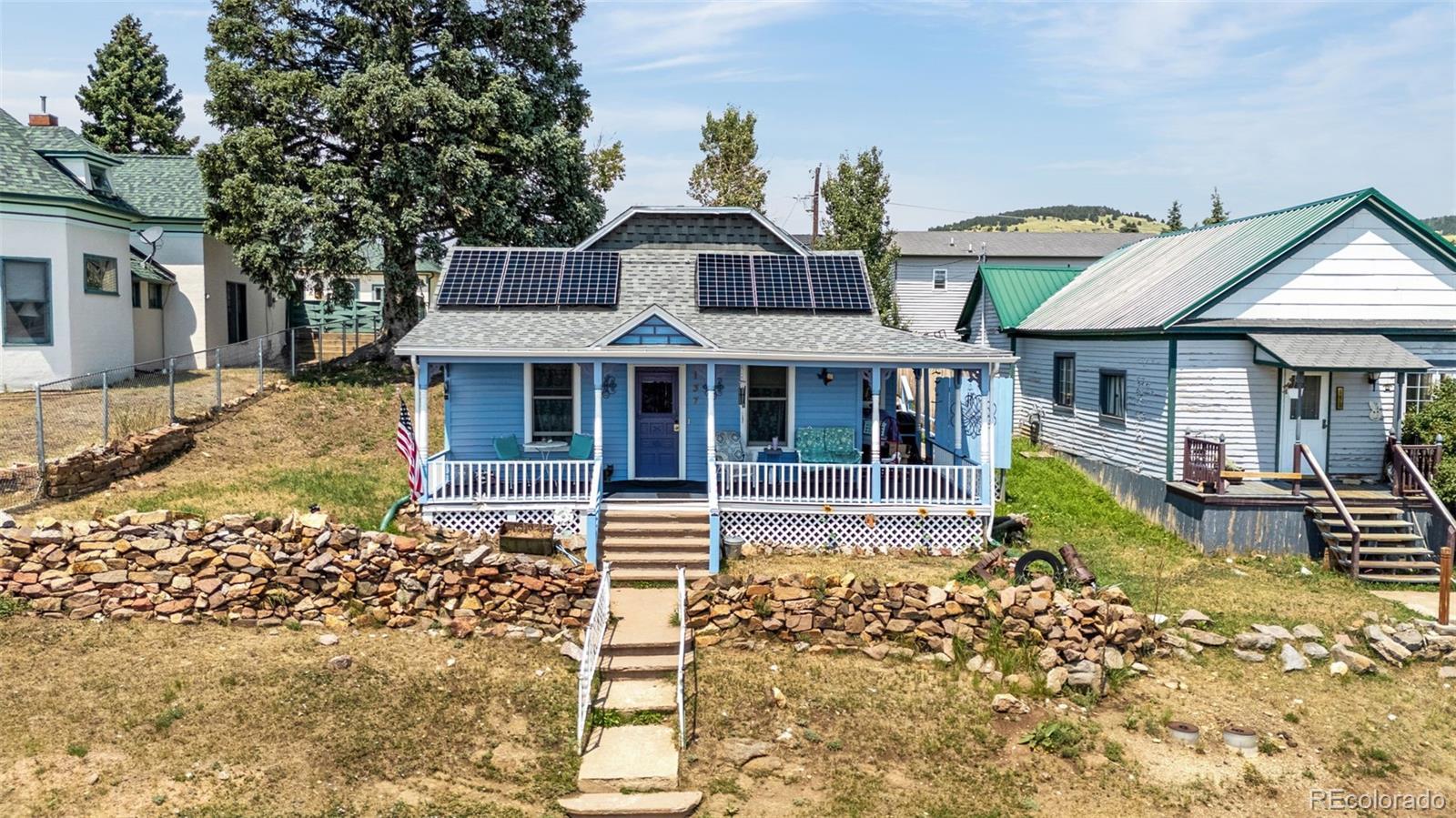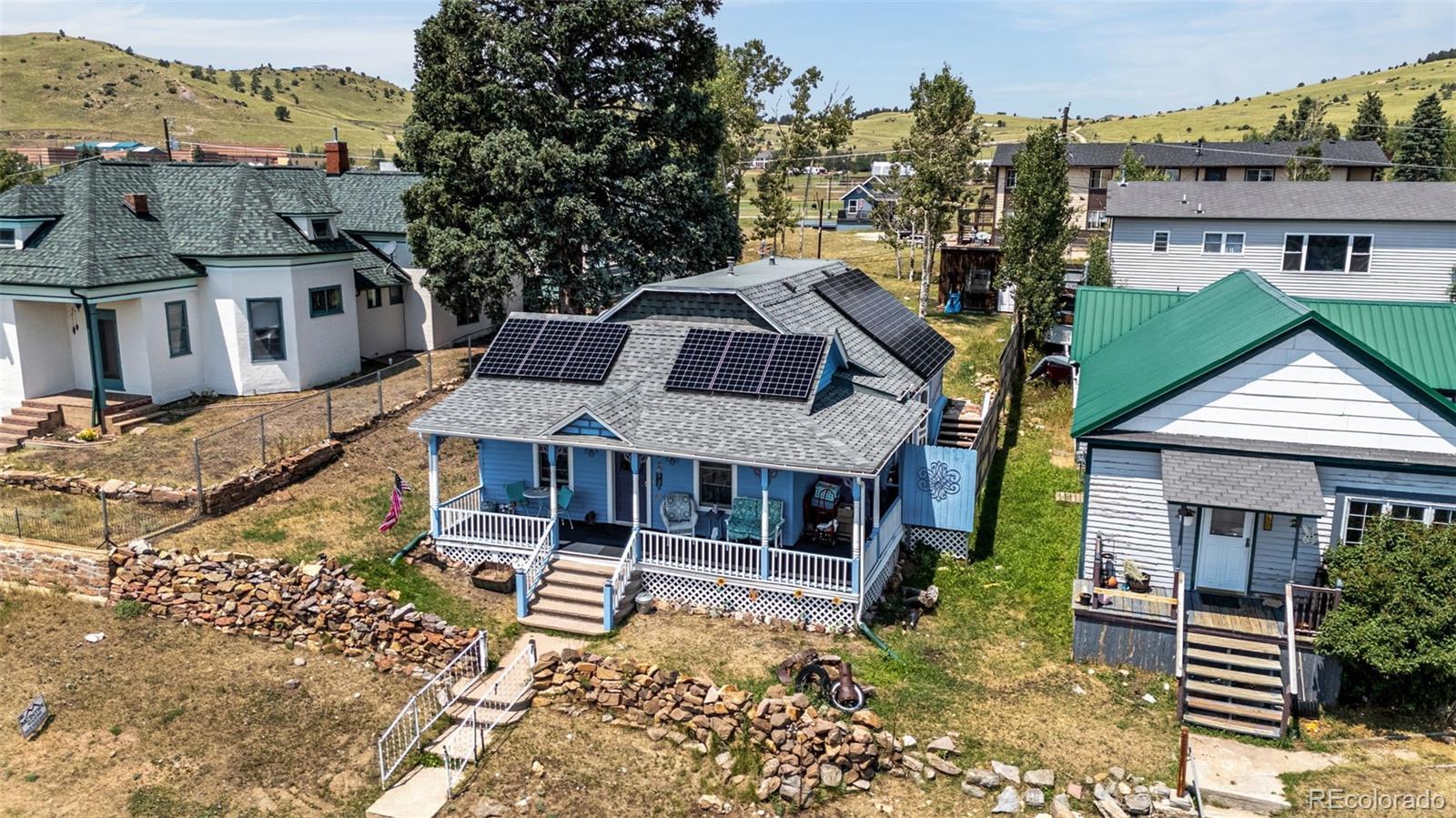 Welcome to your very own slice of Cripple Creek charm! This well-maintained 2-bedroom, 1-bathroom ranch-style home is the perfect mountain retreat or full-time residence. Nestled on a spacious lot, you’ll love relaxing on the wrap-around porch while enjoying visits from the town’s famous donkey herd and curious deer that wander by. Inside, you'll find a cozy living space warmed by a pellet stove, a functional kitchen with a generous pantry, and new windows that let the Colorado sunshine pour in. The home also boasts solar power for energy efficiency and a spacious backyard ready for your garden, fire pit, or furry friends. Whether you're looking for a weekend getaway, rental opportunity, or forever home, this little charmer is it. Write to Jessica Schwab