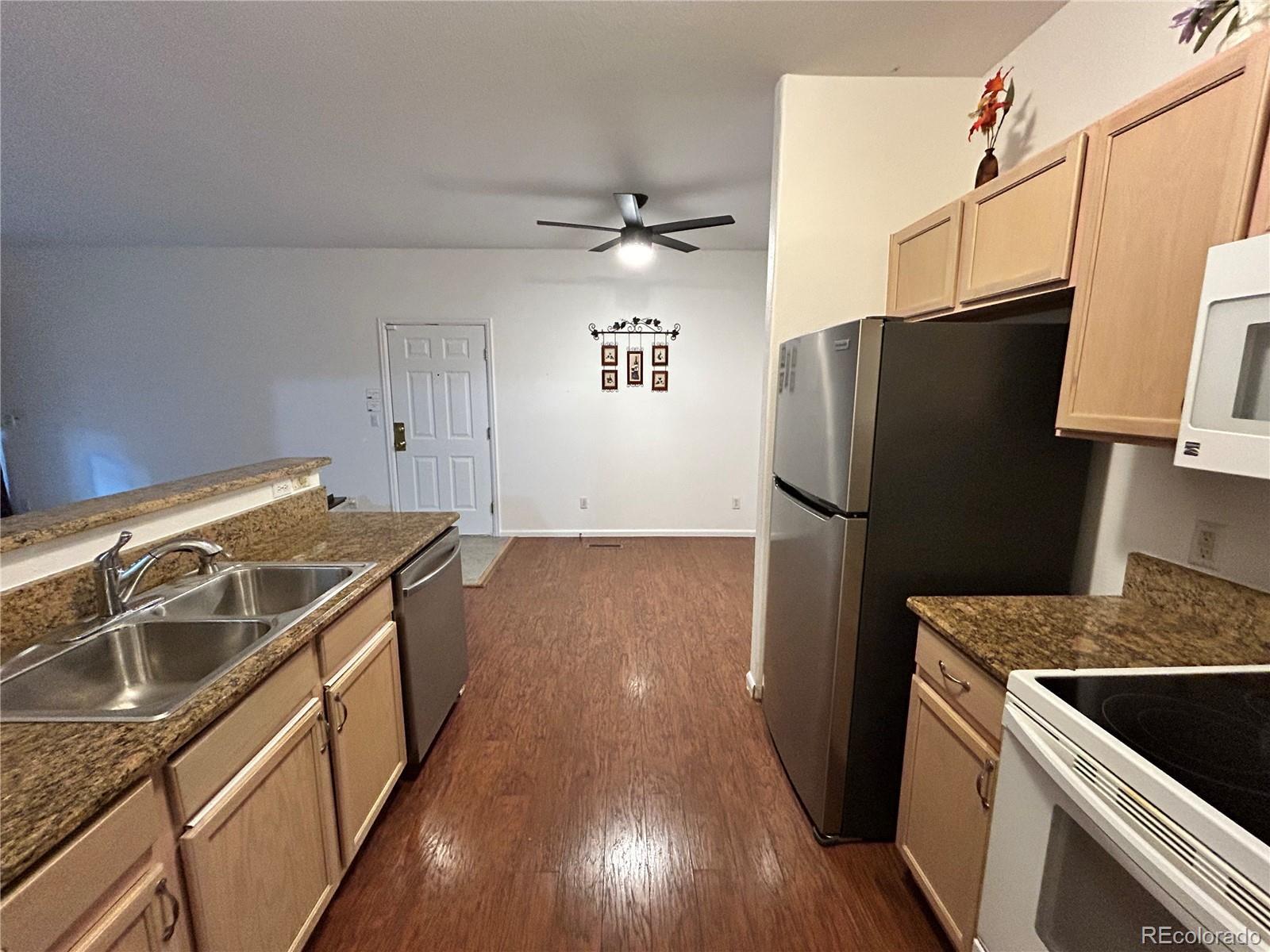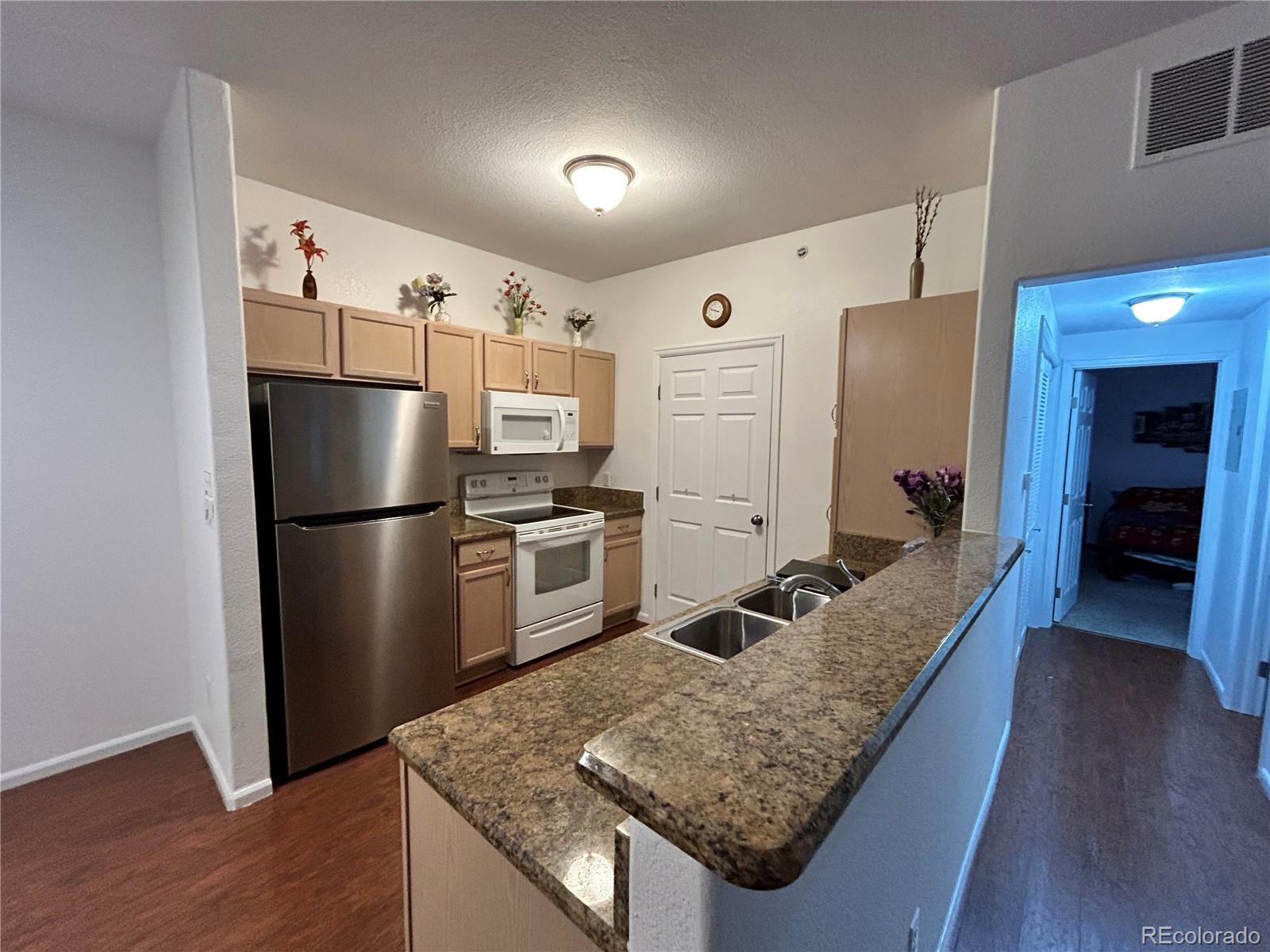 Welcome home to this main-floor Westminster condo offering comfort, convenience, and value! With 1,039 square feet, this home lives large thanks to its high ceilings and abundant natural light throughout. The inviting living room features a cozy fireplace and sliding glass doors that open to Patio #1, perfect for relaxing or entertaining. The dining area showcases laminate flooring and flows seamlessly into the kitchen, which boasts granite countertops, ample cabinetry, and plenty of prep space for cooking. The first bedroom offers carpet, and a door to the ¾ bathroom which also connects to the hallway for guest convenience. The primary suite is a true retreat with a walk-in closet, sliding doors to Patio #2, and an updated en-suite bathroom featuring laminate flooring. The laundry area is ideally located in the hallway between the two bedrooms for easy access. Enjoy main-floor living and the added bonus of a separate storage closet just steps away from the front door on the main level of the building and a deeded carport parking space. This inviting home combines practicality and style in a desirable Westminster location—and with its attractive price, it’s poised to sell quickly. Don’t miss this exceptional opportunity!