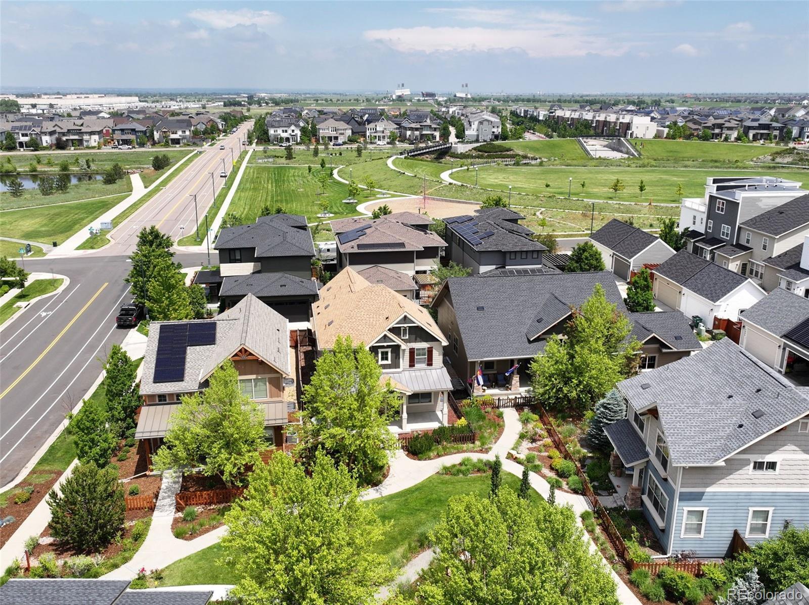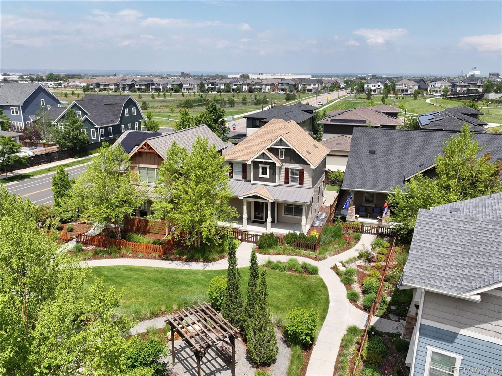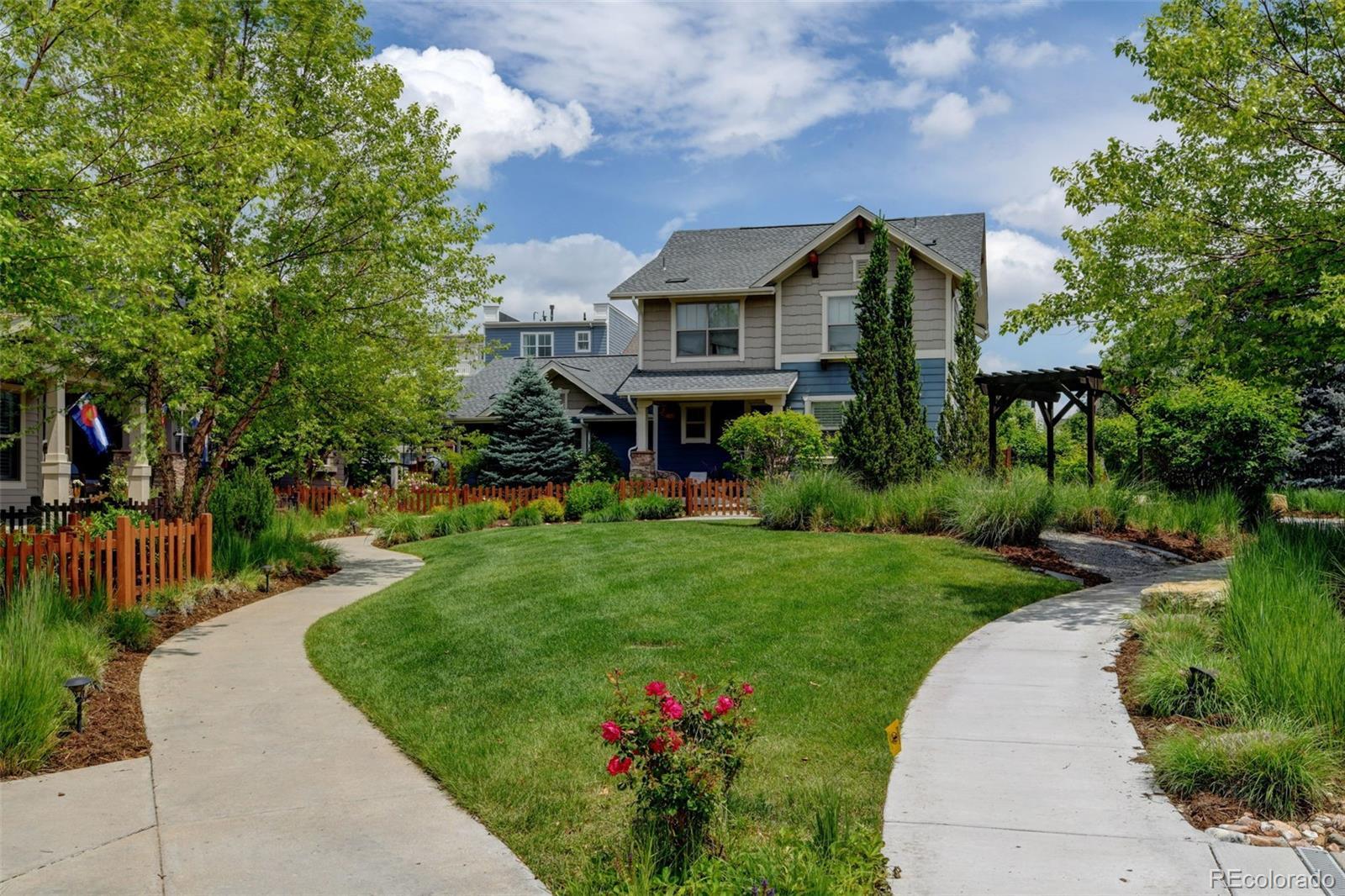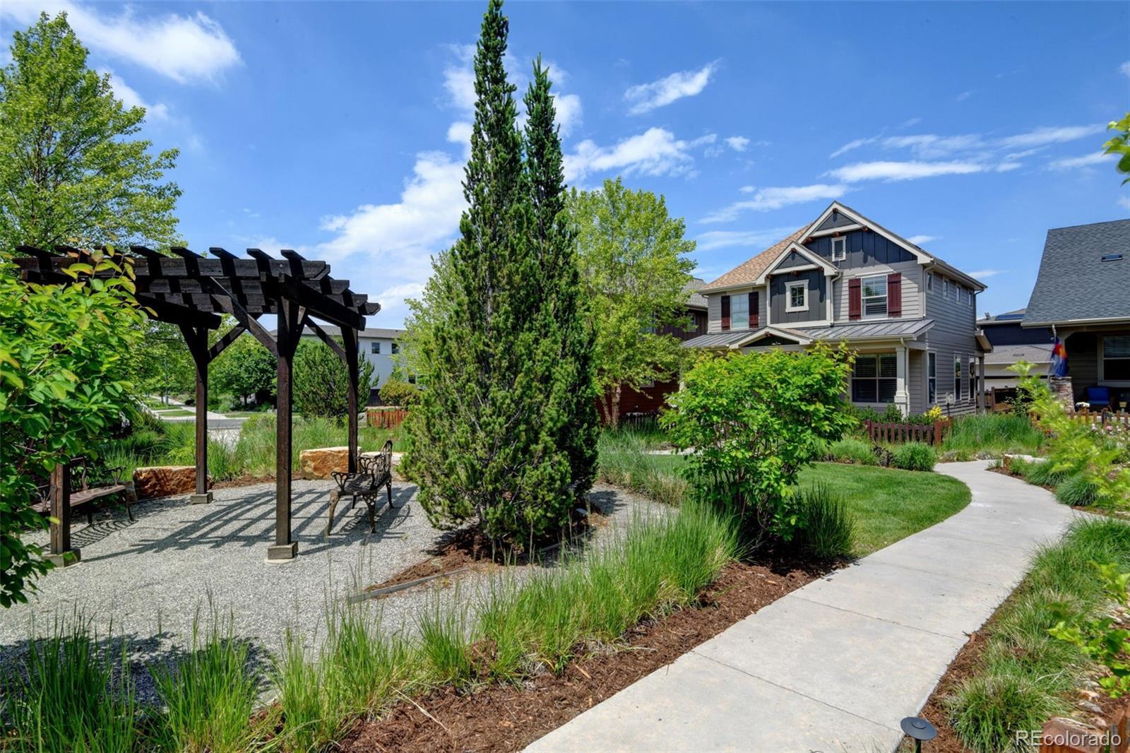 This rare Wonderland Courtyard home, in popular Northfield, is privately tucked away in a lush courtyard, and just steps from Prairie Meadows Park and a short walk to the Shops at Northfield. (Trader Joes, Lifetime, Whole Foods and Wayfair are coming soon to the area). This home is situated on a private pocket park with lush green grass and a gazebo gathering area. The home has classic and timeless finishes throughout, including solid oak flooring, gray-tone cabinetry, and white plantation shutters. The kitchen is open to the living room and dining room and features stainless steel appliances, including a gas cooktop, undercabinet lighting, quartz and slab granite countertops, and a large center island with bar seating. This home has the ideal floor plan with 3 sizable bedrooms and 2 full bathrooms upstairs, plus an open loft that provides valuable work-from-home or family play space. The primary suite is an oasis with mountain views, a vaulted ceiling, a walk-in closet with Elfa built-ins, and a 5-piece en-suite bathroom featuring a Euro-glass shower surround, quartz countertops, and a deep soaking tub. The basement in this home has been fully finished and is complete with a movie theater, 4th bedroom, 4th bathroom, and 3 egress windows for tons of light. The home is situated on a lot that lives large with a fully fenced front yard landscaped with gardens and a welcoming covered front porch. The backyard has low-maintenance turf complete with a golf putting hole and an extended paver patio. There is an attached two-car garage for plenty of space for vehicles and gear storage. Additional features include a new roof, new exterior paint, and new window treatments. It's move-in ready and ready to go!