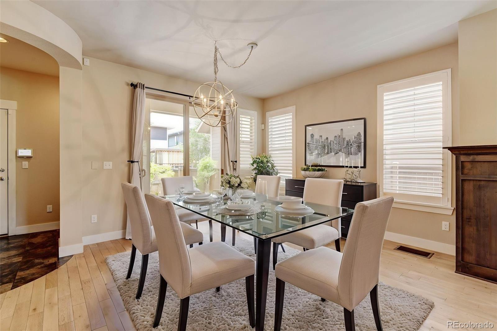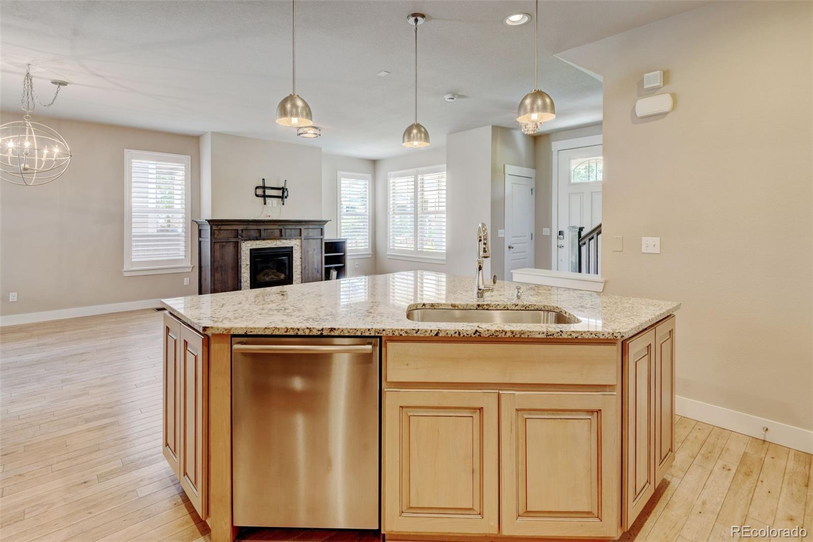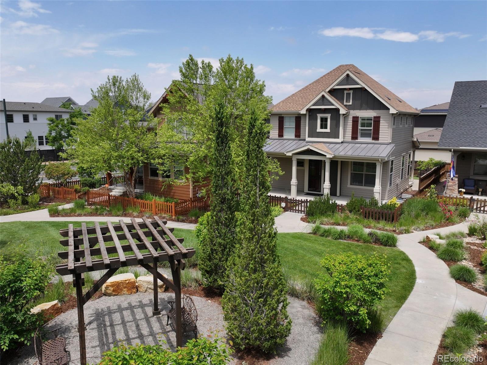 This rare Wonderland Courtyard home, in popular Northfield, is privately tucked away in a lush courtyard, and just steps from Prairie Meadows Park and a short walk to the Shops at Northfield. (Trader Joes, Lifetime, Whole Foods and Wayfair are coming soon to the area). This home is situated on a private pocket park with lush green grass and a gazebo gathering area. The home has classic and timeless finishes throughout, including solid oak flooring, gray-tone cabinetry, and white plantation shutters. The kitchen is open to the living room and dining room and features stainless steel appliances, including a gas cooktop, undercabinet lighting, quartz and slab granite countertops, and a large center island with bar seating. This home has the ideal floor plan with 3 sizable bedrooms and 2 full bathrooms upstairs, plus an open loft that provides valuable work-from-home or family play space. The primary suite is an oasis with mountain views, a vaulted ceiling, a walk-in closet with Elfa built-ins, and a 5-piece en-suite bathroom featuring a Euro-glass shower surround, quartz countertops, and a deep soaking tub. The basement in this home has been fully finished and is complete with a movie theater, 4th bedroom, 4th bathroom, and 3 egress windows for tons of light. The home is situated on a lot that lives large with a fully fenced front yard landscaped with gardens and a welcoming covered front porch. The backyard has low-maintenance turf complete with a golf putting hole and an extended paver patio. There is an attached two-car garage for plenty of space for vehicles and gear storage. Additional features include a new roof, new exterior paint, and new window treatments. It's move-in ready and ready to go!
