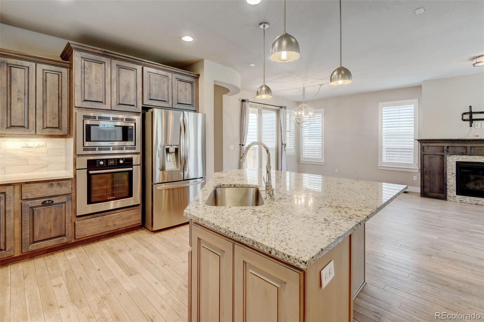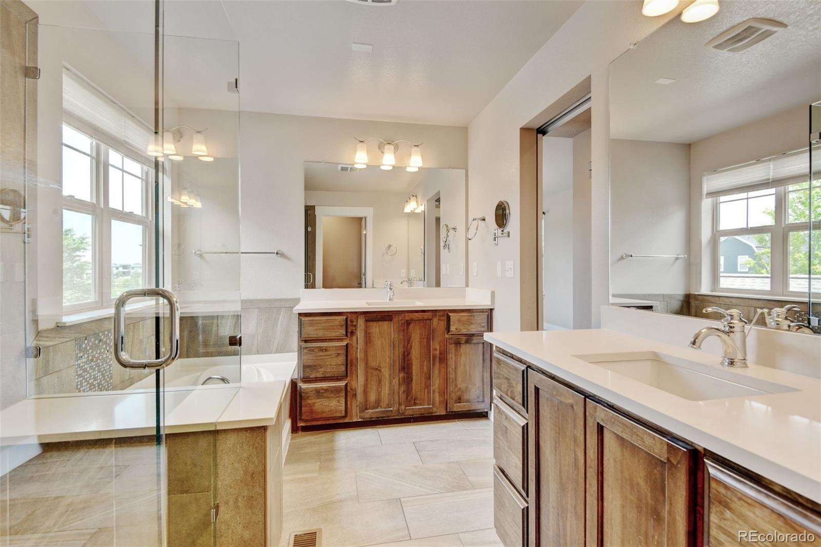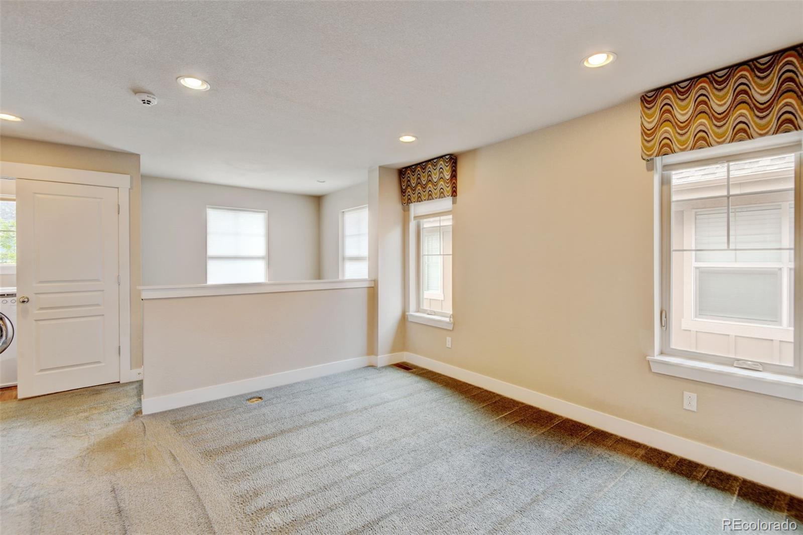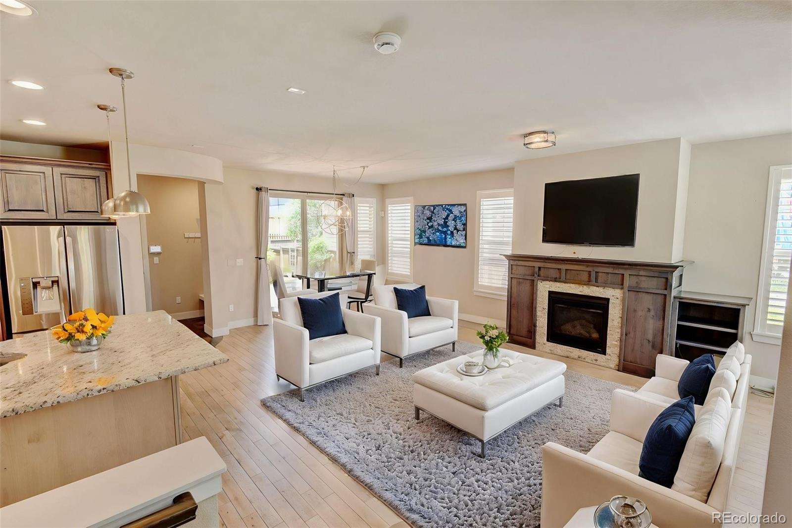 This rare Wonderland Courtyard home, in popular Northfield, is privately tucked away in a lush courtyard, and just steps from Prairie Meadows Park and a short walk to the Shops at Northfield. (Trader Joes, Lifetime, Whole Foods and Wayfair are coming soon to the area). This home is situated on a private pocket park with lush green grass and a gazebo gathering area. The home has classic and timeless finishes throughout, including solid oak flooring, gray-tone cabinetry, and white plantation shutters. The kitchen is open to the living room and dining room and features stainless steel appliances, including a gas cooktop, undercabinet lighting, quartz and slab granite countertops, and a large center island with bar seating. This home has the ideal floor plan with 3 sizable bedrooms and 2 full bathrooms upstairs, plus an open loft that provides valuable work-from-home or family play space. The primary suite is an oasis with mountain views, a vaulted ceiling, a walk-in closet with Elfa built-ins, and a 5-piece en-suite bathroom featuring a Euro-glass shower surround, quartz countertops, and a deep soaking tub. The basement in this home has been fully finished and is complete with a movie theater, 4th bedroom, 4th bathroom, and 3 egress windows for tons of light. The home is situated on a lot that lives large with a fully fenced front yard landscaped with gardens and a welcoming covered front porch. The backyard has low-maintenance turf complete with a golf putting hole and an extended paver patio. There is an attached two-car garage for plenty of space for vehicles and gear storage. Additional features include a new roof, new exterior paint, and new window treatments. It's move-in ready and ready to go!