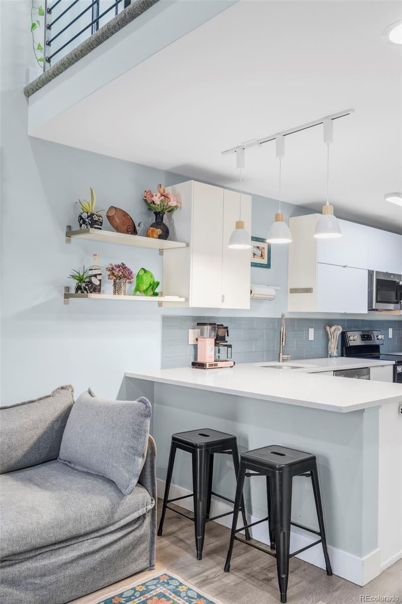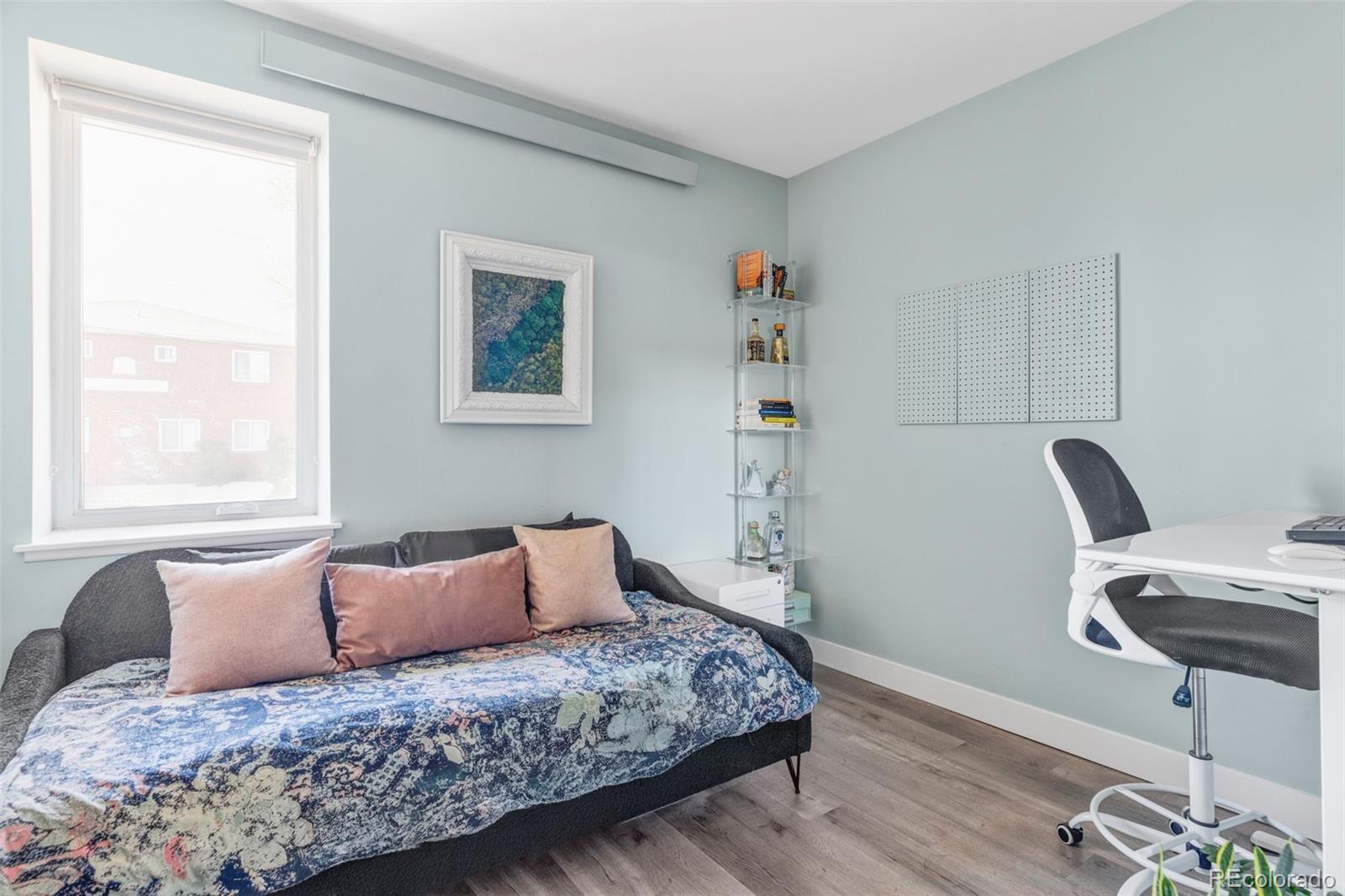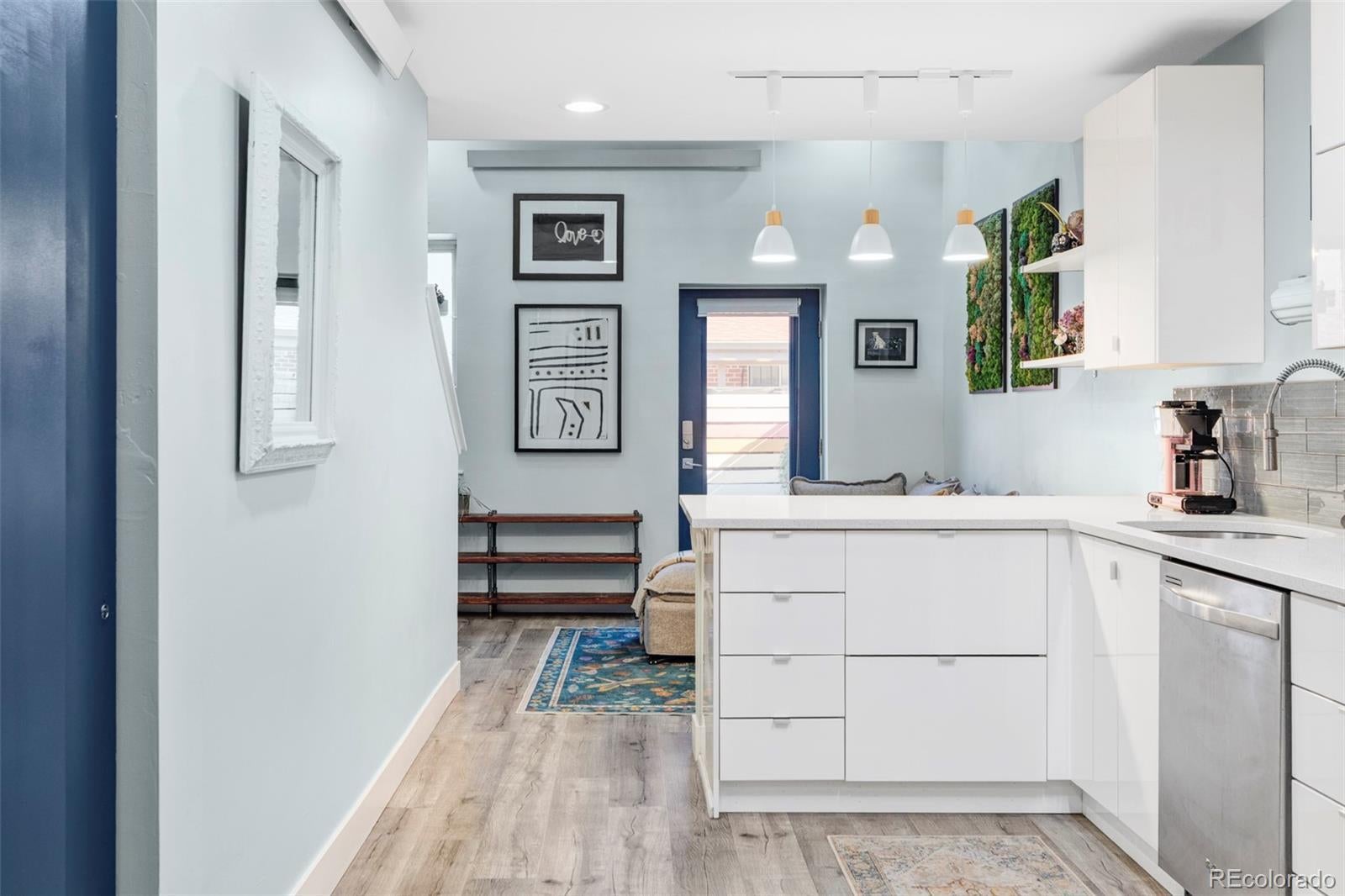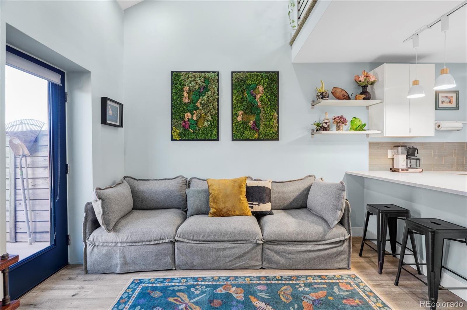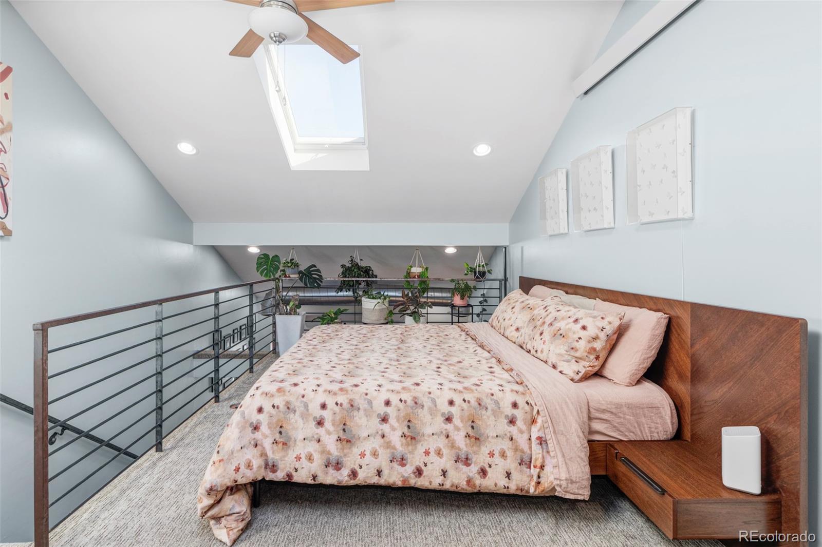 Inviting Park Hill charm meets modern ease in this stylishly updated residence, offering turnkey living in a coveted location. A bright, open living area flows seamlessly into a sleek kitchen appointed with stainless steel appliances, crisp all-white cabinetry, a chic tiled backsplash and a peninsula ideal for casual dining. The versatile secondary bedroom complements an airy upper-level loft featuring vaulted ceilings, skylights and a generous walk-in closet — perfect as a primary retreat or inspiring creative retreat. A serene bath features neutral tiles and a walk-in shower. Fresh paint, a new evaporative cooler and thoughtful upgrades enhance comfort, while the fenced front yard and turf-lined backyard provide plenty of space for outdoor living and entertaining. Two deeded off-street parking spaces offer daily convenience. With a community garden just two blocks away and the nearby golf course poised for exciting future redevelopment, this is Park Hill living at its most inspiring. Please be sure to read the letter from the seller describing the most attractive features of this home and neighborhood.