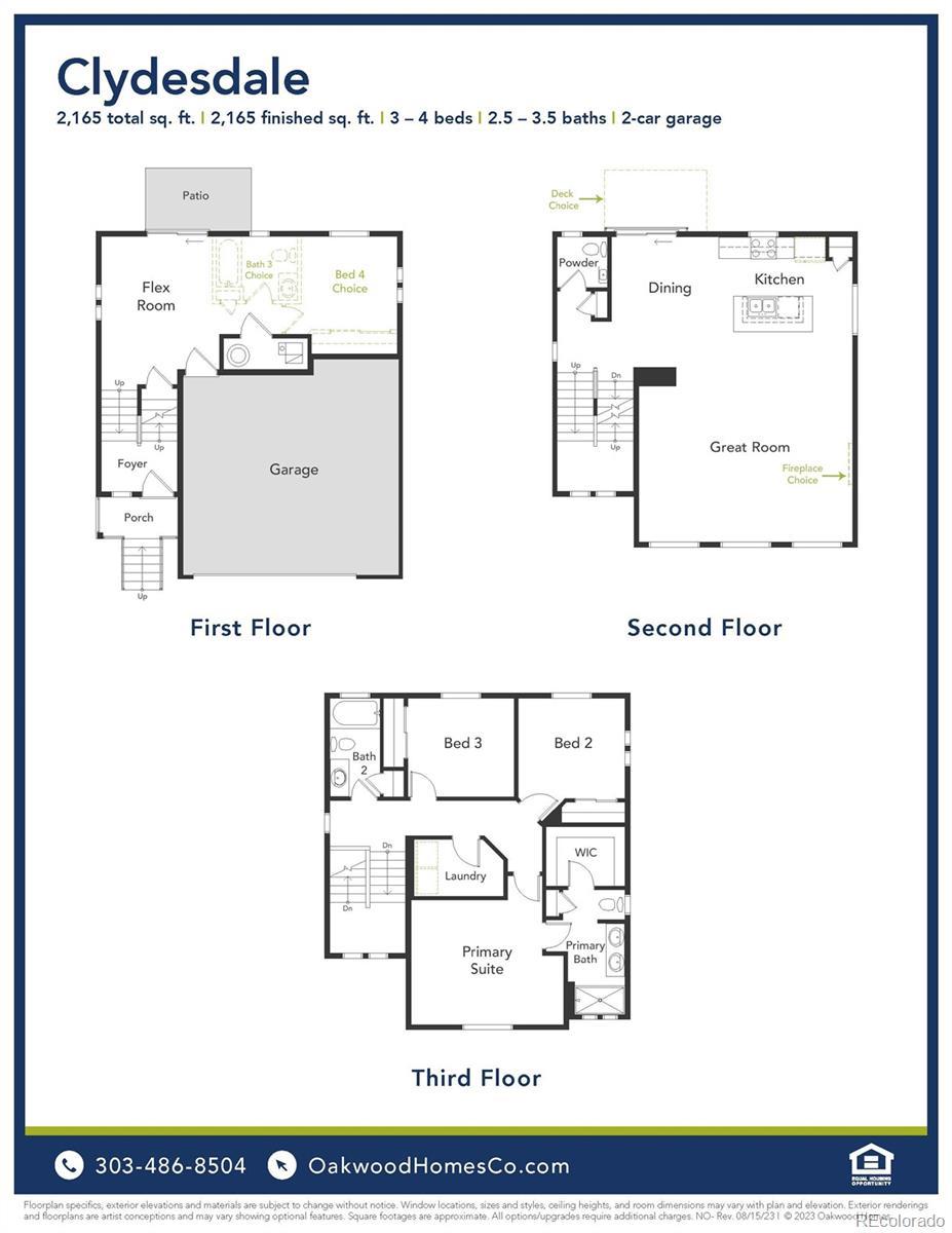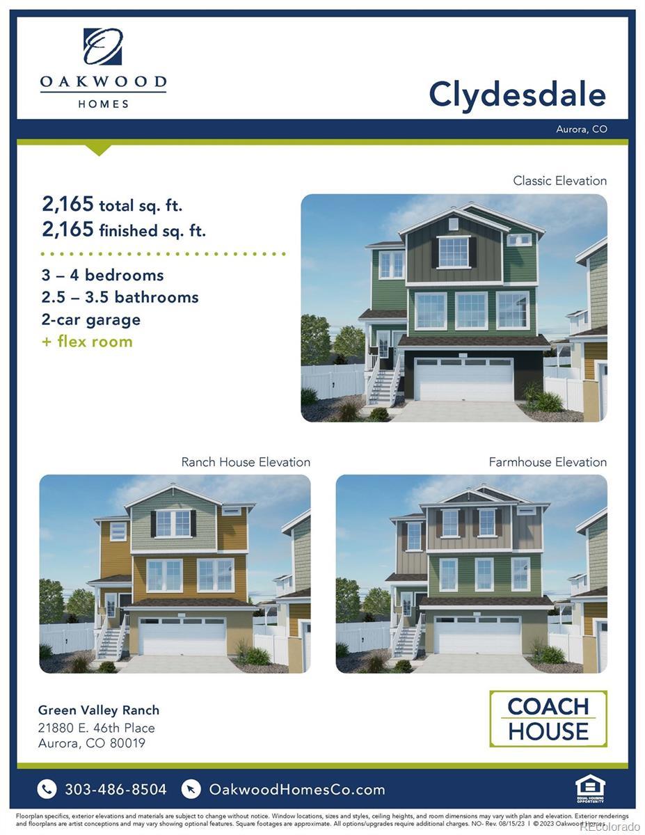 Welcome to the Clydesdale floorplan by Oakwood Homes! Open floorplan, 2,165 square feet, 3-4 bedrooms, 2.5-3.5 bathroom, 2 car garage, flex room, porch, patio, foyer, great room, dining room, island at kitchen, primary suite with walk in closet, upstairs laundry, energy efficient appliances, fenced backyard. These homes are built in private cul-de-sacs. *THIS IS A REPRESENTATION OF WHAT CAN BE BUILT*