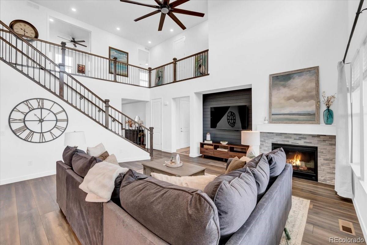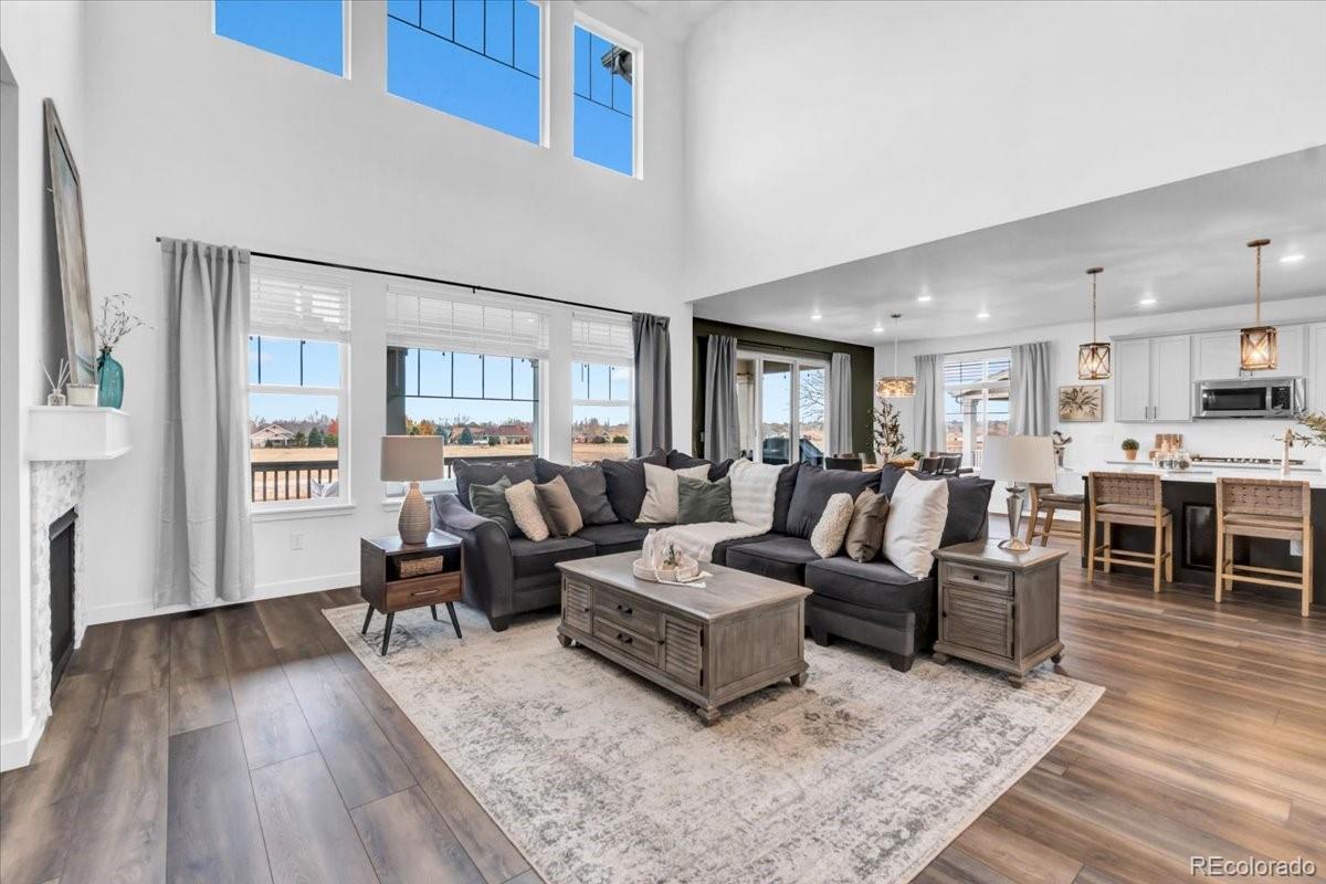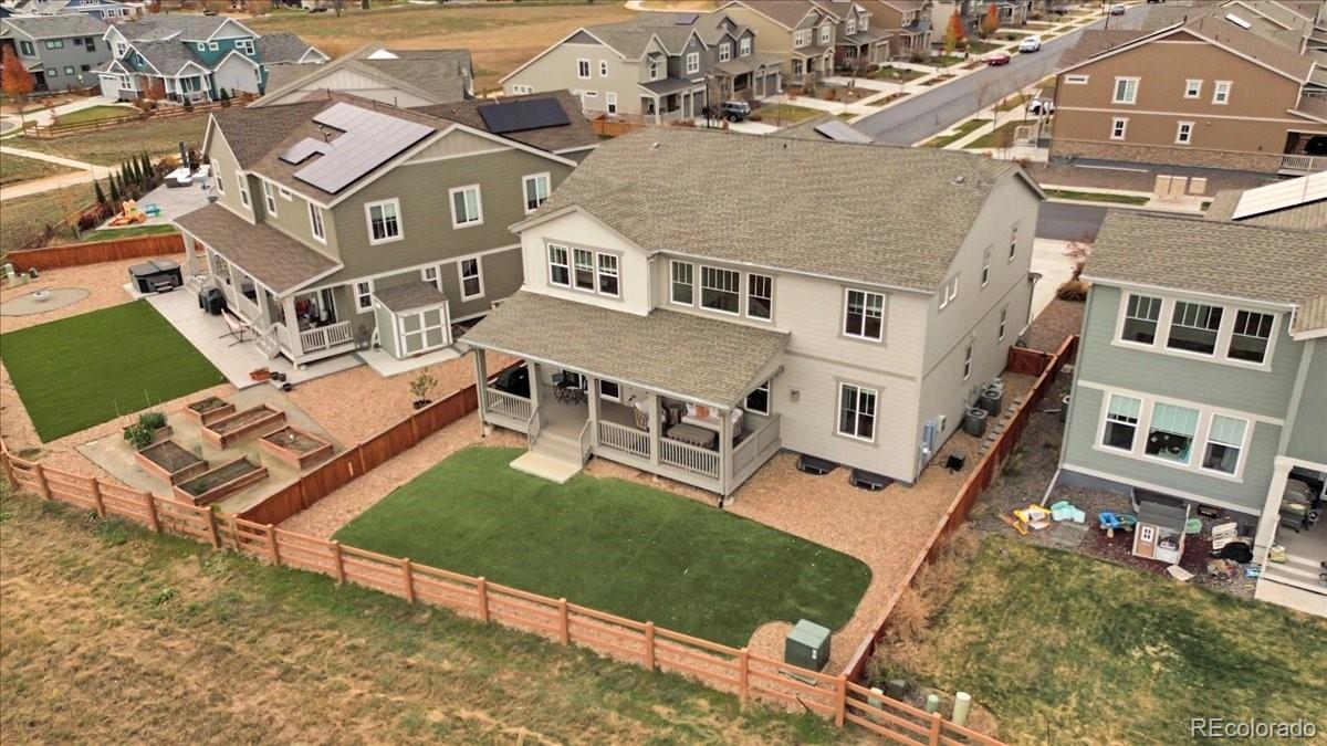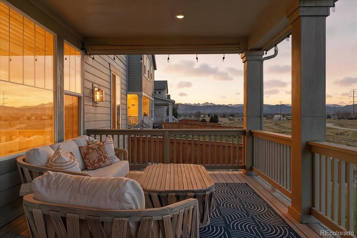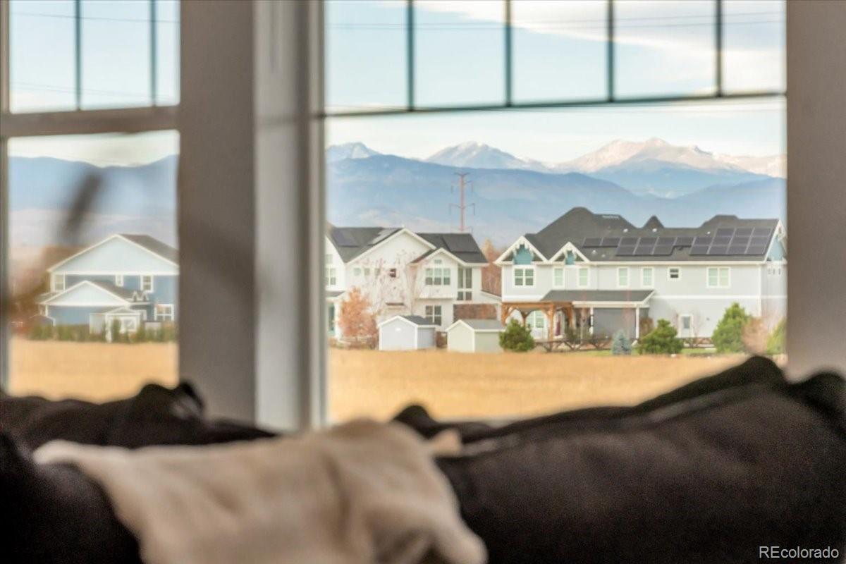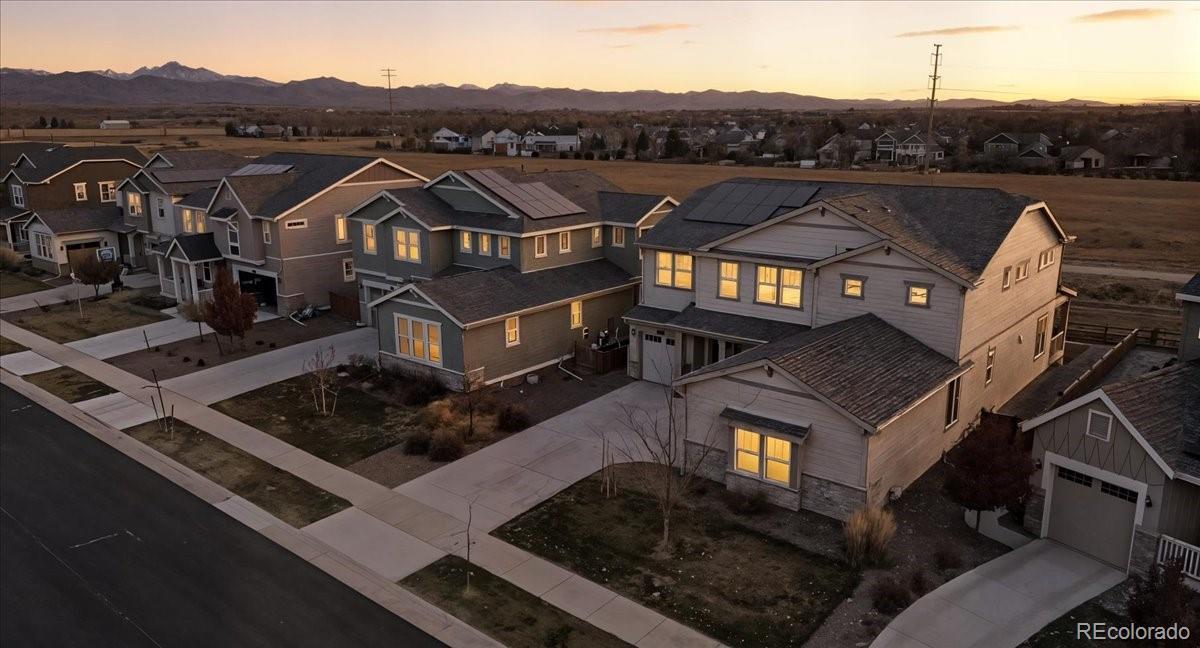 Situated on a premium open-space lot in Boulder County’s coveted Wildrose community with stunning mountain views, this like-new home features 5 bedrooms, 6 bathrooms, over 5,300 finished square feet, two office spaces, and a cinematic-quality theater room — the rare home that checks boxes you didn’t even know you had. The main level is designed for both connection and comfort. A gourmet kitchen with quartz counters, an oversized island, double ovens, and upgraded appliances opens into a dramatic two-story great room where natural light and elevated views take center stage. A private main-level guest suite and separate home office offer flexibility for multi-generational living, long-term guests, or work-from-home needs. Upstairs, the private primary retreat offers serene views and a spa-inspired bath with an oversized walk-in shower, dual-sink quartz vanity, and expansive closet. A second office/flex space provides valuable versatility and could easily convert to a junior suite. Two additional bedrooms — each with a walk-in closet and private sink vanity — share a Jack-and-Jill bath. The upper-level laundry room connects directly to the primary closet for everyday convenience. The finished basement adds even more lifestyle space, including a premium theater room, wet bar with beverage fridge, fitness studio, guest suite with adjoining bath, and generous storage. The garage includes epoxy flooring, overhead storage, and pre-wiring for EV charging. Outdoor living features a large covered deck overlooking open space, low-maintenance turf, and a peaceful backdrop perfect for coffee, outdoor dining, and mountain sunset views. Trails connect throughout the neighborhood, schools are walkable, and Old Town Erie is just one mile away with easy access to Boulder, Louisville, Lafayette, and Longmont. A premium lot, a connected community, and a theater room that makes movie nights unforgettable — this home delivers the lifestyle so many want, but few ever find.