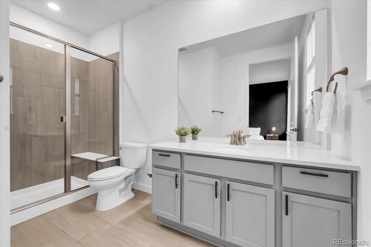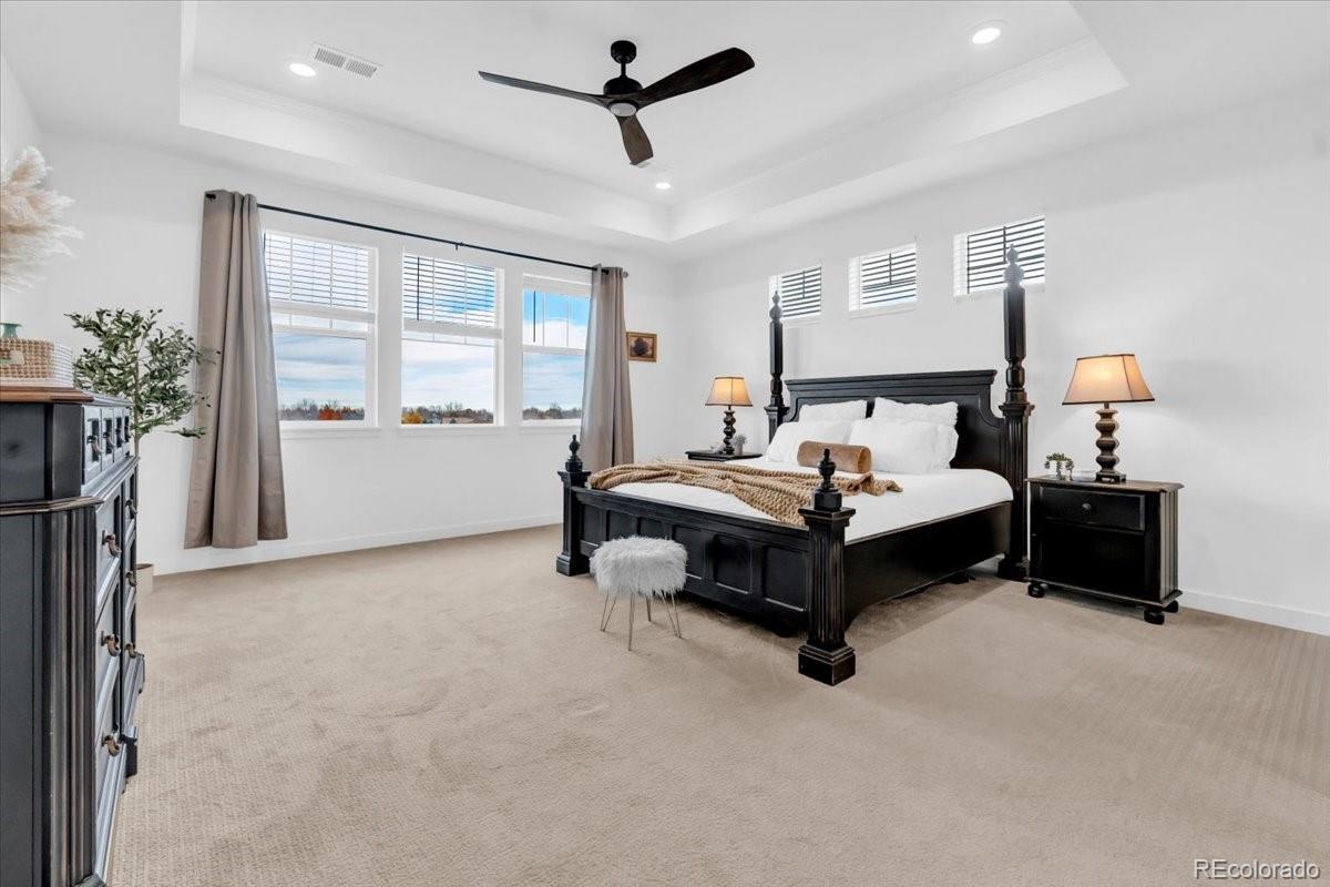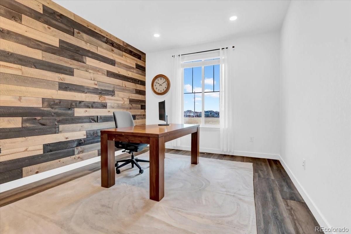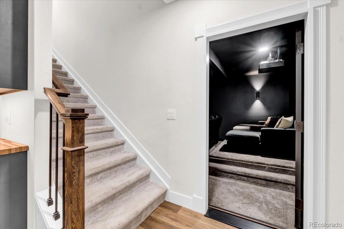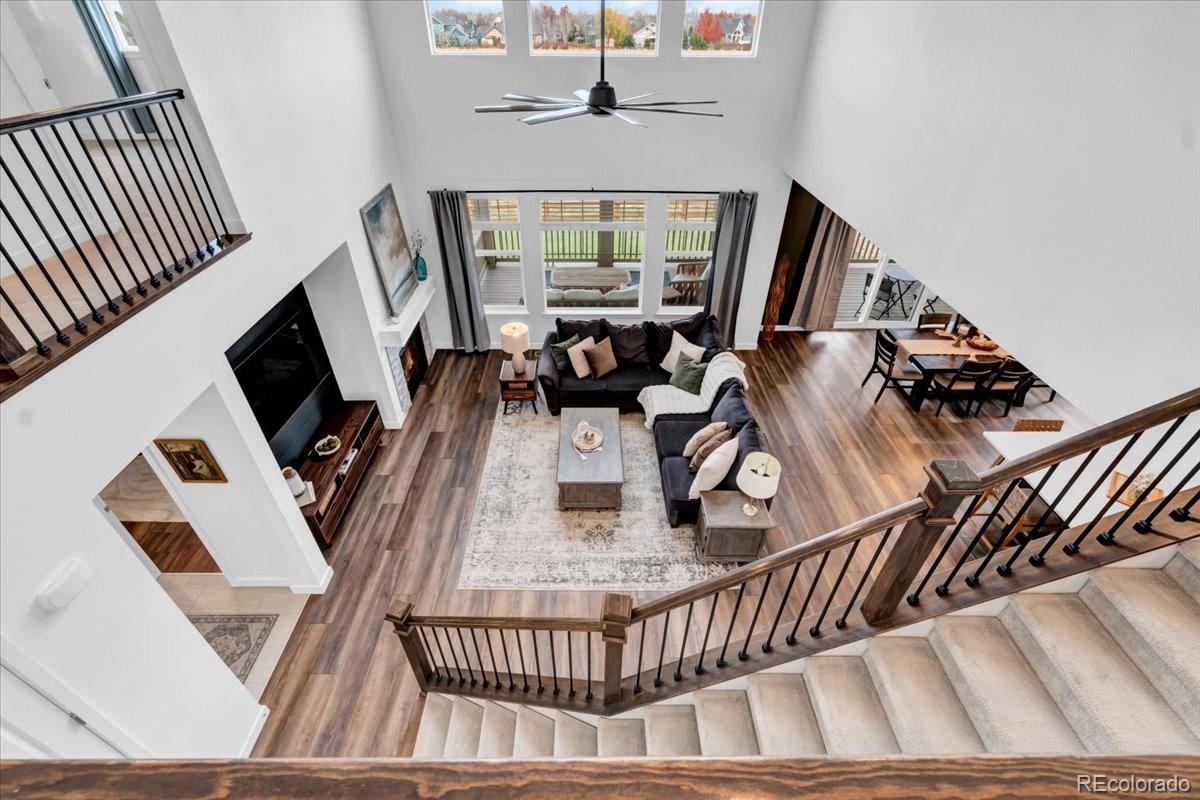 Situated on a premium open-space lot in Boulder County’s coveted Wildrose community with stunning mountain views, this like-new home features 5 bedrooms, 6 bathrooms, over 5,300 finished square feet, two office spaces, and a cinematic-quality theater room — the rare home that checks boxes you didn’t even know you had. The main level is designed for both connection and comfort. A gourmet kitchen with quartz counters, an oversized island, double ovens, and upgraded appliances opens into a dramatic two-story great room where natural light and elevated views take center stage. A private main-level guest suite and separate home office offer flexibility for multi-generational living, long-term guests, or work-from-home needs. Upstairs, the private primary retreat offers serene views and a spa-inspired bath with an oversized walk-in shower, dual-sink quartz vanity, and expansive closet. A second office/flex space provides valuable versatility and could easily convert to a junior suite. Two additional bedrooms — each with a walk-in closet and private sink vanity — share a Jack-and-Jill bath. The upper-level laundry room connects directly to the primary closet for everyday convenience. The finished basement adds even more lifestyle space, including a premium theater room, wet bar with beverage fridge, fitness studio, guest suite with adjoining bath, and generous storage. The garage includes epoxy flooring, overhead storage, and pre-wiring for EV charging. Outdoor living features a large covered deck overlooking open space, low-maintenance turf, and a peaceful backdrop perfect for coffee, outdoor dining, and mountain sunset views. Trails connect throughout the neighborhood, schools are walkable, and Old Town Erie is just one mile away with easy access to Boulder, Louisville, Lafayette, and Longmont. A premium lot, a connected community, and a theater room that makes movie nights unforgettable — this home delivers the lifestyle so many want, but few ever find.
