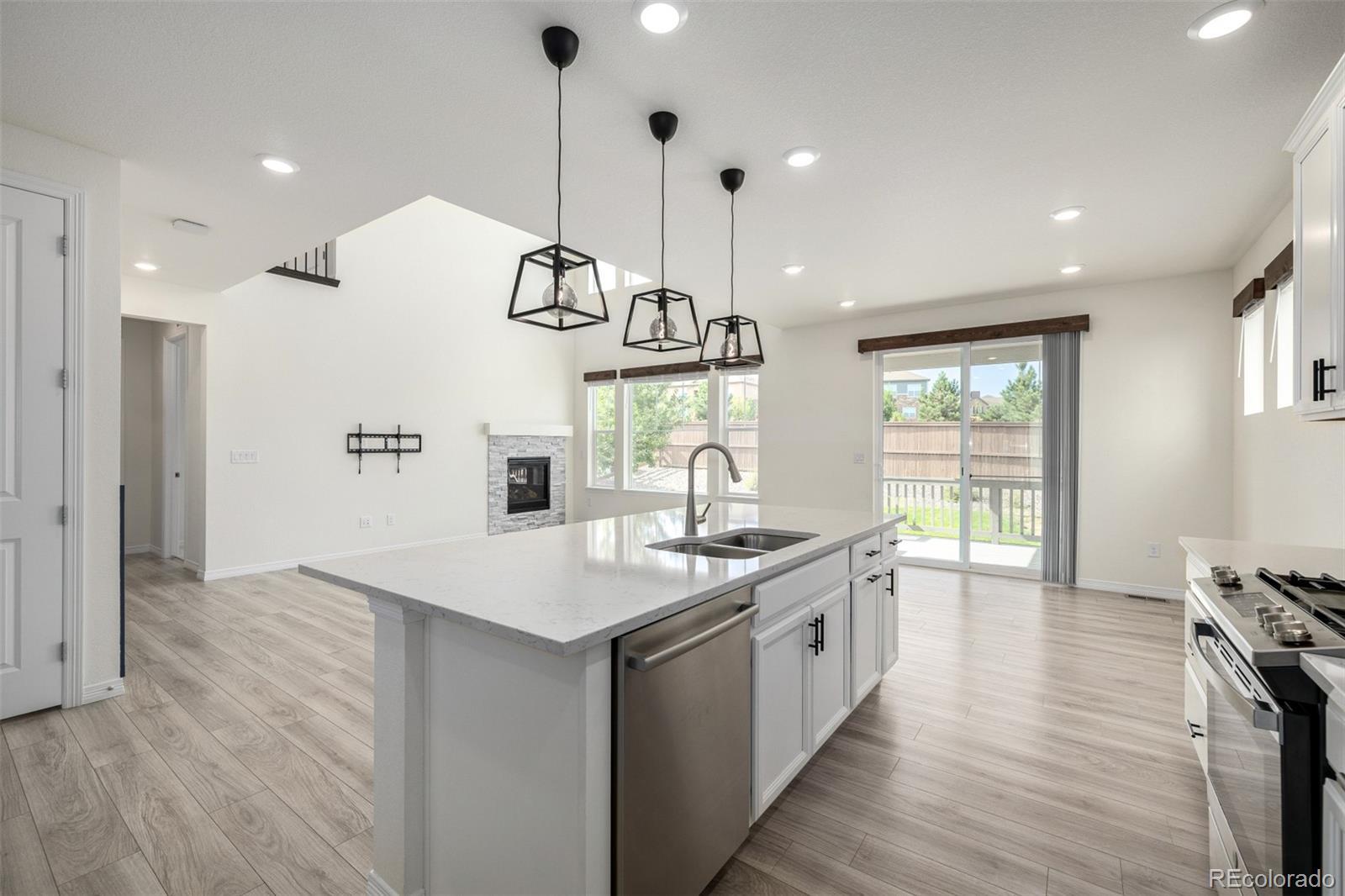 Fall in love with your like-new home in the nostalgic rolling hills of Whispering Pines! Ideally set in a cul-de-sac & backing to open space/green belt, this location is hard to beat! Outside, you’ll find thoughtful landscaping, tasteful stone accents & a covered front porch w/ plenty of room for outdoor furniture. Inside, a fresh neutral palette, high ceilings & an open floor plan welcomes any décor style. A versatile bonus room makes the perfect den, library, dining, or office. As you enter the heart of the home, you will notice the expansive chef's kitchen featuring stainless steel appliances, an oversized eat-in island, plenty of cabinetry, slab quartz counters & a sizable pantry! There is also a thoughtfully placed breakfast nook or informal dining area that overlooks the backyard. The open concept kitchen flows into the family room w/ a must-have cozy gas fireplace. Also on the main floor is a bedroom, perfect for guests, a 3/4 bathroom & a mudroom which adds plenty of convenience when entering through your expansive 2.5 car garage. Upstairs, retreat to the spacious primary suite w/ spa-like en suite bathroom featuring an oversized shower, dual sinks & walk-in closet. Two generous secondary bedrooms share a full bath & the laundry room is thoughtfully placed on the upper level for the expected modern convenience. A versatile loft offers opportunity for a private living area, playroom, office, or gaming space. The spacious full basement is unfinished & ready for your storage needs, or is the perfect blank slate to create your dream space & added equity! Perfect for entertaining inside and out, enjoy a covered patio and low-maintenance landscaping perfect for Colorado weather and dining al fresco. Whispering Pines is a vibrant community w/ fabulous amenities, including pool, clubhouse, trails & sought after Cherry Creek Schools. Easy access to all transportation, E470, I70, Buckley AFB, DTC, upscale Southlands dining & shopping, golf courses, reservoirs & more!