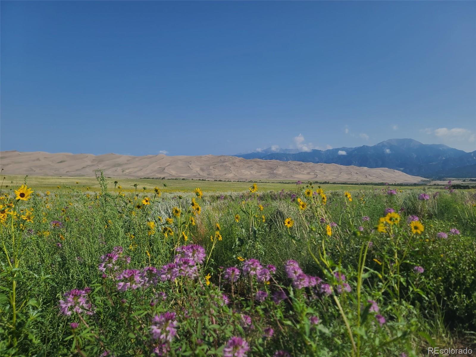 This is a quiet 35.26 acre parcel sits just down the road from the Wildlife Reserve. It has had some updating to it with a 2 bedroom septic/OWTS system installed, a 200 ft driveway with cattle gate installed. The current owner also has cleared 2 acres in preparation for building. An old agricultural well is on the premises and could potentially get a restoration permit from Water Resources. Access to this property was obtained through the Colorado State Land Board and is good for 3 more years and then needs to be reapplied for in July of 2028. The septic was permitted on this parcel, with power source being propane and solar should you build a home. No neighbors, mountain views and quiet and a short drive into the town of Alamosa. Near enough to drive to the Great Sand Dunes, Zapata Falls, or the Hot Springs Pool. No sound of cars on the highway or honking horns. A great place to settle. A cattle gate is at the developed entrance and an old shelled out trailer used for storage.