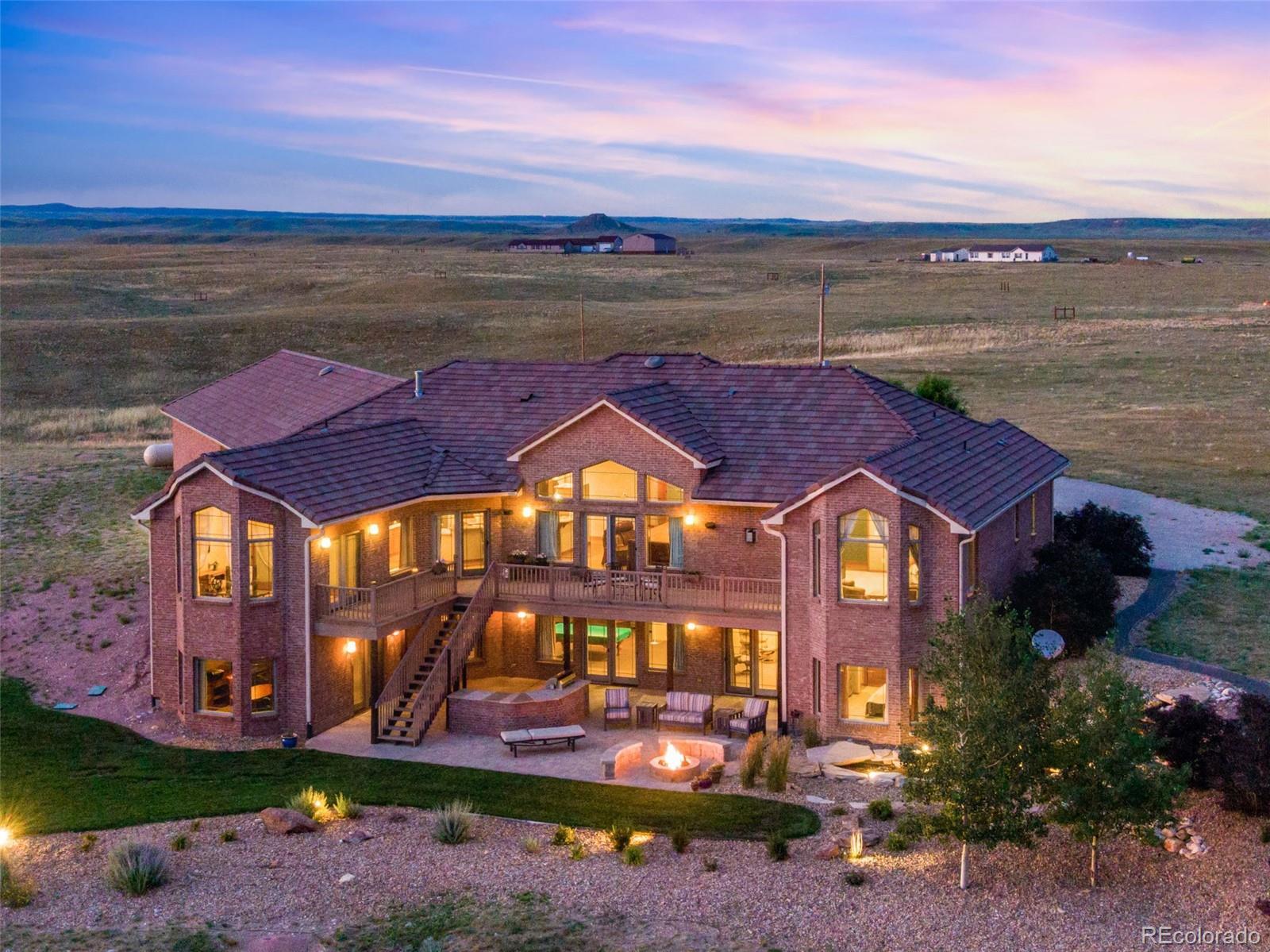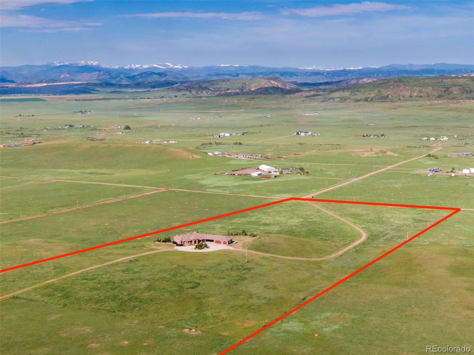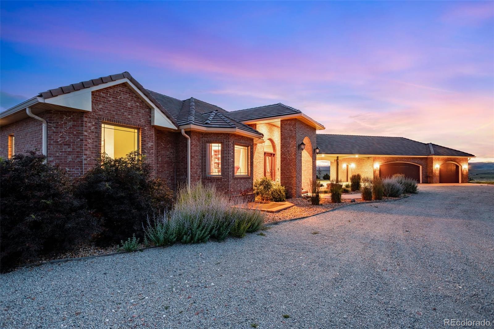 Check out the video of this panoramic hilltop Colorado dream property, an immaculate, custom-built all-brick ranch perfectly situated atop 39+ rolling acres, capturing breathtaking panoramic views of the Front Range and endless Colorado sky. This home is designed for both luxury and comfort, with grand living spaces, soaring vaulted ceilings, and elegant finishes throughout. Enjoy unobstructed mountain views, study sunsets from covered porch, and seamless indoor-outdoor living ideal for gatherings and everyday relaxation. The gourmet kitchen is a chef's delight, while the spacious primary suite offers a private retreat with mountain views. The finished walk-out basement and thoughtfully landscaped grounds provide even more room to spread out and enjoy every season. For those seeking even more, an adjacent 39+ acre parcel is also available, purchase both together for nearly 80 acres of unmatched privacy, recreation, and future potential. The additional land is offered separately only after the primary residence and acreage have sold, making this a truly exclusive chance to secure your own legacy estate.