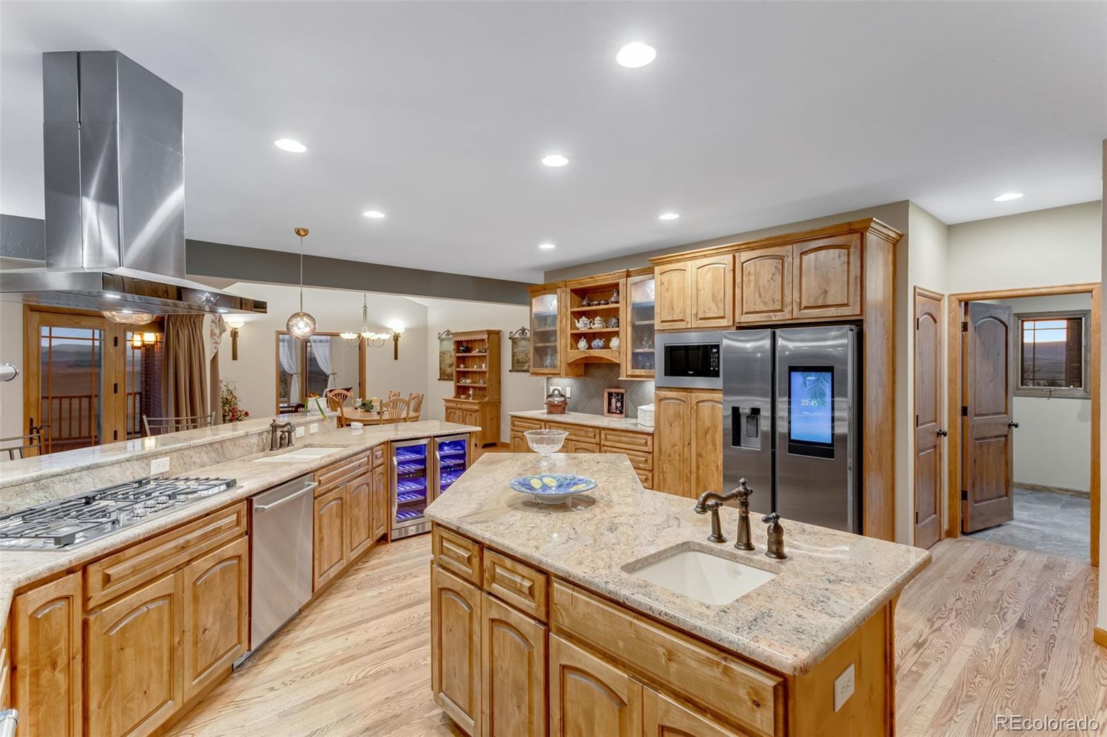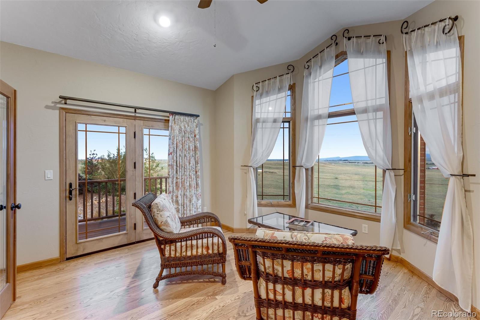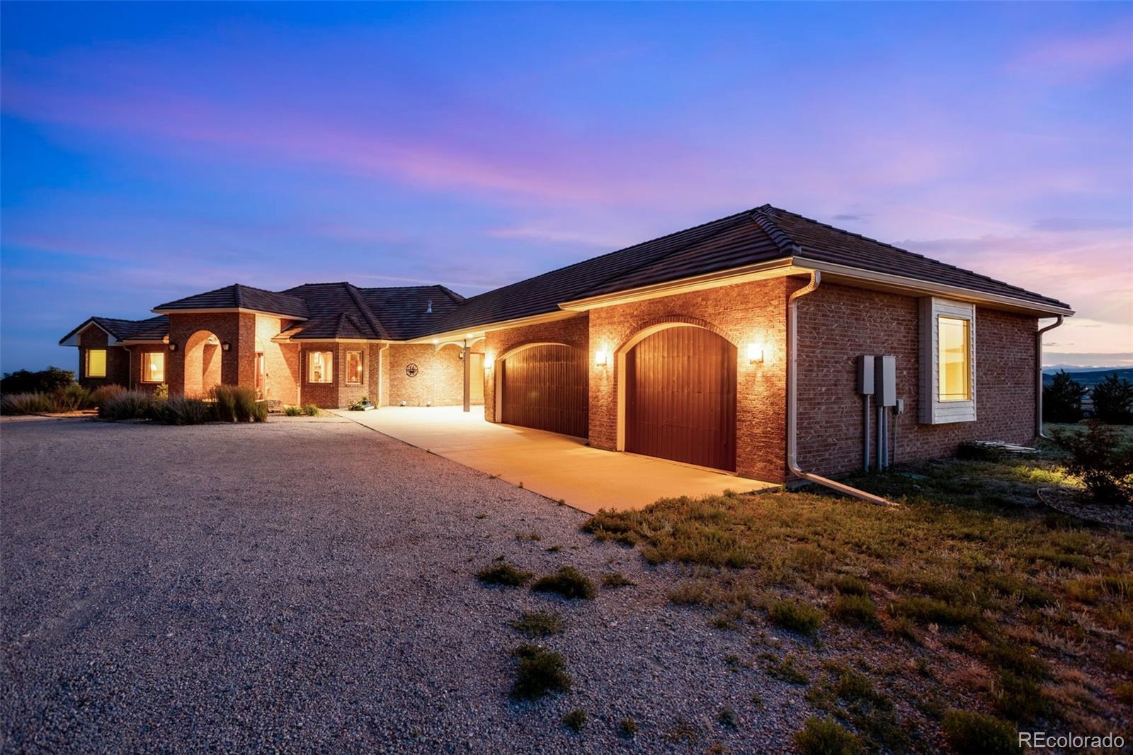 Check out the video of this panoramic hilltop Colorado dream property, an immaculate, custom-built all-brick ranch perfectly situated atop 39+ rolling acres, capturing breathtaking panoramic views of the Front Range and endless Colorado sky. This home is designed for both luxury and comfort, with grand living spaces, soaring vaulted ceilings, and elegant finishes throughout. Enjoy unobstructed mountain views, study sunsets from covered porch, and seamless indoor-outdoor living ideal for gatherings and everyday relaxation. The gourmet kitchen is a chef's delight, while the spacious primary suite offers a private retreat with mountain views. The finished walk-out basement and thoughtfully landscaped grounds provide even more room to spread out and enjoy every season. For those seeking even more, an adjacent 39+ acre parcel is also available, purchase both together for nearly 80 acres of unmatched privacy, recreation, and future potential. The additional land is offered separately only after the primary residence and acreage have sold, making this a truly exclusive chance to secure your own legacy estate.