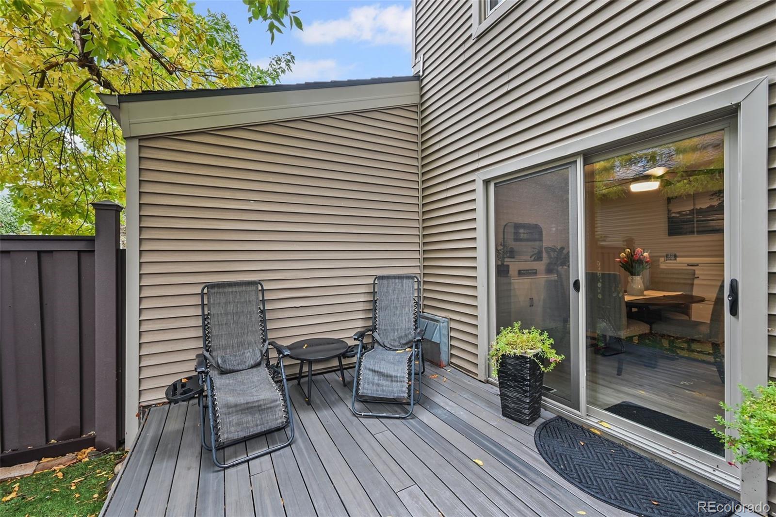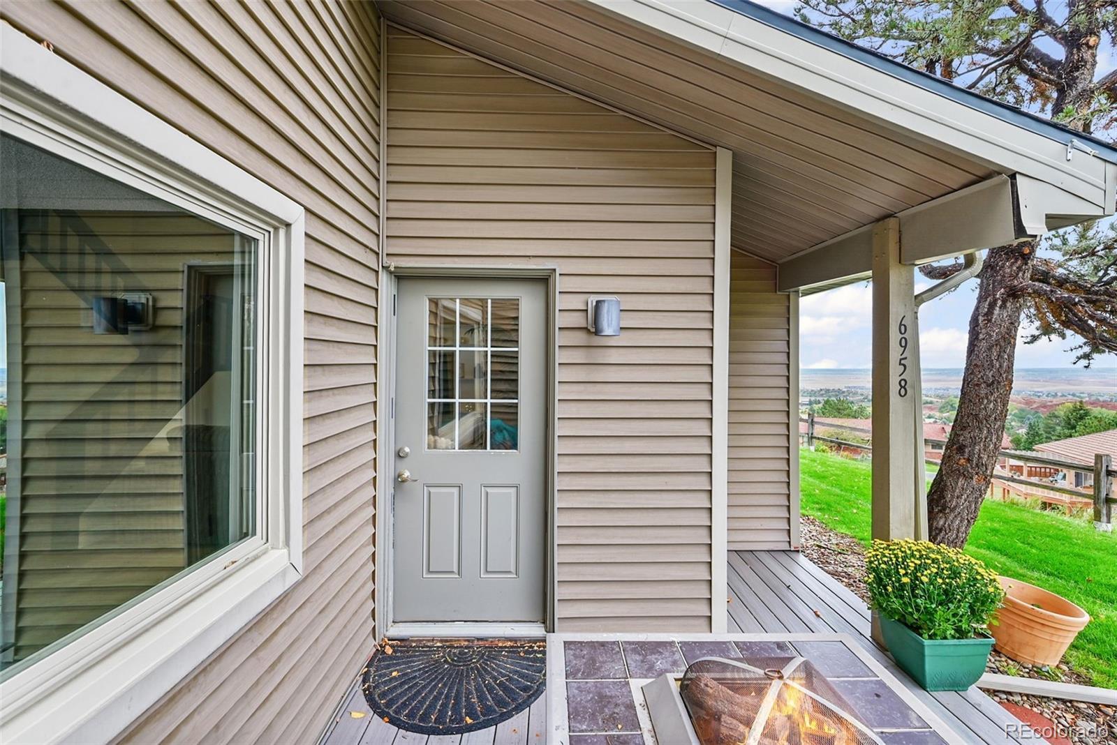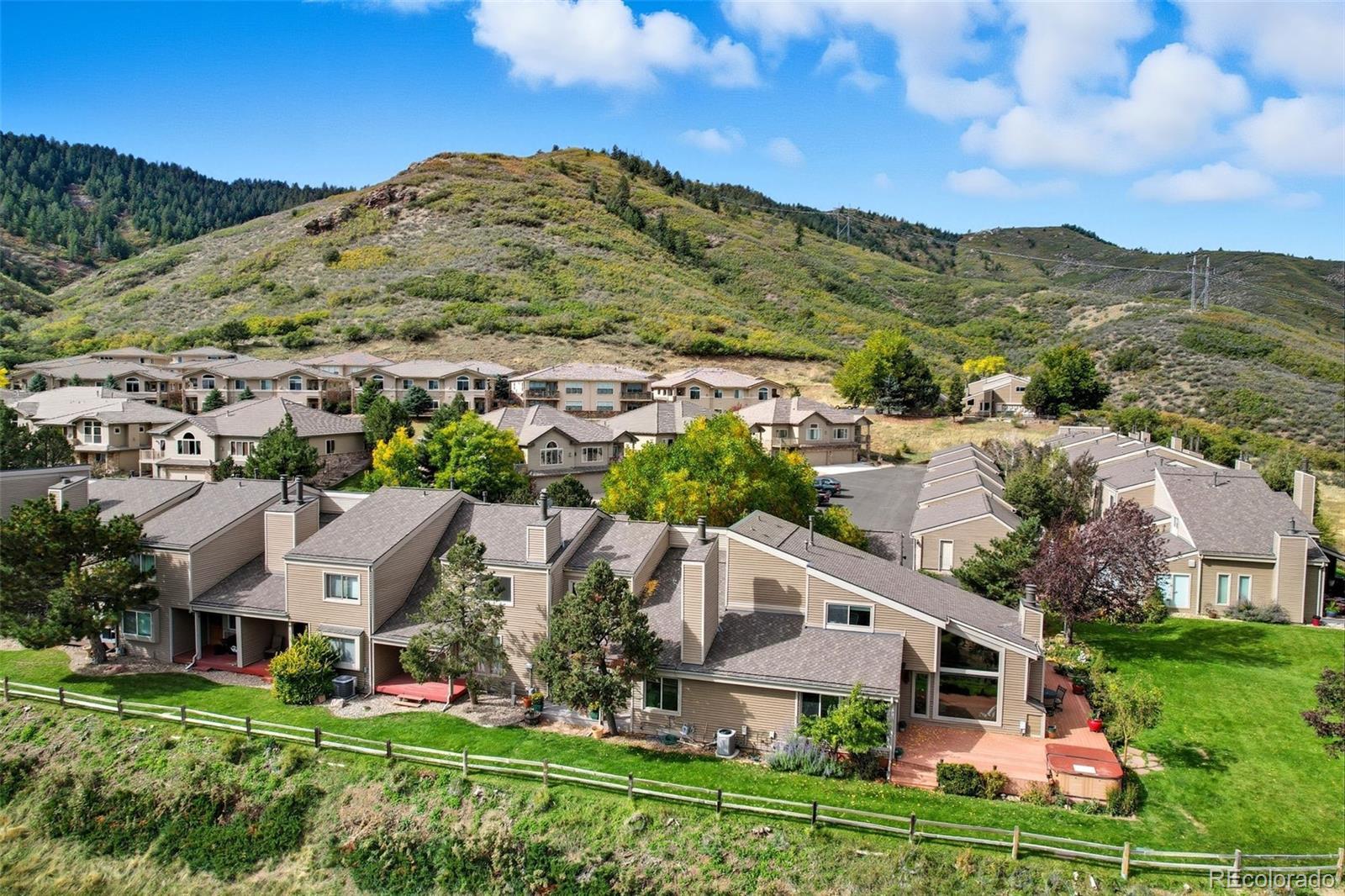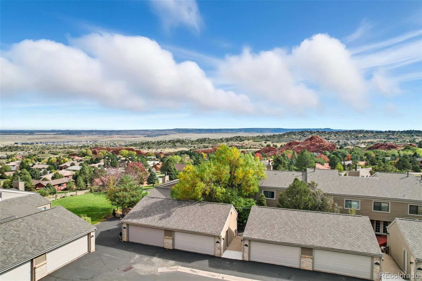 Experience serene living in this beautifully updated condo perfectly situated next to Roxborough Park. Every detail has been refreshed as of November 2024 including a new kitchen, flooring, deck, and fresh paint. Designed for nature lovers, this quiet retreat offers stunning views and a peaceful setting. The vaulted, beamed ceilings in the living room create an airy, open atmosphere centered around a cozy wood-burning fireplace with scenic window views. A versatile main-level office featuring a wet bar can also serve as a formal dining room. The sleek, modern kitchen boasts quartz countertops, abundant cabinetry, a stylish tiled backsplash, and cohesive light fixtures, flowing seamlessly into the dining area and out to a private deck shaded by a mature tree. The deck is perfect for morning coffee or al fresco dining and provides direct access to a detached two-car garage. Upstairs, find two spacious bedrooms including one with a walk-in closet and direct access to a full bathroom. The finished basement adds flexibility, currently serving as a third bedroom or additional living space. This condo combines thoughtful updates, functional spaces, and an unbeatable natural setting making it a perfect retreat for those seeking comfort, style, and tranquility.
